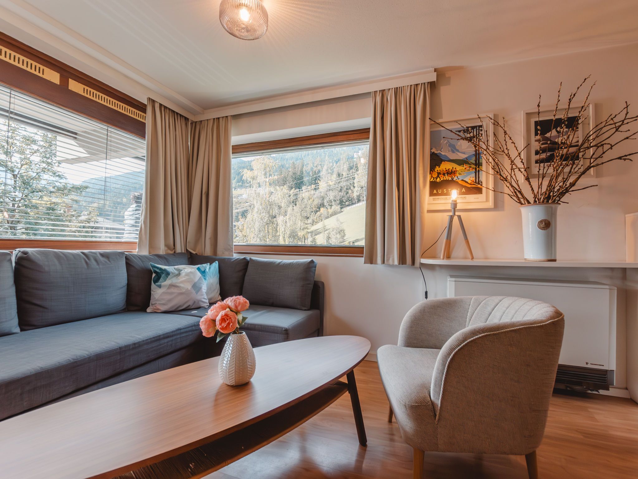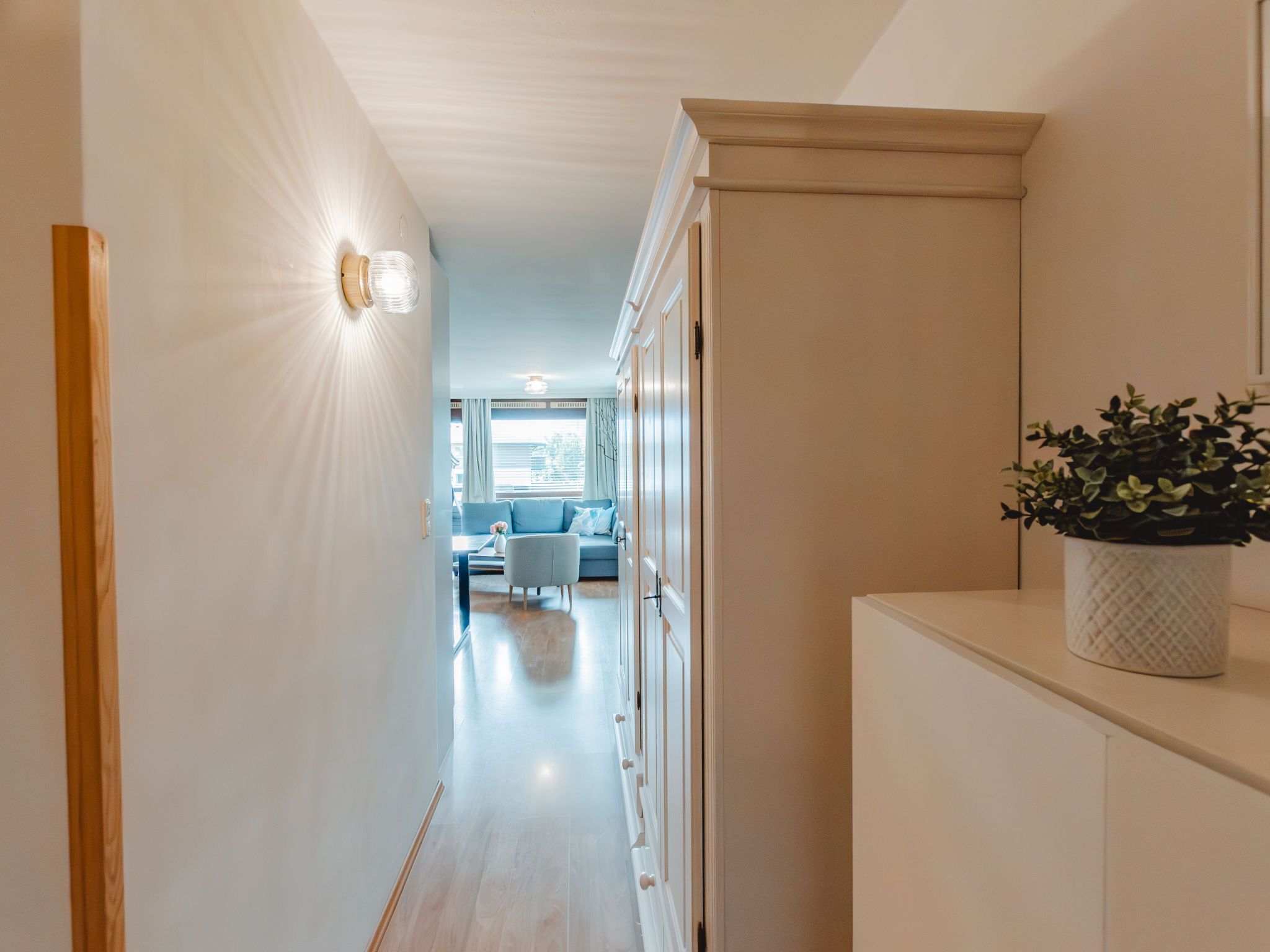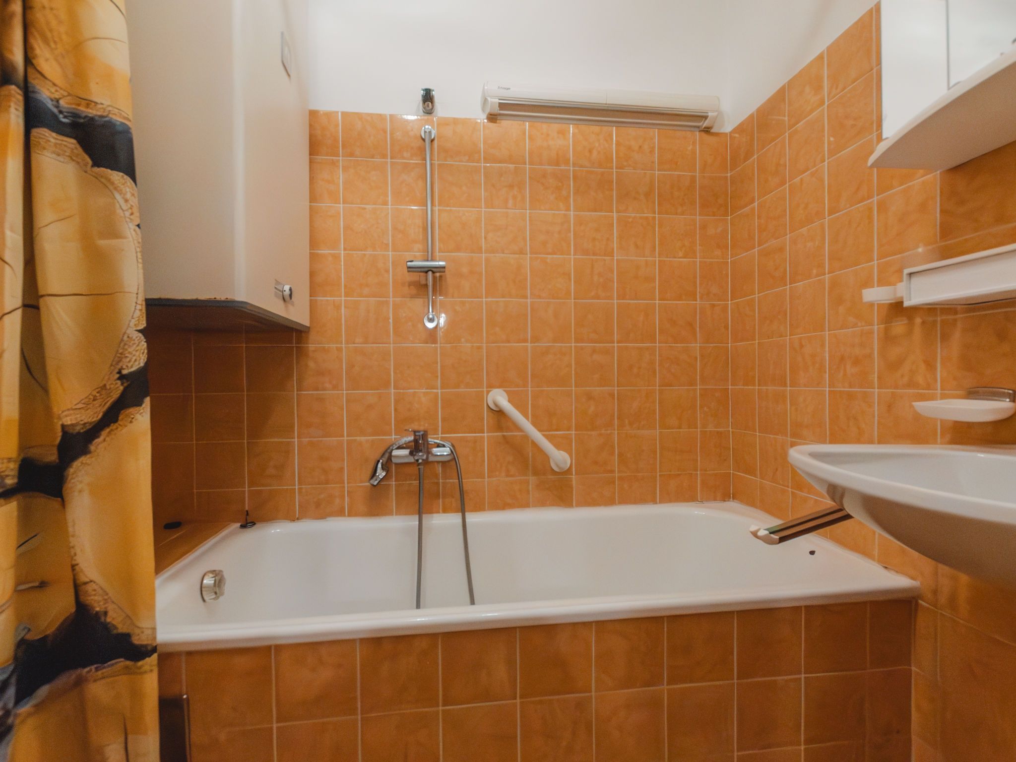 2-Zimmer-Wohnung 45 m2 im 2. Stock. Einfach und gemütlich eingerichtet: Eingang. 1 Zimmer mit 2 Betten. Wohn-/Schlafzimmer mit 1 Doppeldiwanbett, Esstisch und Kabel-TV (Flachbildschirm), Warmluftheizung. Ausgang zum Balkon. Kleine, offene Küche (Geschirrspüler, 2 Glaskeramikplatten, Toaster, Wasserkocher, Mikrowelle). Bad/WC. Balkon. Balkonmöbel. Schöne, auf die Berge und die Landschaft. Zur Verfügung: Internet (WLAN, gratis). Bitte beachten: Nichtraucher-Unterkunft. 1 Haustier/Hund erlaubt. 50402-000739-2021
