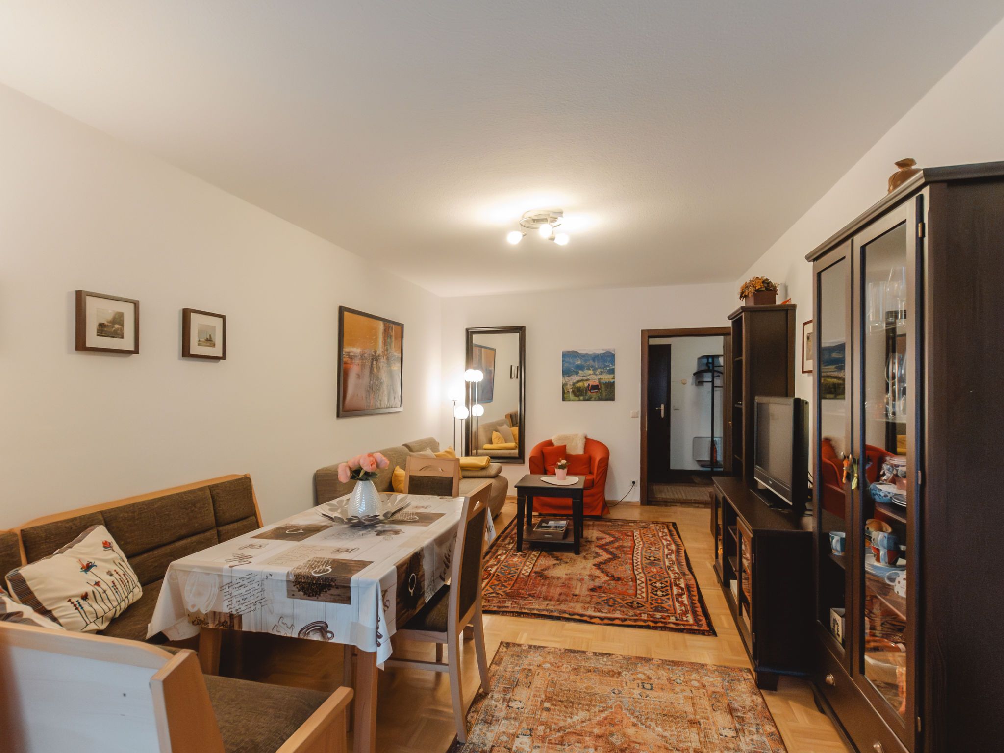 FeWo Sun & Snow, 3-Zimmer-Wohnung 72 m2, im erhöhten Erdgeschoss. Objekt geeignet für 4 Erwachsene + 2 Kinder. Sehr komfortabel und gemütlich eingerichtet: Eingang. Wohn-/Schlafzimmer mit 1 Doppeldiwanbett (1 x 160 cm, Länge 200 cm), Essecke und Sat-TV (Flachbildschirm), DVD. Ausgang zum Balkon. 1 Doppelzimmer mit 1 Doppelbett (180 cm, Länge 200 cm), TV (Flachbildschirm), DVD. Ausgang zum Balkon. 1 kleines Kinderzimmer mit 1 x 2 Etagenbetten (90 cm, Länge 200 cm). Kleine Küche (Backofen, Geschirrspüler, 4 Glaskeramikplatten, Toaster, Wasserkocher, Mikrowelle, elektrische Kaffeemaschine). Bad/WC. Parkettboden. Balkon 10 m2. Balkonmöbel. Schöne Sicht auf die Berge. Zur Verfügung: Internet (Wireless LAN, gratis). Parkplatz Nr. H16 TOP 2 beim Haus. Bitte beachten: geeignet für Familien. Nichtraucher-Unterkunft. Rauchmelder. 50402-000696-2020