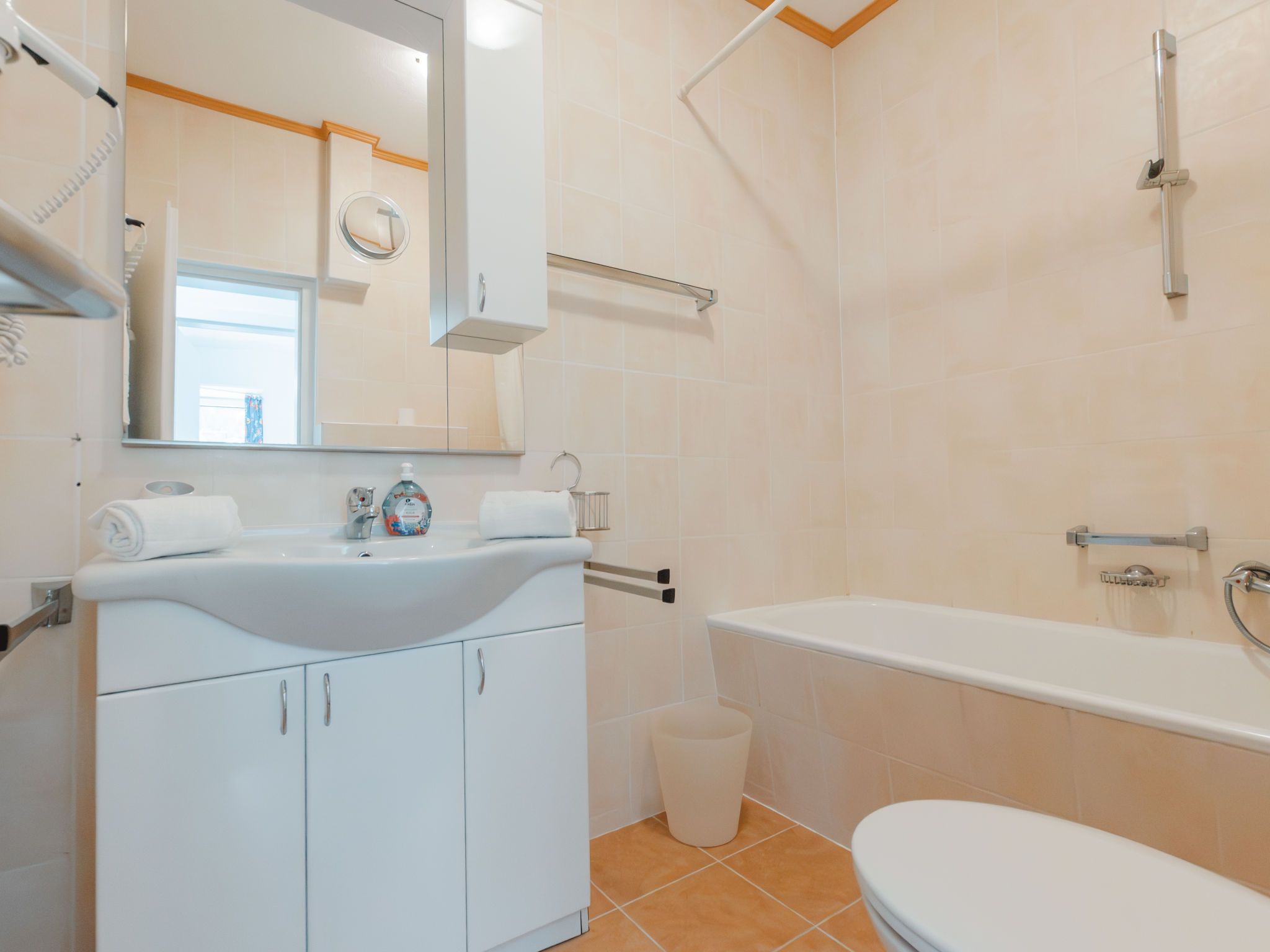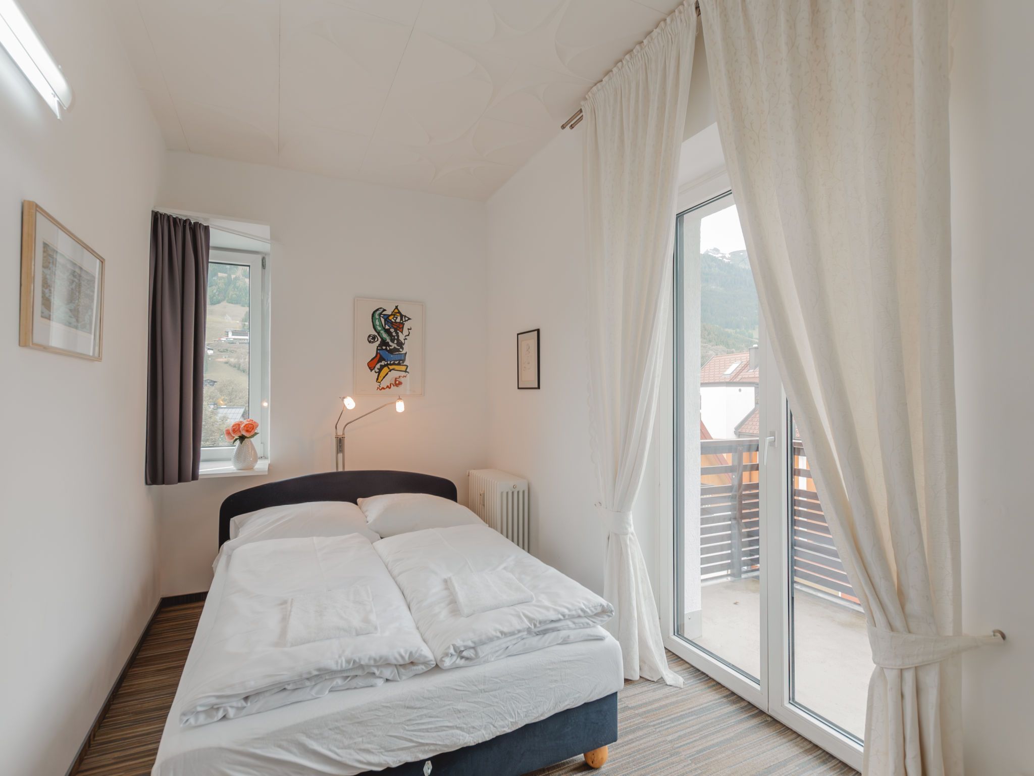 Kern, 3-Zimmer-Wohnung 65 m2 im 2. Stock. Objekt geeignet für 4 Erwachsene. Hell, modern und gemütlich eingerichtet: Wohn-/Esszimmer mit Esstisch und Sat-TV (Flachbildschirm). Ausgang zum Balkon. 1 Doppelzimmer. Ausgang zum Balkon. 1 Zimmer mit 2 Betten. Kochnische im Eingang (2 Kochplatten, Geschirrspüler, Toaster, Wasserkocher, Mikrowelle, Tiefkühler, elektrische Kaffeemaschine). Bad/WC, Dusche/WC. 2 kleine Balkone 2 m2. Sicht auf die Berge und die Ortschaft. Zur Verfügung: Internet (Wireless LAN, gratis). Parkplatz beim Haus. Bitte beachten: geeignet für Familien. Nichtraucher-Unterkunft. 50402-000694-2020