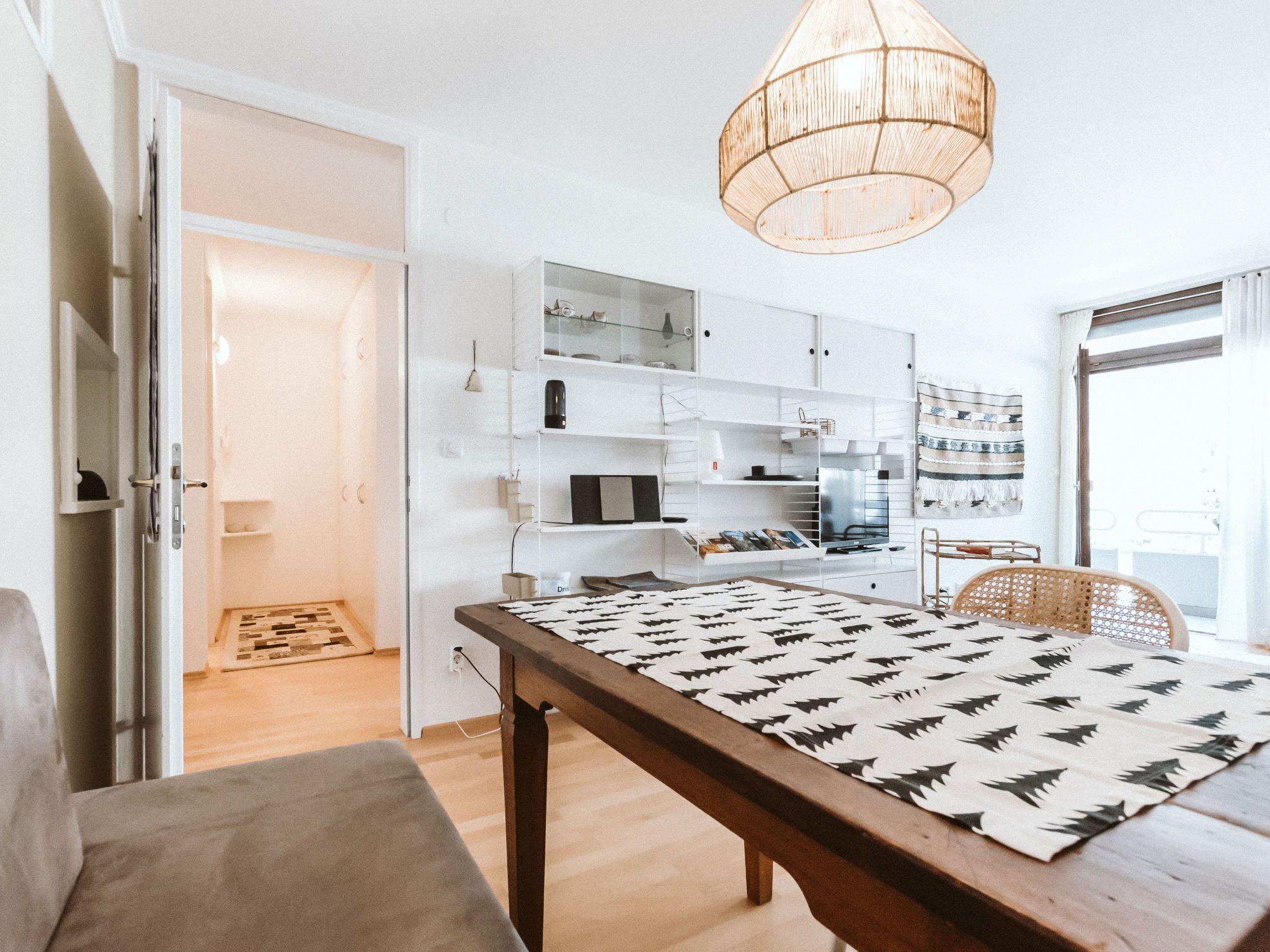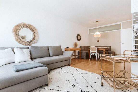 Tauernspirit, 2-Zimmer-Wohnung 52 m2 im 2. Stock. Objekt geeignet für 3 Erwachsene. Hell, sehr modern und gemütlich eingerichtet: Eingang. Wohn-/Esszimmer mit Panoramafenster mit 1 Diwanbett, Esstisch und Kabel-TV (Flachbildschirm). Ausgang zum Balkon. 1 Doppelzimmer mit Panoramafenster mit 1 Doppelbett. Ausgang zum Balkon. Grosse Küche (Backofen, Geschirrspüler, 4 Glaskeramikplatten, Toaster, Wasserkocher, elektrische Kaffeemaschine) mit Durchreiche. Bad/Dusche/WC. Parkettboden. Grosser Balkon. Balkonmöbel. Sehr schöne Sicht auf die Berge und das Tal. Zur Verfügung: Waschmaschine, Wäschetrockner. Internet (Wireless LAN, gratis). Bitte beachten: geeignet für Familien. Nichtraucher-Unterkunft. Rauchmelder. 50403-000472-2022