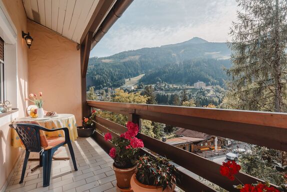 Schubert-Franz Top 12, 2-Zimmer-Wohnung 65 m2 im 3. Stock. Objekt geeignet für 4 Erwachsene. Geräumig, sehr gemütlich eingerichtet: Eingang mit sep. WC. 1 Doppelzimmer mit Bad/WC und Doppelwaschbecken. Ausgang zum Balkon. Wohn-/Esszimmer mit 1 Doppeldiwanbett, Essecke und Sat-TV (Flachbildschirm). Ausgang zum Balkon. Kleine Küche (Backofen, Geschirrspüler, 4 Glaskeramikplatten, Toaster, Wasserkocher) mit Essecke. Holzdielenboden. Das Wohnzimmer ist eine Bauernstube. Balkon 5 m2. Balkonmöbel. Schöne Sicht auf die Berge und die Ortschaft. Zur Verfügung: Internet (Wireless LAN, gratis). Bitte beachten: Wohnung auf Strassenseite. Nichtraucher-Unterkunft. 50403-000319-2020