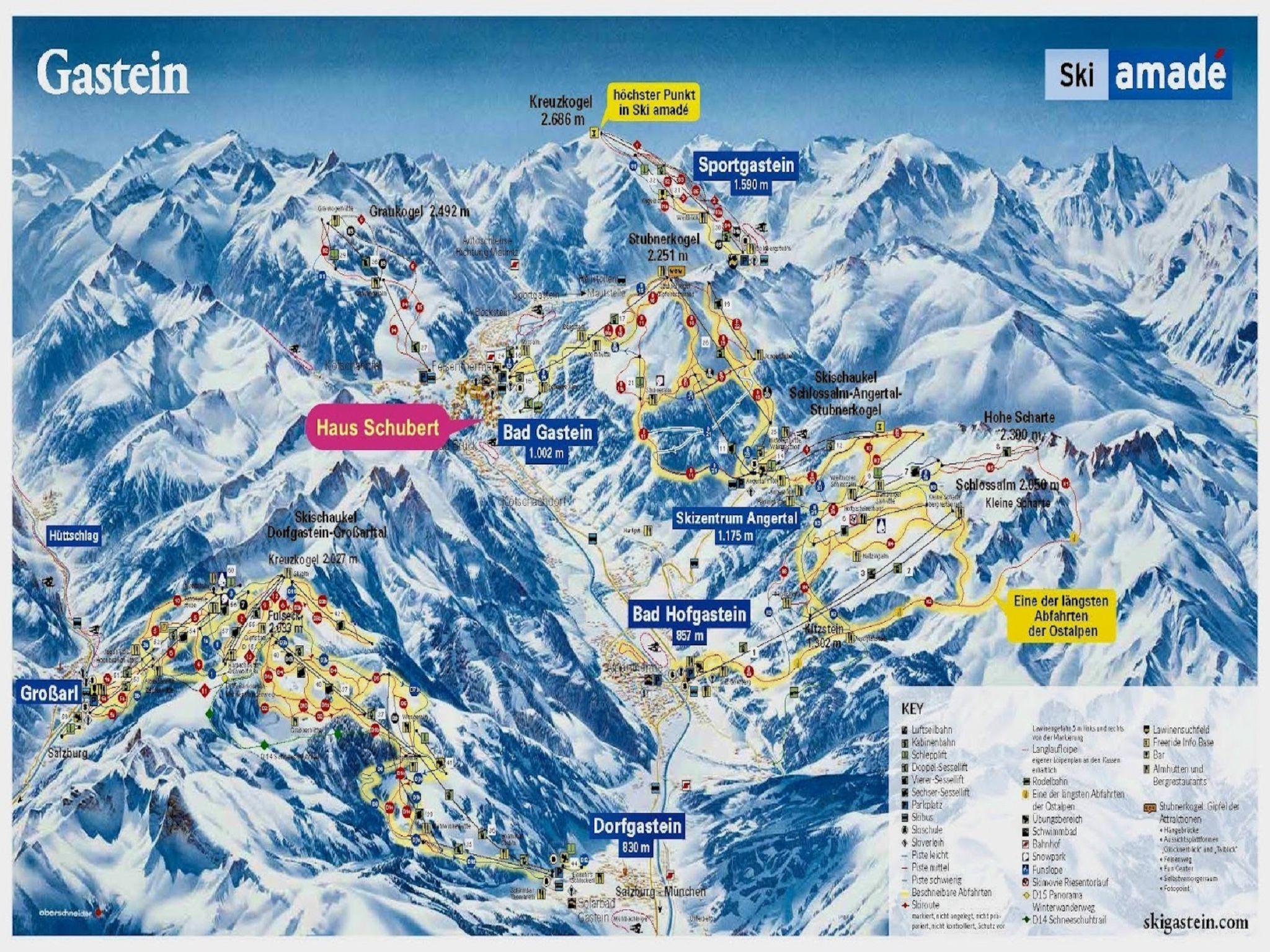 Grosses Appartementhaus Schubert, auf 4 Stockwerken. Im Ortszentrum von Bad Gastein, 3.5 km vom See, 900 m vom Skigebiet. Im Hause: Fahrstuhl, Skiraum, Zentralheizung, Skischuhtrockner. Öffentliches Parkhaus in 700 m. Lebensmittelgeschäft 100 m, Restaurant, Bäckerei, Café 500 m, Zentrum zu Fuss in 5 Minuten erreichbar, Bushaltestelle Mozartplatz 10 m, Thermalbad Felsentherme 1 km, Badesee 3.5 km. Golfplatz (18 Loch) 2 km, Gondelbahn 900 m, Skisportanlagen, Skipisten. Nahe gelegene Sehenswürdigkeiten: Gasteiner Heilstollen Radon 5 km. Bekannte Skigebiete sind gut erreichbar: Bad Gastein Stubnerkogel u.Graukogel, Sportgastein, Bad Hofgastein, Dorfgastein. Wandergebiete: Nationalpark Hohe Tauern. Bitte beachten: Fahrstuhl nur bis 3. Stock. Gratis Skibus. Weitere Unterkünfte sind buchbar.