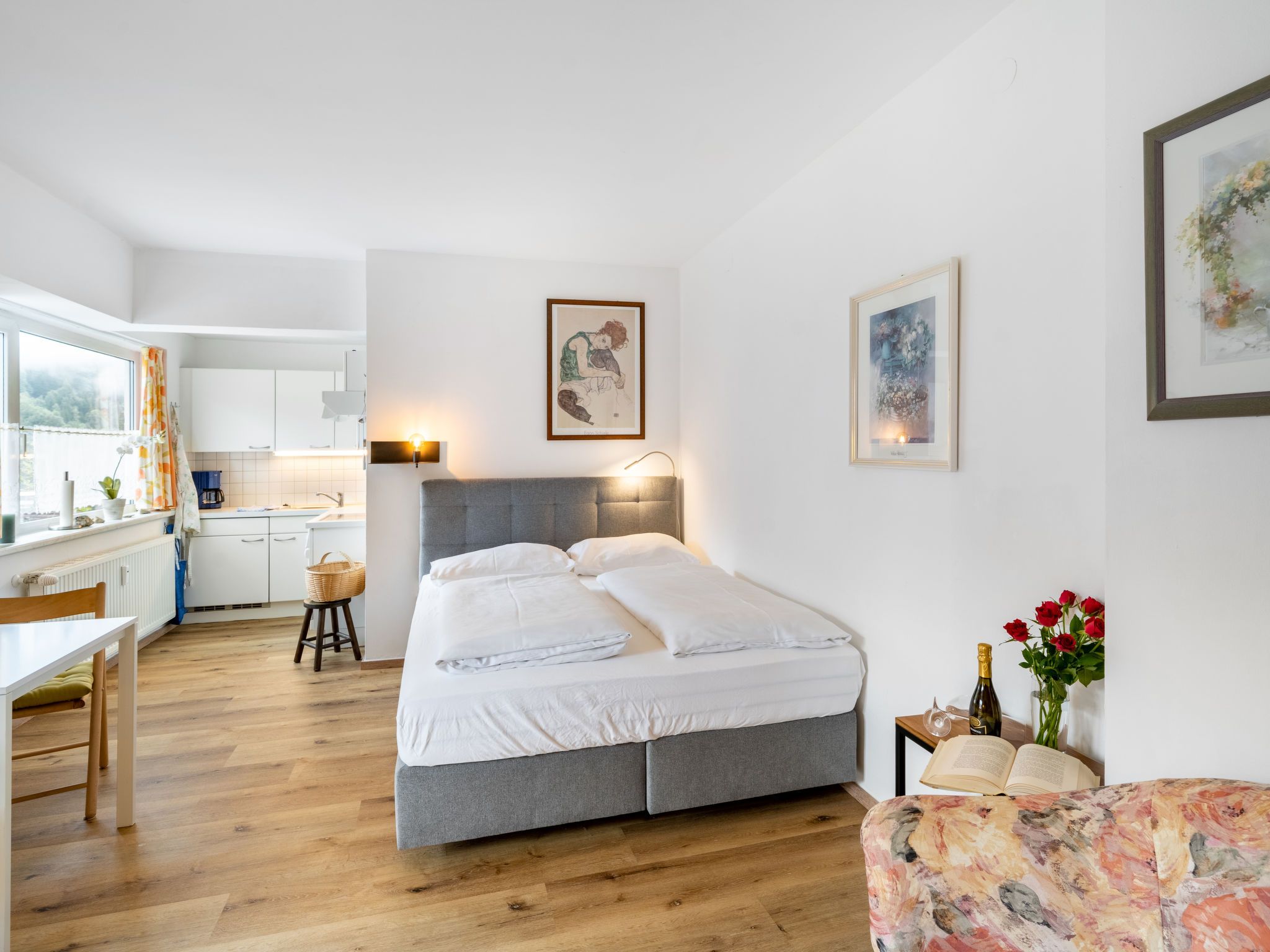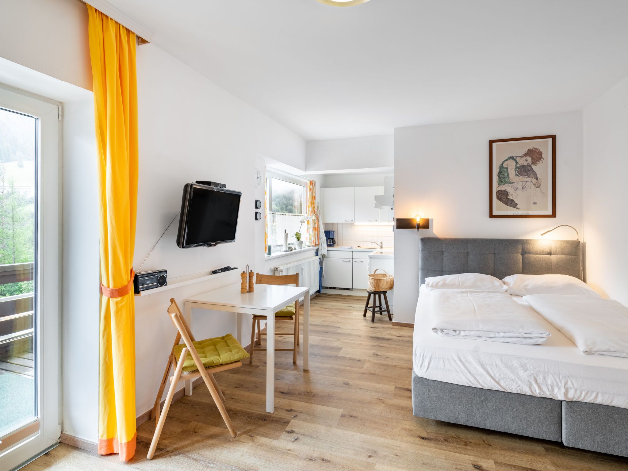 Claudia Top 7, 1-Zimmer-Wohnung 30 m2 im 1. Stock. Geräumig und hell, teilweise renoviert im Jahre 2021, sehr komfortabel eingerichtet: Eingang. Wohn-/Schlafzimmer mit 1 Doppeldiwanbett, Esstisch und Sat-TV (Flachbildschirm). Ausgang zum Balkon. Offene Küche (Backofen, 4 Glaskeramikplatten, Toaster, Wasserkocher, elektrische Kaffeemaschine). Dusche/WC. Parkettboden. Balkon 7 m2. Balkonmöbel, Liegestühle (1). Schöne Panoramasicht auf die Berge. Zur Verfügung: Internet (Wireless LAN, gratis). Bitte beachten: Nichtraucher-Unterkunft. Rauchmelder. 50403-000316-2020