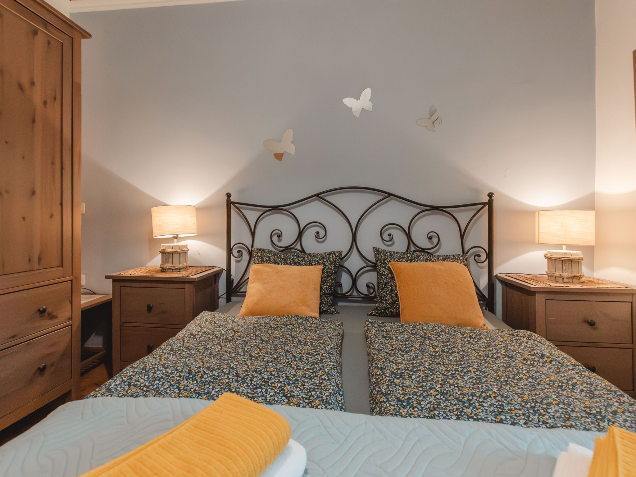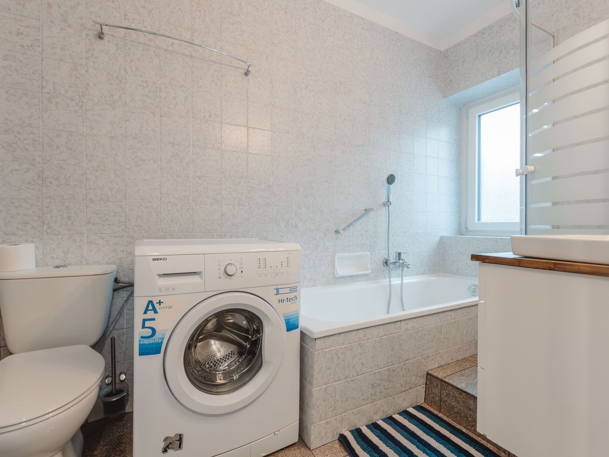 Terrace Garden Retreat, 3-Zimmer-Wohnung 67 m2, im Erdgeschoss. Geräumig und hell, vollständig renoviert im Jahre 2013, modern und gemütlich eingerichtet: Eingang. Wohn-/Esszimmer mit 1 Doppeldiwanbett (1 x 150 cm, Länge 200 cm), Esstisch und Sat-TV (Flachbildschirm). Ausgang zum Garten, zur Terrasse. 1 Doppelzimmer mit 1 franz. Bett (160 cm, Länge 200 cm). 1 Zimmer mit 2 Betten. Offene Küche (Backofen, Geschirrspüler, 4 Glaskeramikplatten, Toaster, Wasserkocher, Mikrowelle, elektrische Kaffeemaschine) mit kleiner Bar. Bad/Dusche/WC. Parkettboden. Terrasse 15 m2, Rasen 20 m2. Terrassenmöbel. Herrliche Sicht auf die Berge und die Landschaft. Zur Verfügung: Waschmaschine. Internet (WLAN, gratis). Bitte beachten: geeignet für Familien. Nichtraucher-Unterkunft, Nichtraucher-Haus. 1 Haustier/Hund erlaubt. Rauchmelder. Achtung: Kleinkinder und Babies gelten als volle Person und können nicht kostenfrei mitgenommen werden. 50403-000215-2020