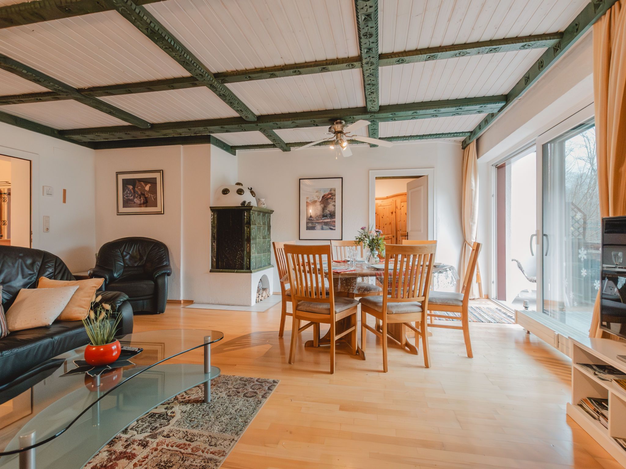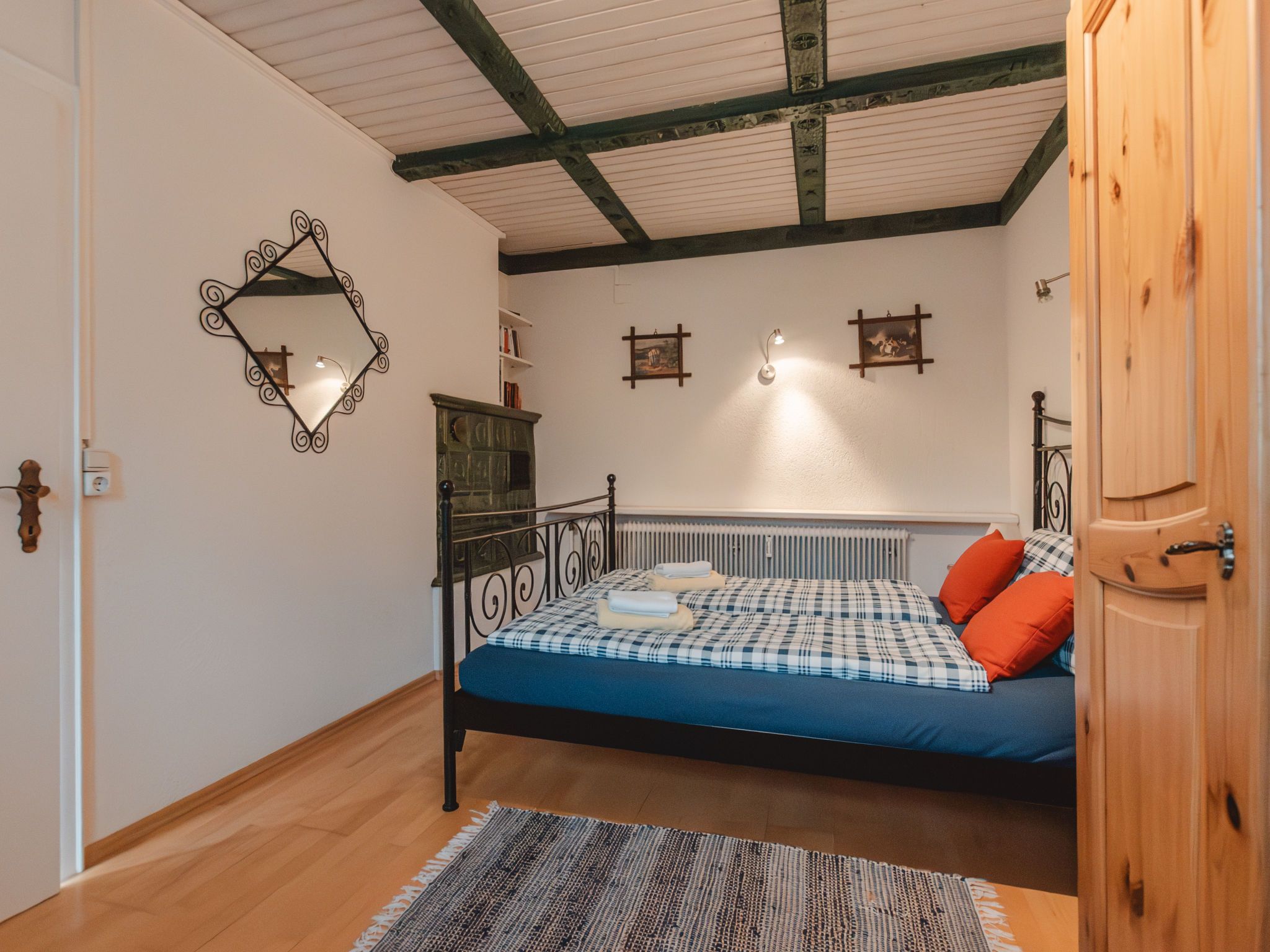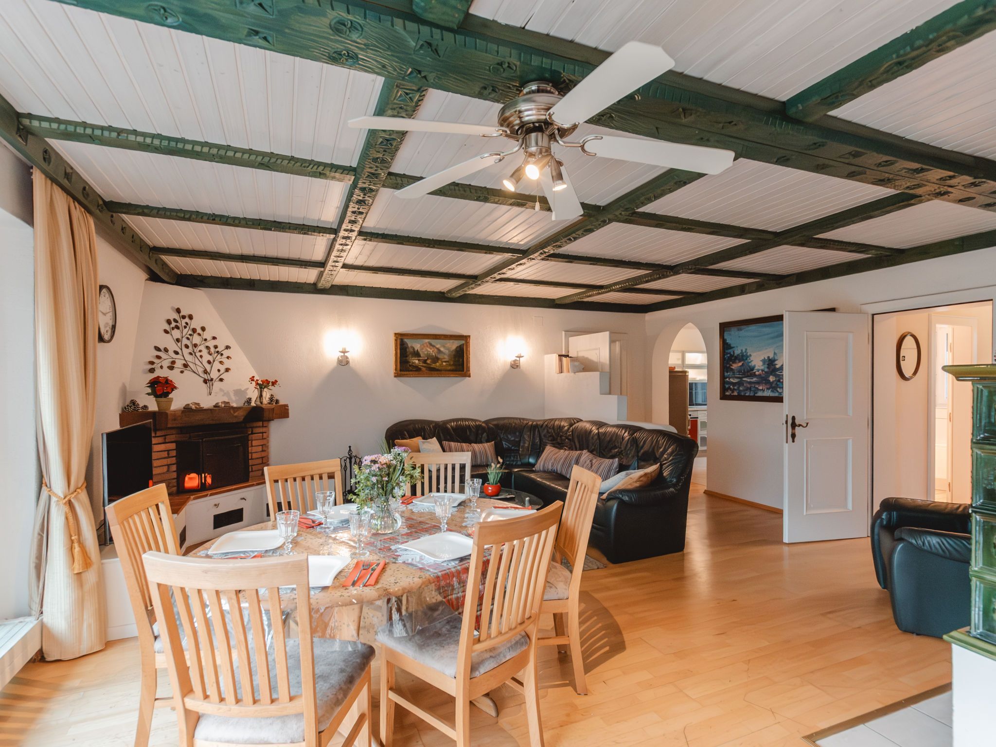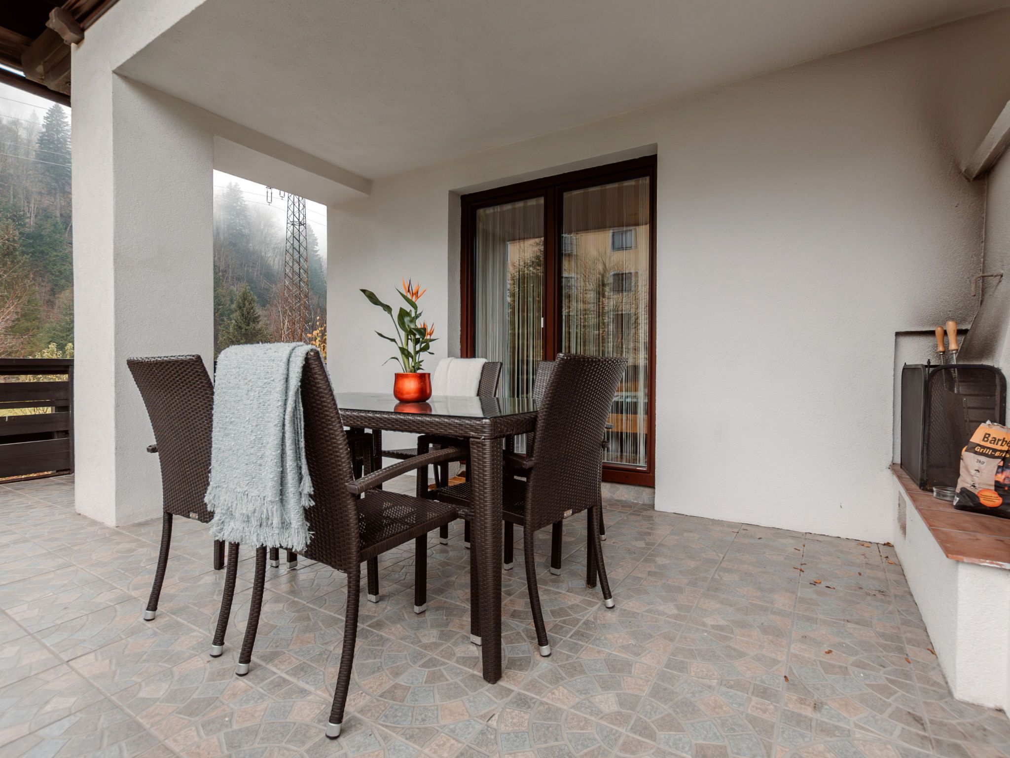 The Alpine Classic, 3-Zimmer-Wohnung 101 m2 im 1. Stock. Geräumig und hell, komfortabel und geschmackvoll eingerichtet: Eingang. Wohn-/Esszimmer mit 1 Doppeldiwanbett, offenem Kamin, Esstisch und Sat-TV (Flachbildschirm). Ausgang zur Terrasse. 1 Zimmer mit 1 Diwanbett, 1 Doppelbett und Bad/Dusche/WC. Ausgang zum Balkon. 1 Doppelzimmer mit 1 Doppelbett. Küche (Backofen, Geschirrspüler, 4 Glaskeramikplatten, Toaster, Wasserkocher, Mikrowelle, Tiefkühler, elektrische Kaffeemaschine) mit kleiner Bar. Bad/WC. Holzdielenboden. Grosse Terrasse 75 m2. Terrassenmöbel, Gartengrill, Liegestühle. Herrliche Sicht auf die Berge, das Tal und den Garten. Zur Verfügung: Waschmaschine, Wäschetrockner. Internet (Wireless LAN, gratis). Bitte beachten: geeignet für Familien. Nichtraucher-Unterkunft. Rauchmelder. Achtung: Kleinkinder und Babies gelten als volle Person und können nicht kostenfrei mitgenommen werden. 50403-000215-2020
