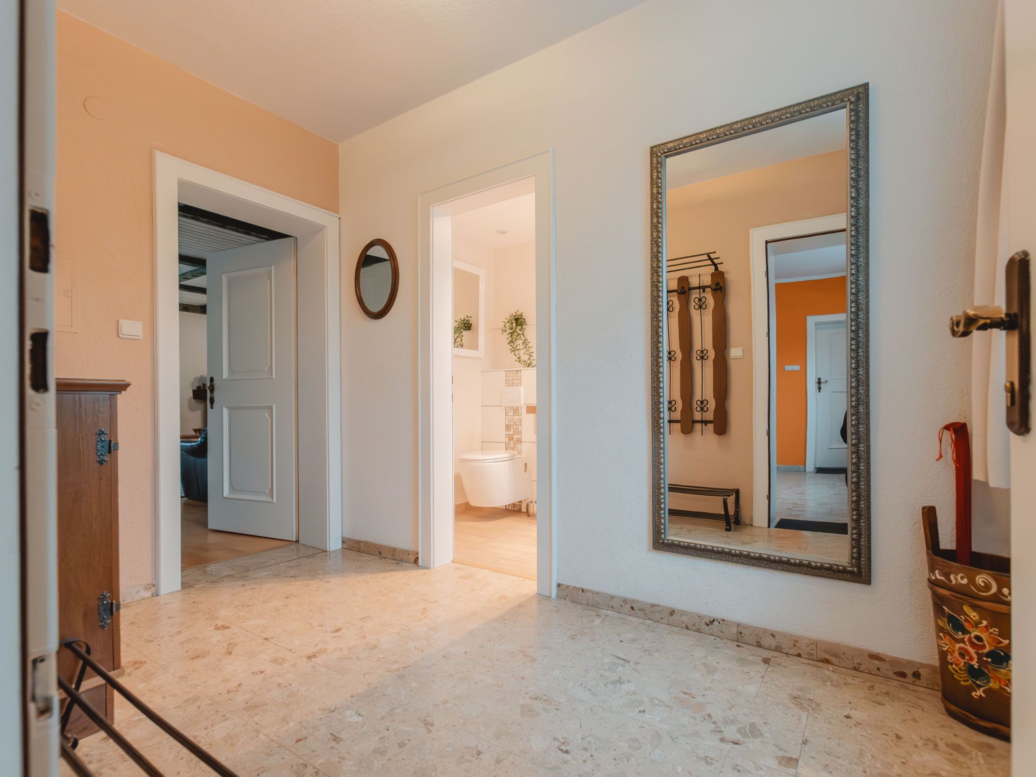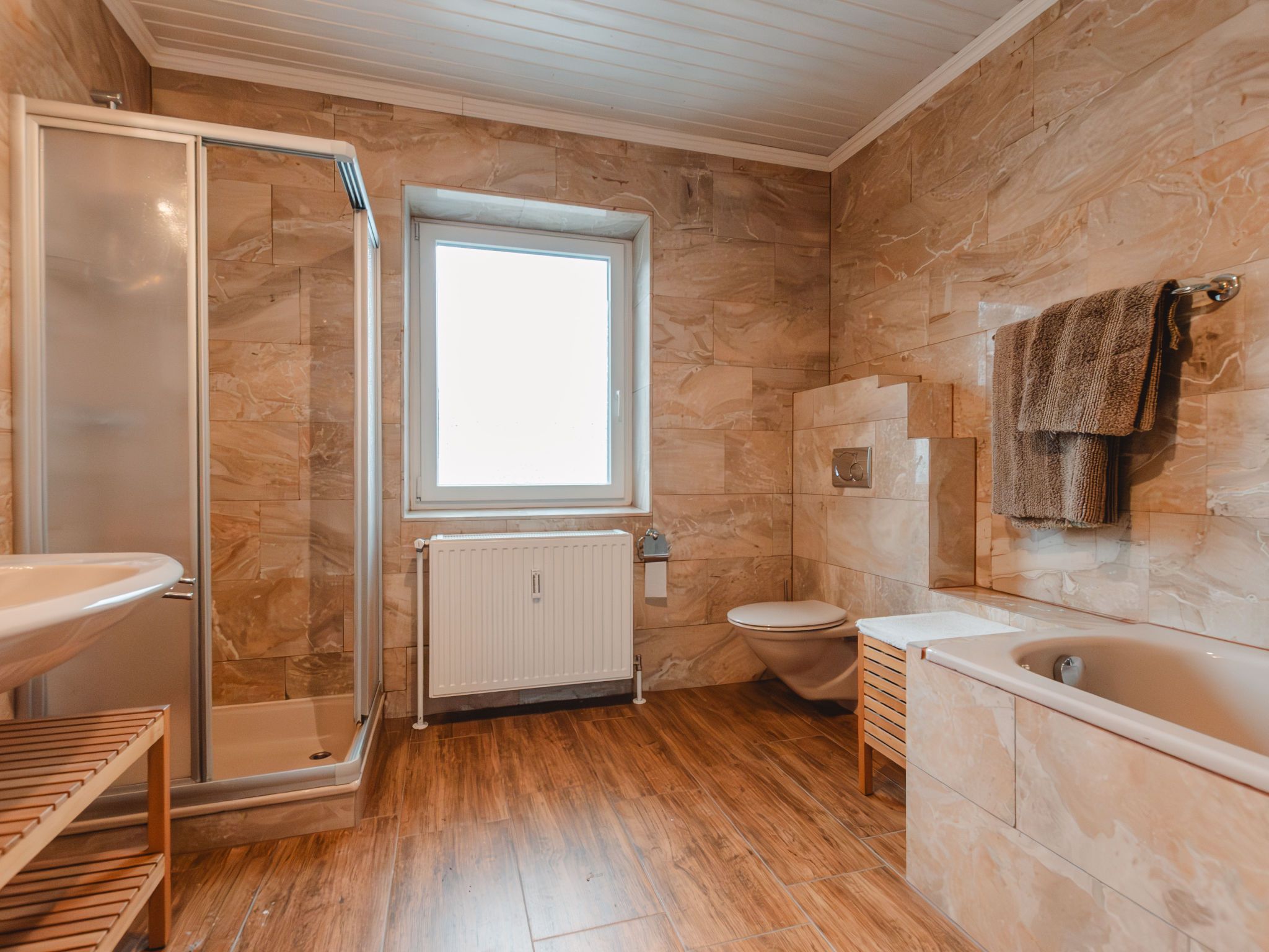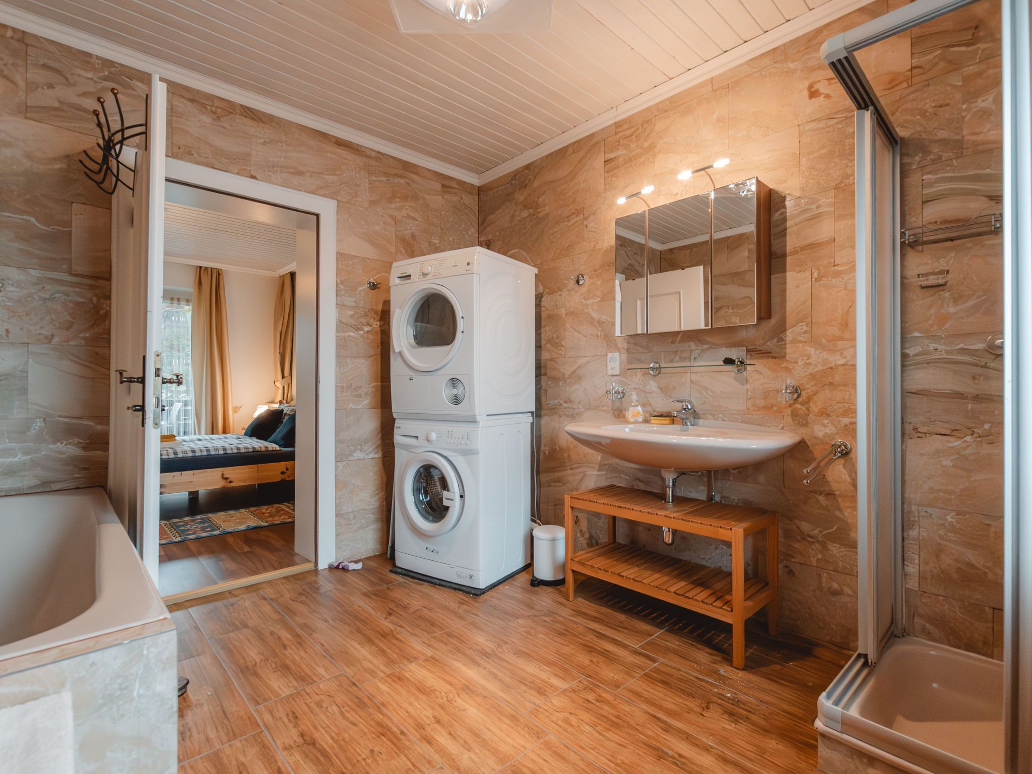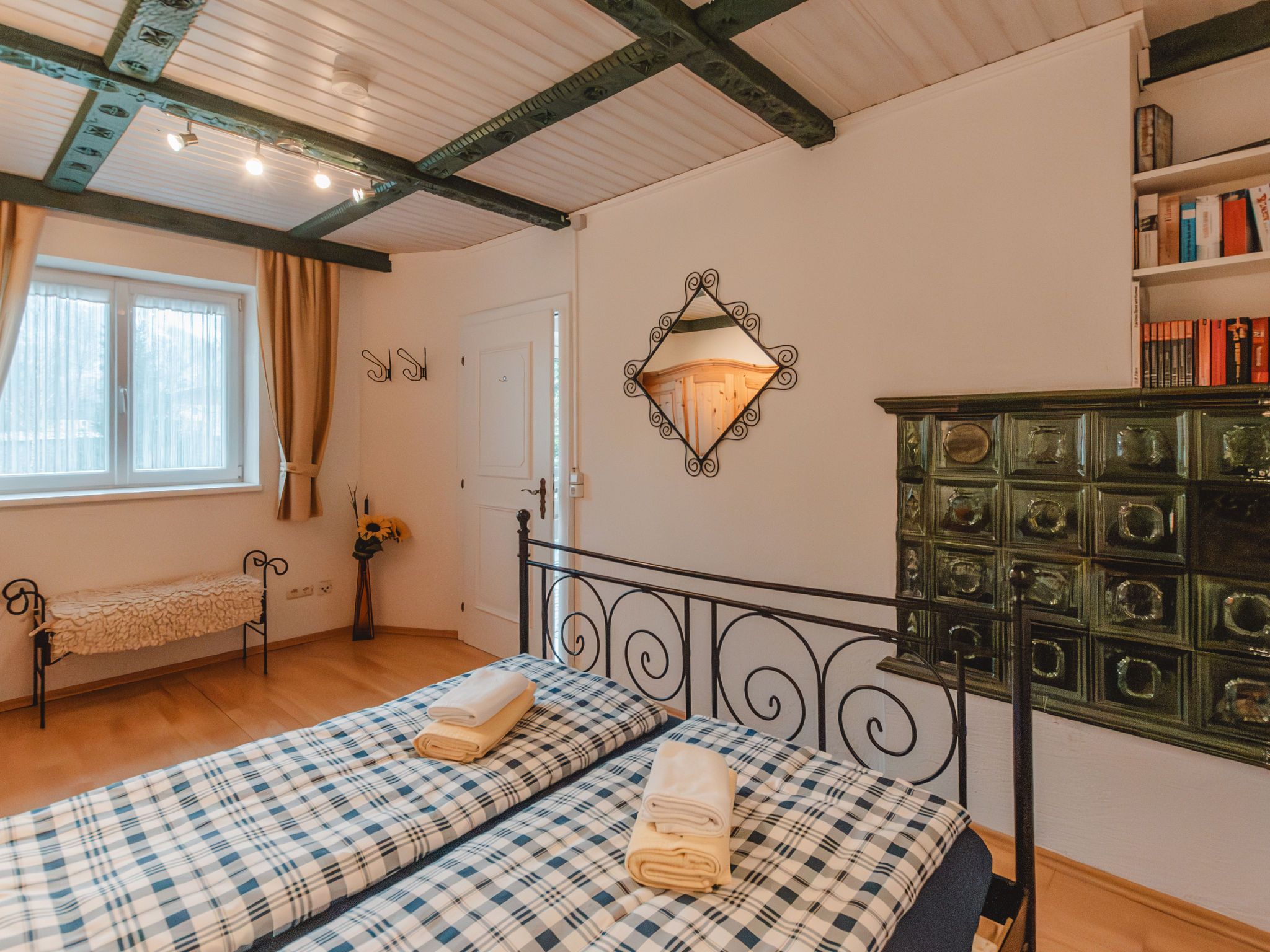The Alpine Classic, 3-Zimmer-Wohnung 101 m2 im 1. Stock. Geräumig und hell, komfortabel und geschmackvoll eingerichtet: Eingang. Wohn-/Esszimmer mit 1 Doppeldiwanbett, offenem Kamin, Esstisch und Sat-TV (Flachbildschirm). Ausgang zur Terrasse. 1 Zimmer mit 1 Diwanbett, 1 Doppelbett und Bad/Dusche/WC. Ausgang zum Balkon. 1 Doppelzimmer mit 1 Doppelbett. Küche (Backofen, Geschirrspüler, 4 Glaskeramikplatten, Toaster, Wasserkocher, Mikrowelle, Tiefkühler, elektrische Kaffeemaschine) mit kleiner Bar. Bad/WC. Holzdielenboden. Grosse Terrasse 75 m2. Terrassenmöbel, Gartengrill, Liegestühle. Herrliche Sicht auf die Berge, das Tal und den Garten. Zur Verfügung: Waschmaschine, Wäschetrockner. Internet (Wireless LAN, gratis). Bitte beachten: geeignet für Familien. Nichtraucher-Unterkunft. Rauchmelder. Achtung: Kleinkinder und Babies gelten als volle Person und können nicht kostenfrei mitgenommen werden. 50403-000215-2020