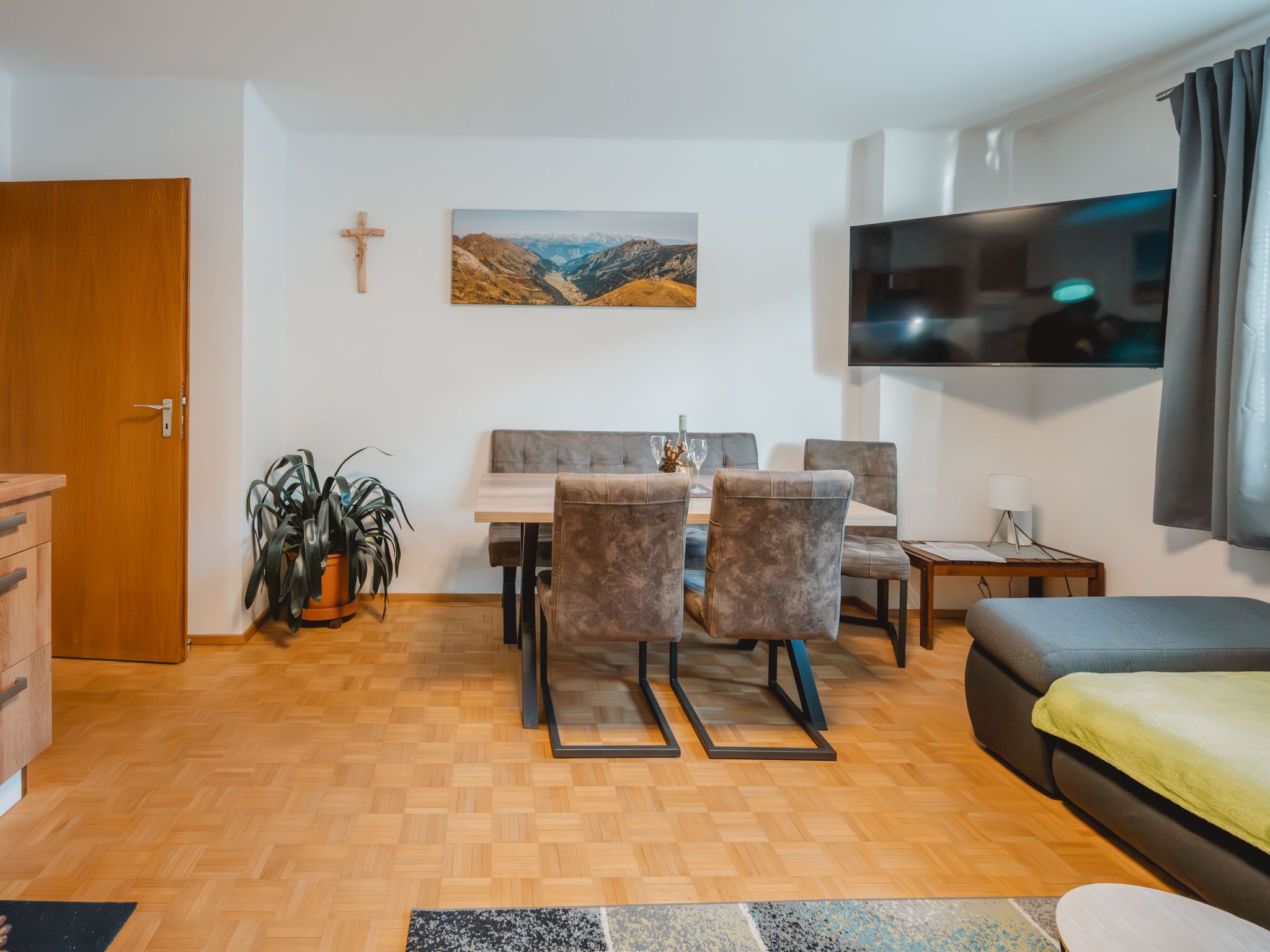 3-Zimmer-Wohnung 75 m2, im Obergeschoss. Objekt geeignet für 4 Erwachsene + 1 Kind. Hell, renoviert im Jahre 2022, gemütlich eingerichtet: Obergeschoss: Eingang. 2 Doppelzimmer. Ausgang zum Balkon. Wohnküche (Backofen, Geschirrspüler, 4 Glaskeramikplatten, Toaster, Wasserkocher, Mikrowelle, elektrische Kaffeemaschine) mit Esstisch, Kabel-TV und Flachbildschirm. Bad/Dusche, sep. WC, Doppelwaschbecken. Fussbodenheizung. Parkettboden, Natursteinboden. Balkon. Balkonmöbel. Sicht auf die Landschaft und die Ortschaft. Zur Verfügung: Kinderhochstuhl, Babybett bis 2 Jahre (extra), Haartrockner. Internet (Wireless LAN, gratis). Bitte beachten: Nichtraucher-Unterkunft. Rauchmelder, Feuerlöscher. 50622-091048-2022