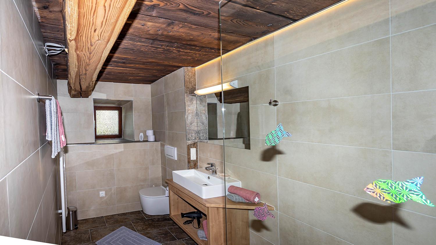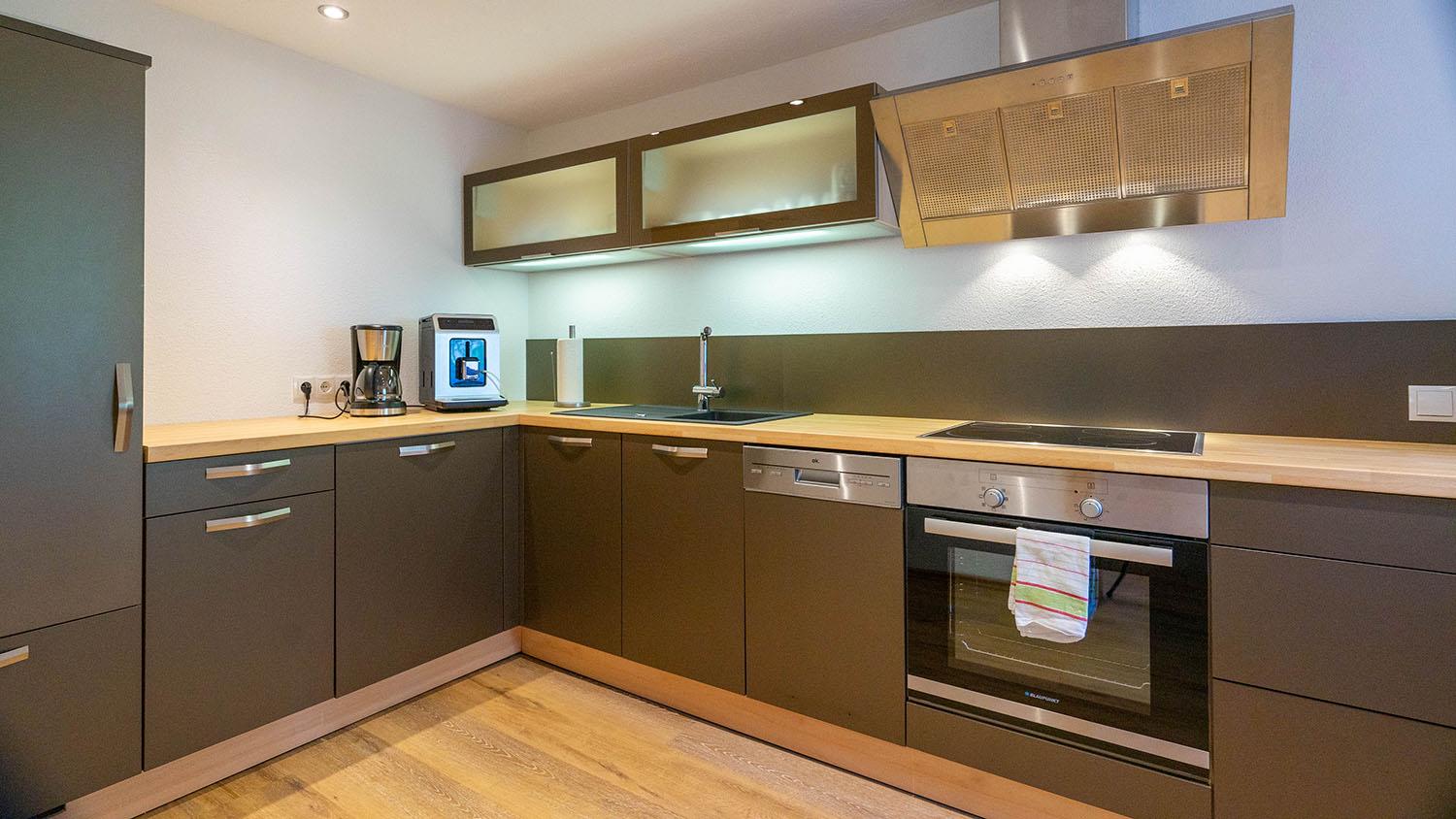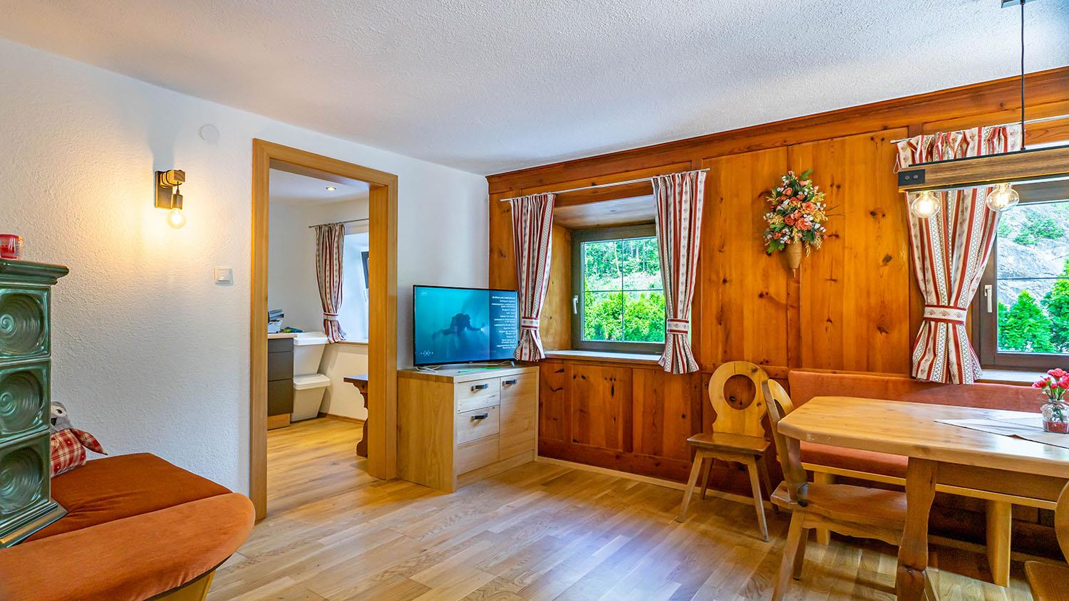 Unser Appartement (ca. 120 m²) besteht aus: 2 Doppel- und 1 Dreibettzimmer, einer vollausgestatteten Wohnküche (Cerancochfeld, Backrohr, Spülmaschine, Kühlschrank mit Gefrierfach, Mikrowelle, Wasserkocher, Brotschneidemaschine, Toaster etc.) Kachelofen mit gemütlicher Sitzecke, ausziehbarer Doppelausziehcouch für die 8. und 9 Person und Flat-TV, 2 Badezimmer mit Dusche/WC.