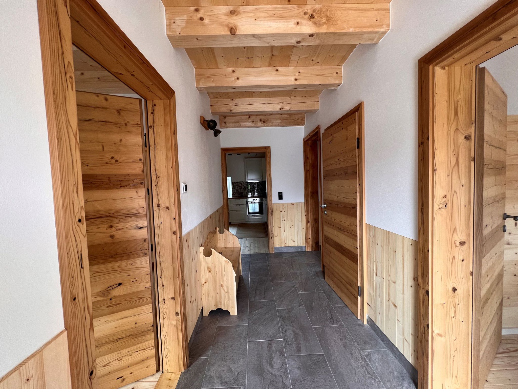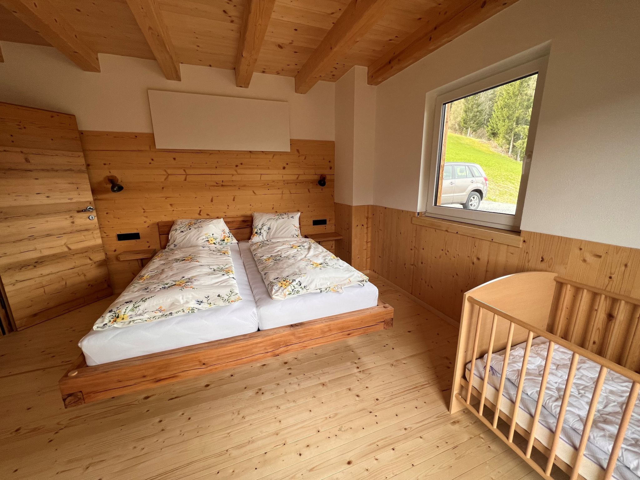 Hettegg Lehen, 4-Zimmer-Haus 85 m2. Hell, vollständig renoviert im Jahre 2023, gemütlich und mit viel Holz eingerichtet: Eingang. Wohn-/Esszimmer mit Esstisch, Sat-TV, Internationale TV-Sender, Flachbildschirm und Radio. 2 Doppelzimmer. Ausgang zum Balkon. 1 Doppelzimmer. Wohnküche (Backofen, Geschirrspüler, 4 Glaskeramikplatten, Toaster, Wasserkocher, elektrische Kaffeemaschine, Racletteofen, Fondue Set (Chinoise)). Dusche, sep. WC. Holzdielenboden. Grosser Balkon, grosser Gartensitzplatz. Terrassenmöbel, Gartengrill, Liegestühle (2). Herrliche Panoramasicht auf die Berge und die Landschaft. Zur Verfügung: Waschmaschine (extra). Wäschetrockner (extra), Bügeleisen, Kinderhochstuhl, Babybett bis 2 Jahre, Haartrockner, Wickelkommode. Internet (WLAN, gratis). Bitte beachten: Nichtraucher-Unterkunft. 1 Haustier/Hund erlaubt. Rauchmelder, Feuerlöscher. 50602-000359-2023