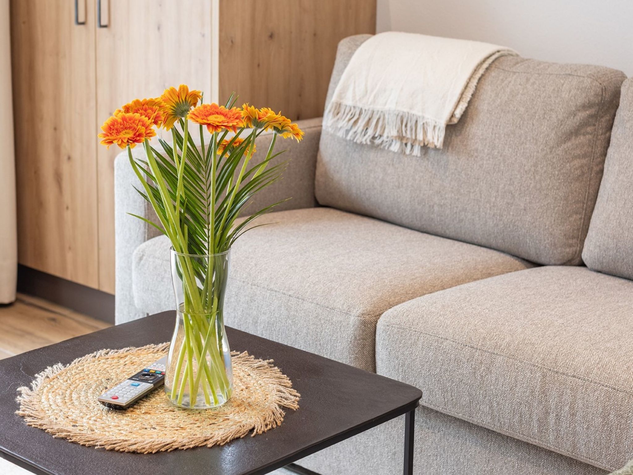 Top 4, 2-Zimmer-Wohnung 55 m2 im 1. Stock. Hell, sehr modern und geschmackvoll eingerichtet: Eingang. 1 Doppelzimmer mit Kabel-TV (Flachbildschirm). Wohnküche (Backofen, Geschirrspüler, 4 Glaskeramikplatten, Toaster, Wasserkocher, elektrische Kaffeemaschine) mit 1 Doppeldiwanbett, Esstisch und Kabel-TV (Flachbildschirm). Ausgang zum Balkon. Dusche/WC. Fussbodenheizung. Balkon 6 m2. Sehr schöne Sicht auf die Berge und die Landschaft. Zur Verfügung: Internet (WLAN, gratis). Bitte beachten: 1 Haustier/Hund erlaubt. Rauchmelder. 50602-000351-2022