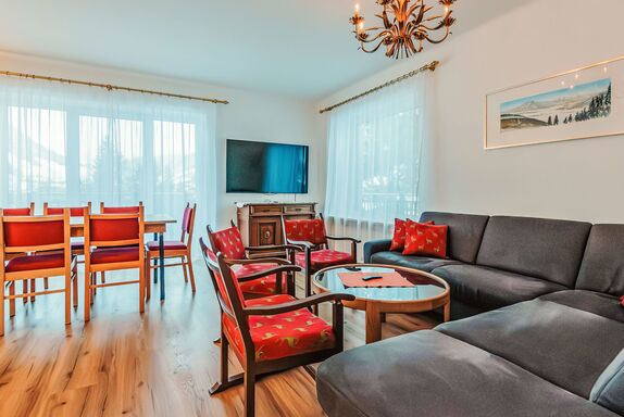 8-Zimmer-Haus 180 m2 auf 2 Stockwerken. Komfortabel und gemütlich eingerichtet: Eingang. Wohnzimmer mit Sat-TV (Flachbildschirm). Ausgang zum Balkon. Esszimmer mit Essecke. 2 Zimmer, jedes Zimmer mit 1 Bett. 1 Doppelzimmer. Küche (Backofen, Geschirrspüler, 4 Glaskeramikplatten, Mikrowelle, Tiefkühler, elektrische Kaffeemaschine). Dusche, sep. WC. Unteres Geschoss: Eingang. 2 Doppelzimmer. 1 Zimmer mit 1 Bett. 1 Zimmer mit 1 x 2 Etagenbetten, 1 Doppelbett. Dusche, sep. WC. Balkon 30 m2, Terrasse 12 m2, Gartensitzplatz. Terrassenmöbel, Balkonmöbel. Schöne Sicht auf die Berge und das Tal. Zur Verfügung: Waschmaschine (extra). Internet (Wireless LAN, gratis). Parkplatz beim Haus. Bitte beachten: geeignet für Familien. Nichtraucher-Haus. Maximal 3 Haustiere/Hunde erlaubt. Rauchmelder. 50602-000274-2020