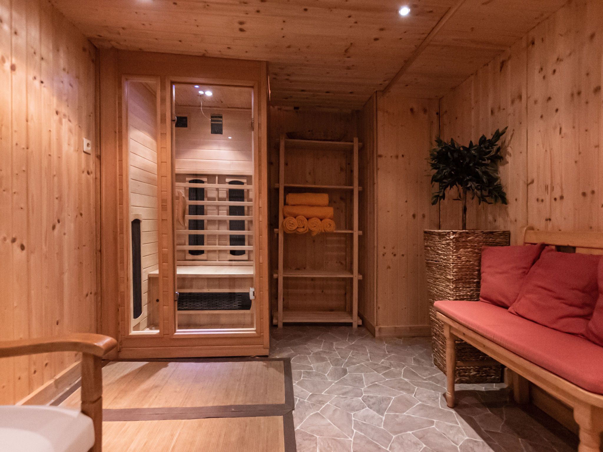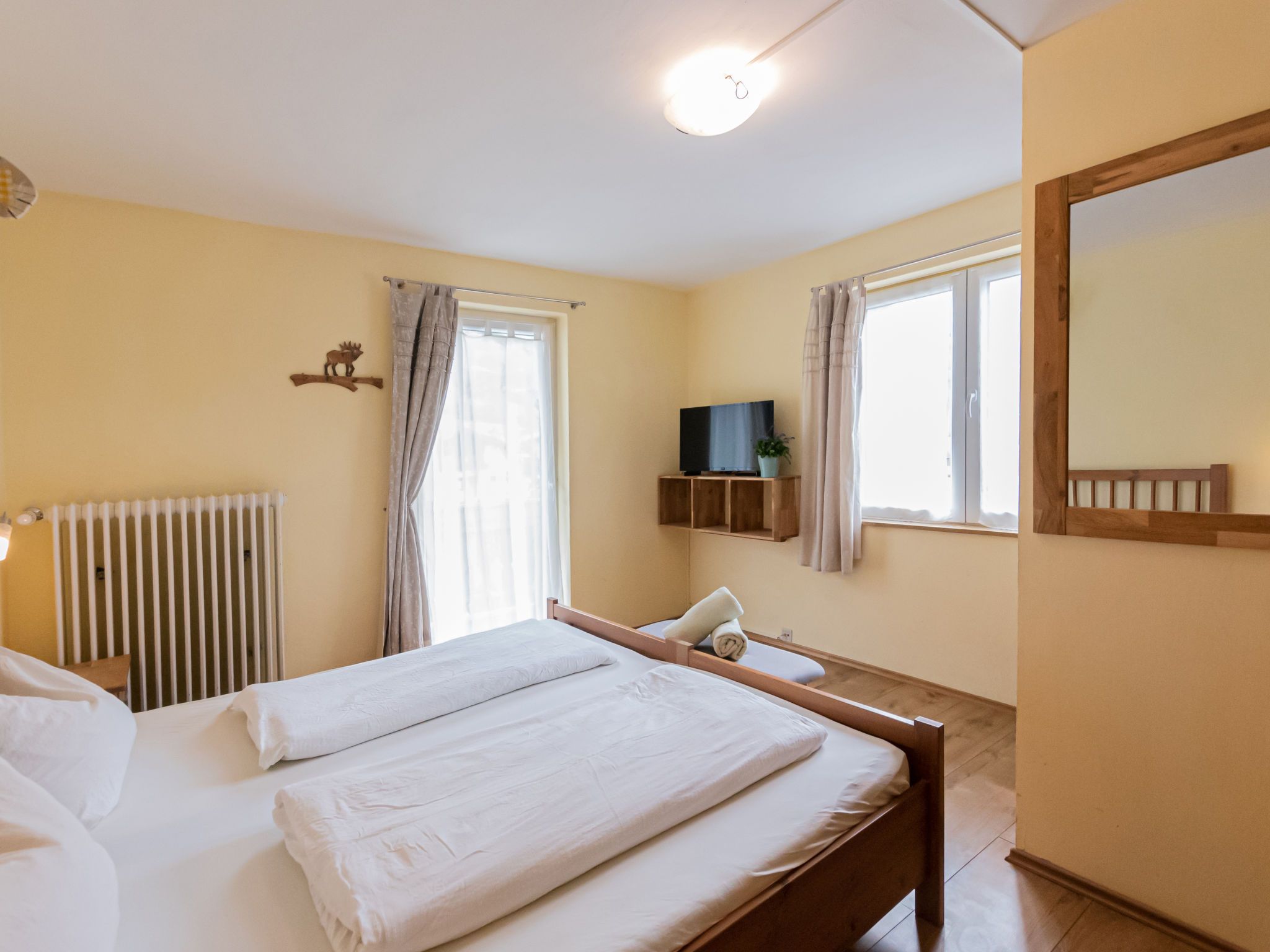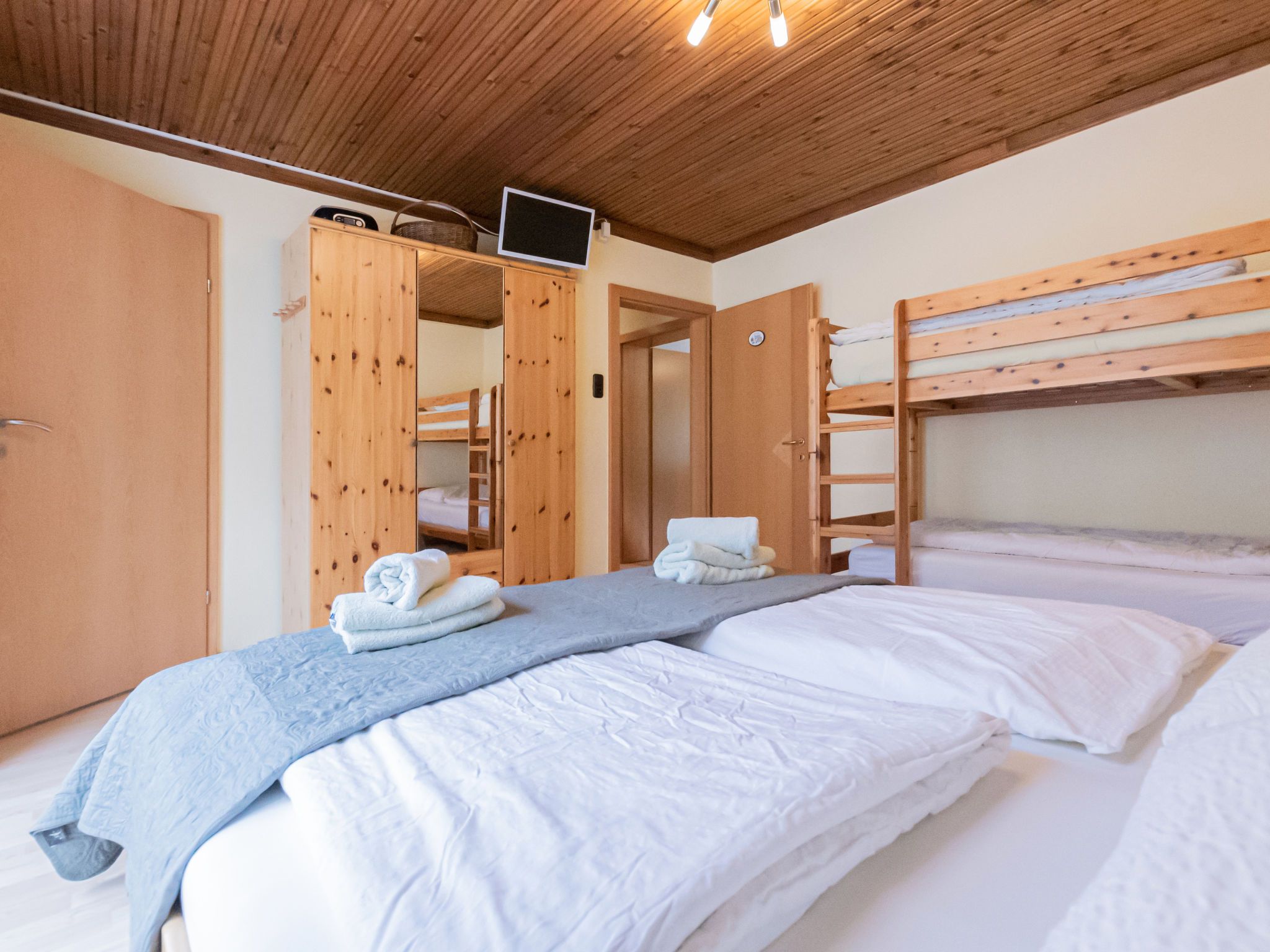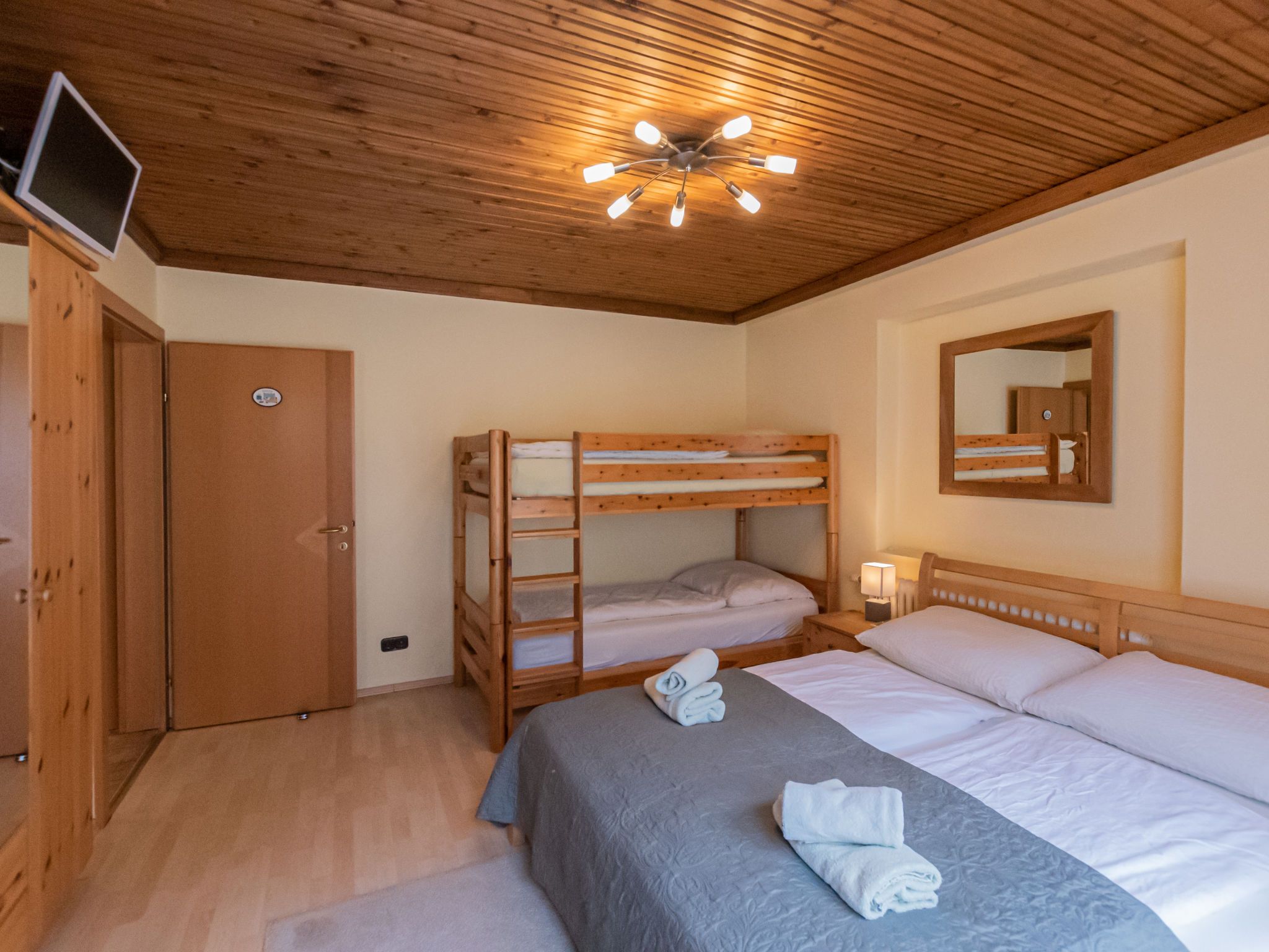 Charlotte/50604-002146-2020, 10-Zimmer-Haus 240 m2 auf 3 Stockwerken. Gemütlich eingerichtet: 1 Zimmer mit 1 x 2 Etagenbetten, 1 Doppelbett, Bad/Dusche/WC, Kabel-TV, Flachbildschirm, Radio, CD und DVD. Esszimmer mit Esstisch, Kabel-TV, Flachbildschirm, DVD und Holzofen. Grosse Küche (4 Kochplatten, Backofen, Geschirrspüler, Mikrowelle, Tiefkühler, elektrische Kaffeemaschine). Sep. WC. Unteres Geschoss: Spielzimmer mit Kabel-TV (Flachbildschirm). Obergeschoss: 2 Doppelzimmer, jedes Zimmer mit Waschbecken, Dusche und Kabel-TV (Flachbildschirm), Radio, CD und DVD. Ausgang zum Balkon. 1 Doppelzimmer mit Bad/Dusche/WC und Kabel-TV (Flachbildschirm), Radio, CD und DVD. Ausgang zum Balkon. 1 Zimmer mit 1 Doppelbett, Waschbecken, Dusche/WC und Kabel-TV (Flachbildschirm), Radio, CD und DVD. Ausgang zum Balkon. 2. Obergeschoss: 3 Doppelzimmer. Wohnküche (Backofen, Geschirrspüler, 4 Glaskeramikplatten, Wasserkocher, Mikrowelle, elektrische Kaffeemaschine) mit Essecke, Kabel-TV und Flachbildschirm. Ausgang zum Balkon. Bad/Dusche/WC. Schöne Sicht auf die Berge. Zur Verfügung: Bügeleisen, Haartrockner. Internet (WLAN, gratis). Parkplatz beim Haus. Bitte beachten: geeignet für Familien. Nichtraucher-Haus. 1 Haustier/Hund erlaubt. Rauchmelder. Im Keller befindet sich eine Infrarot-Sauna. Im Spielzimmer befinden sich ein Pool Tisch, eine elektronische Dart Anlage, Spielesammlung und eine Bibliothek. Weiters im Haus: Bügeleisen, Babybett, Hochstuhl und Wickelauflage. 50604-002146-2020
