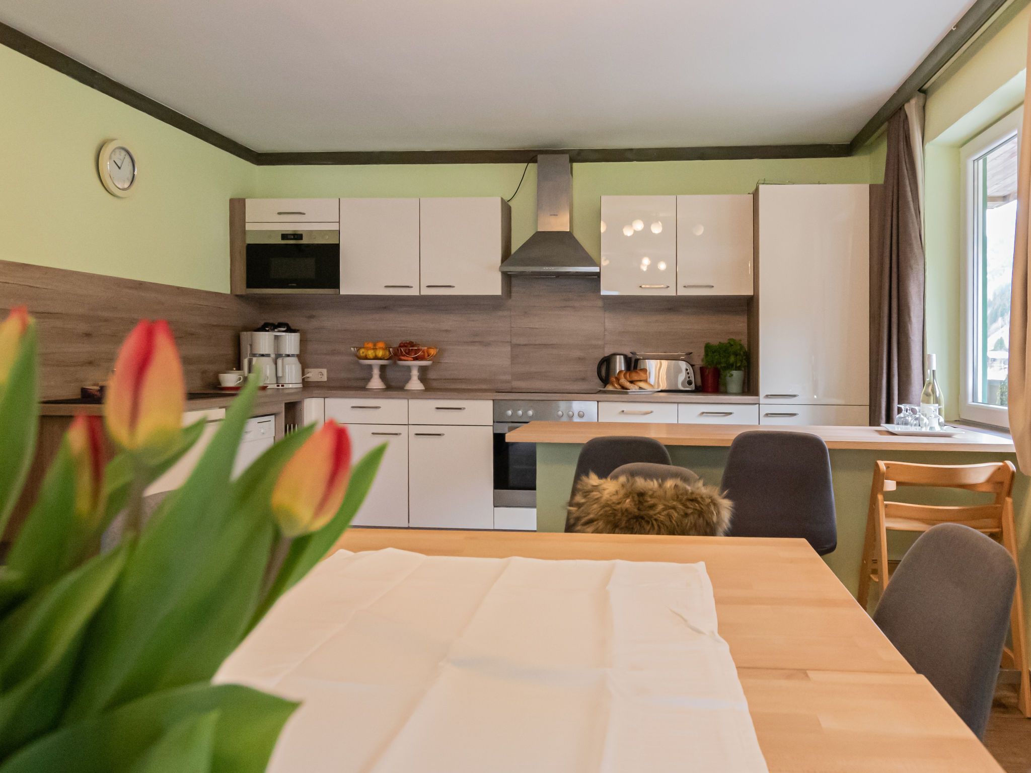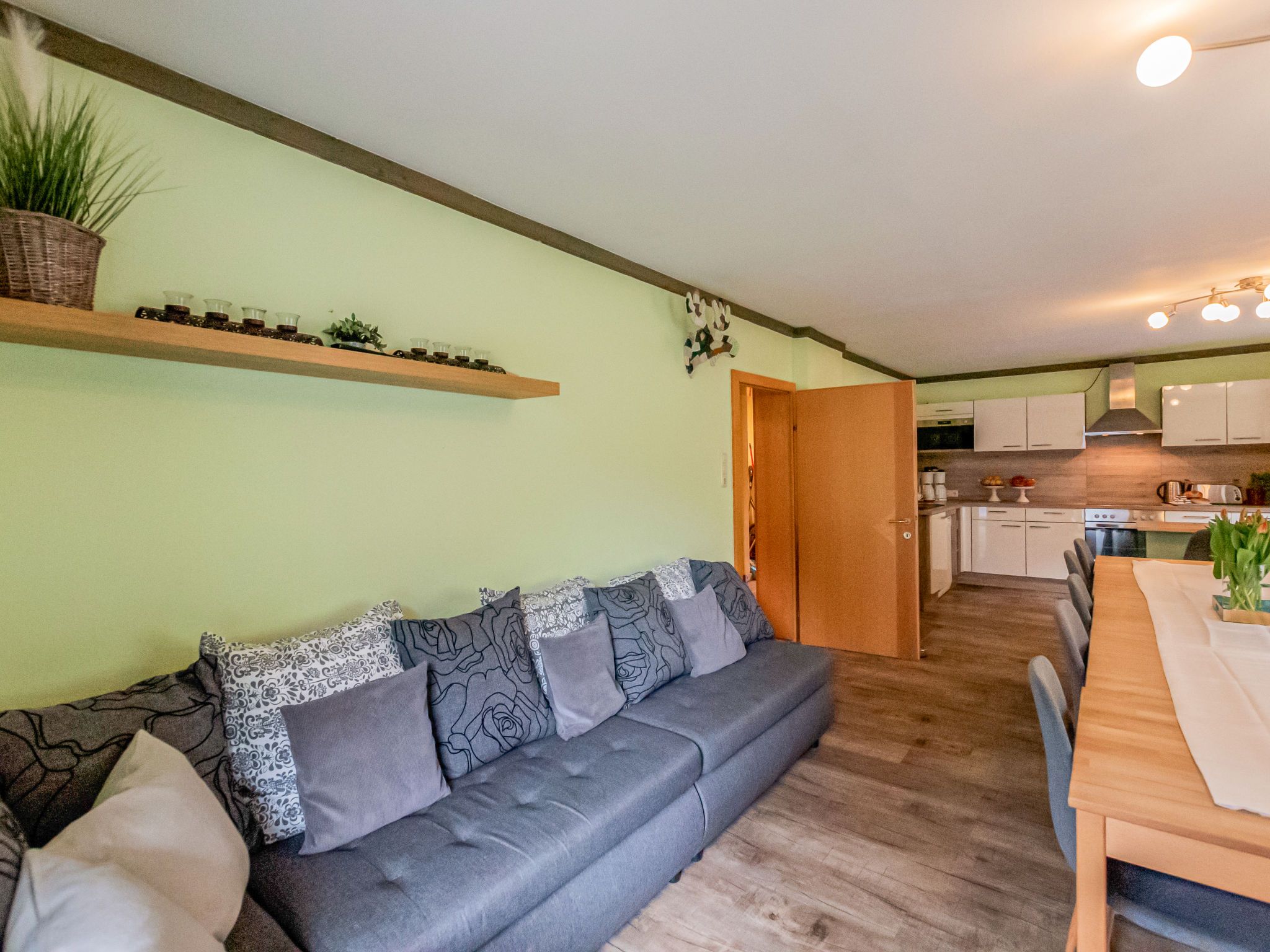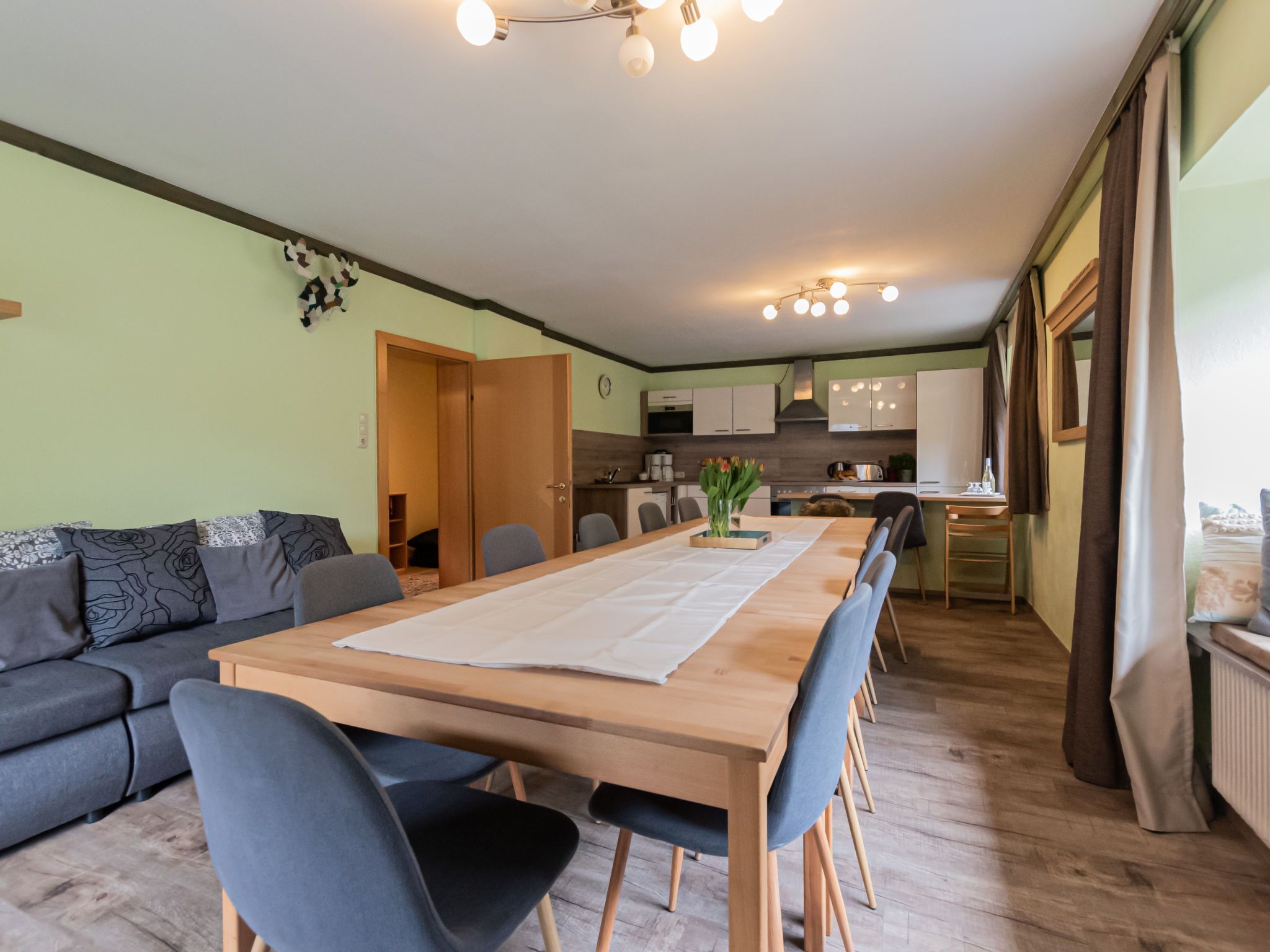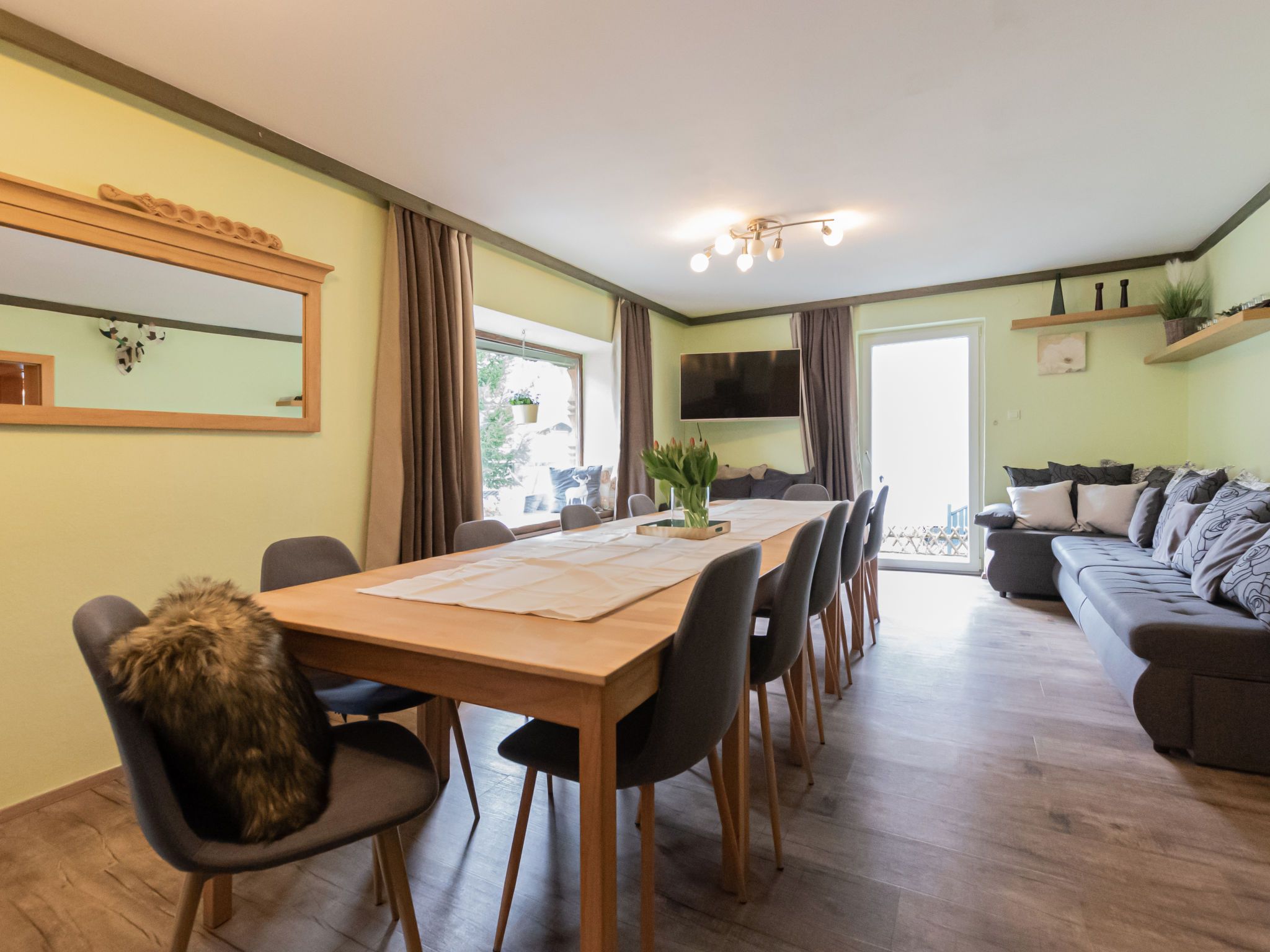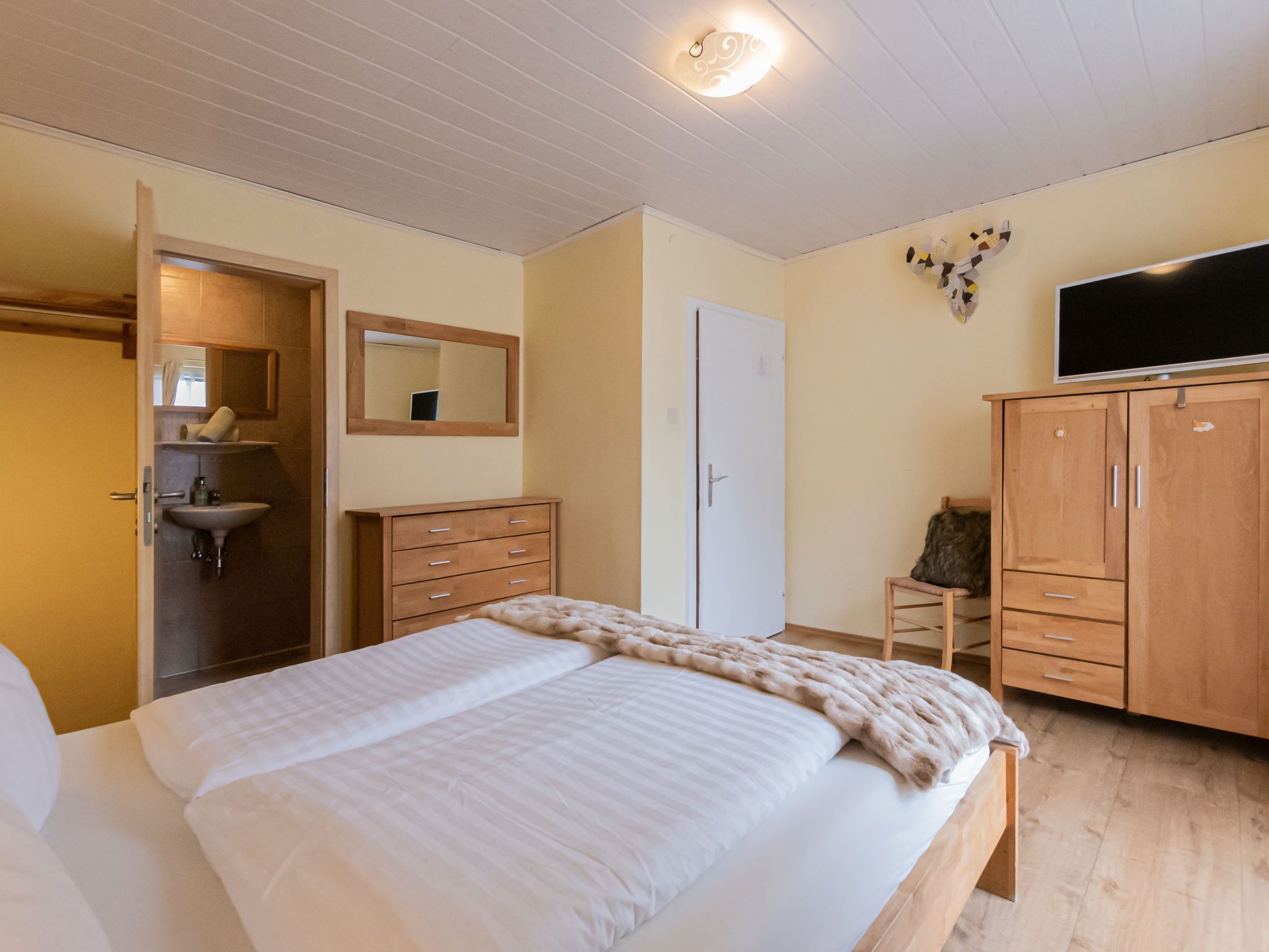 Charlotte/50604-002146-2020, 10-Zimmer-Haus 240 m2 auf 3 Stockwerken. Gemütlich eingerichtet: 1 Zimmer mit 1 x 2 Etagenbetten, 1 Doppelbett, Bad/Dusche/WC, Kabel-TV, Flachbildschirm, Radio, CD und DVD. Esszimmer mit Esstisch, Kabel-TV, Flachbildschirm, DVD und Holzofen. Grosse Küche (4 Kochplatten, Backofen, Geschirrspüler, Mikrowelle, Tiefkühler, elektrische Kaffeemaschine). Sep. WC. Unteres Geschoss: Spielzimmer mit Kabel-TV (Flachbildschirm). Obergeschoss: 2 Doppelzimmer, jedes Zimmer mit Waschbecken, Dusche und Kabel-TV (Flachbildschirm), Radio, CD und DVD. Ausgang zum Balkon. 1 Doppelzimmer mit Bad/Dusche/WC und Kabel-TV (Flachbildschirm), Radio, CD und DVD. Ausgang zum Balkon. 1 Zimmer mit 1 Doppelbett, Waschbecken, Dusche/WC und Kabel-TV (Flachbildschirm), Radio, CD und DVD. Ausgang zum Balkon. 2. Obergeschoss: 3 Doppelzimmer. Wohnküche (Backofen, Geschirrspüler, 4 Glaskeramikplatten, Wasserkocher, Mikrowelle, elektrische Kaffeemaschine) mit Essecke, Kabel-TV und Flachbildschirm. Ausgang zum Balkon. Bad/Dusche/WC. Schöne Sicht auf die Berge. Zur Verfügung: Bügeleisen, Haartrockner. Internet (WLAN, gratis). Parkplatz beim Haus. Bitte beachten: geeignet für Familien. Nichtraucher-Haus. 1 Haustier/Hund erlaubt. Rauchmelder. Im Keller befindet sich eine Infrarot-Sauna. Im Spielzimmer befinden sich ein Pool Tisch, eine elektronische Dart Anlage, Spielesammlung und eine Bibliothek. Weiters im Haus: Bügeleisen, Babybett, Hochstuhl und Wickelauflage. 50604-002146-2020
