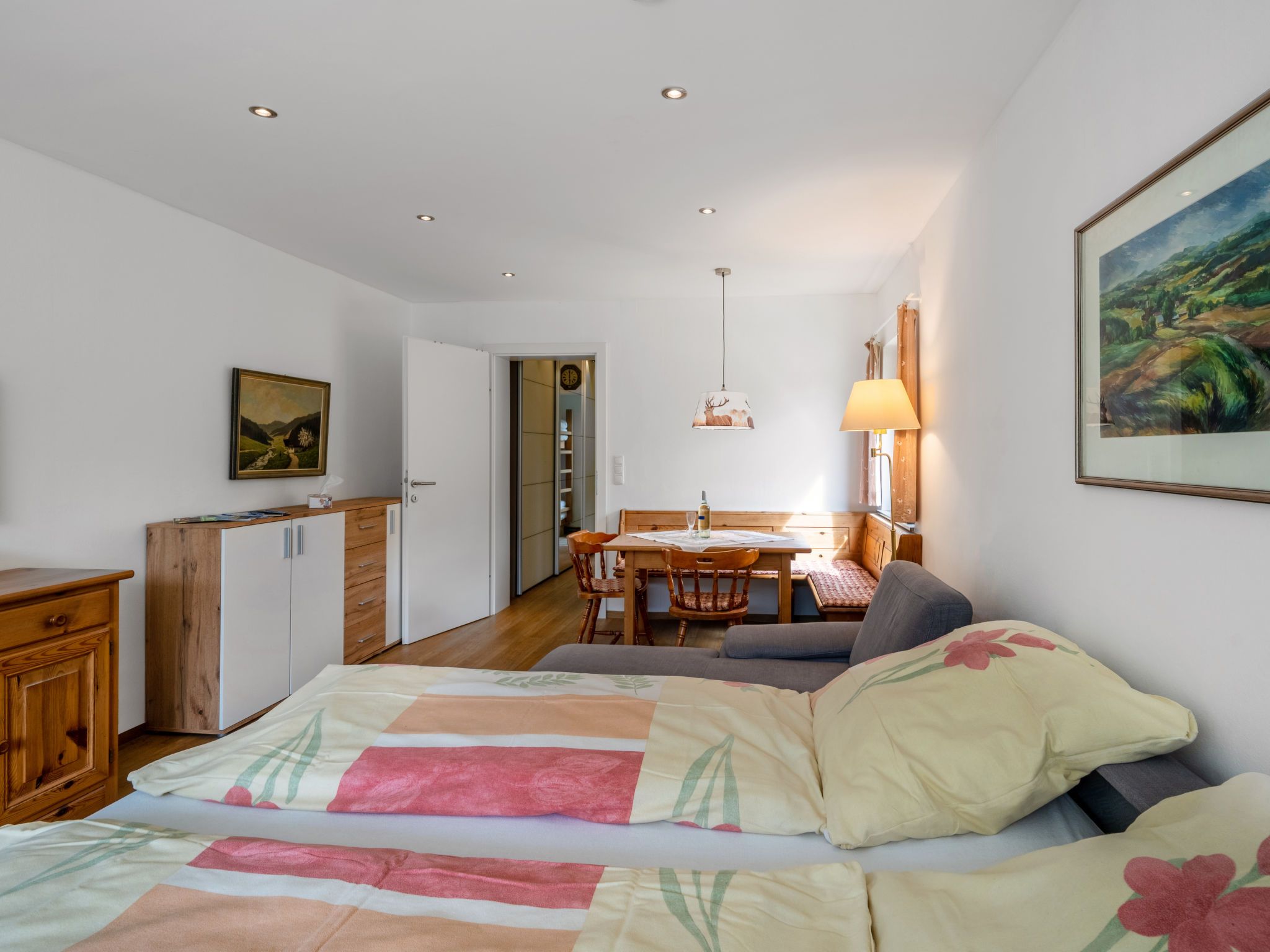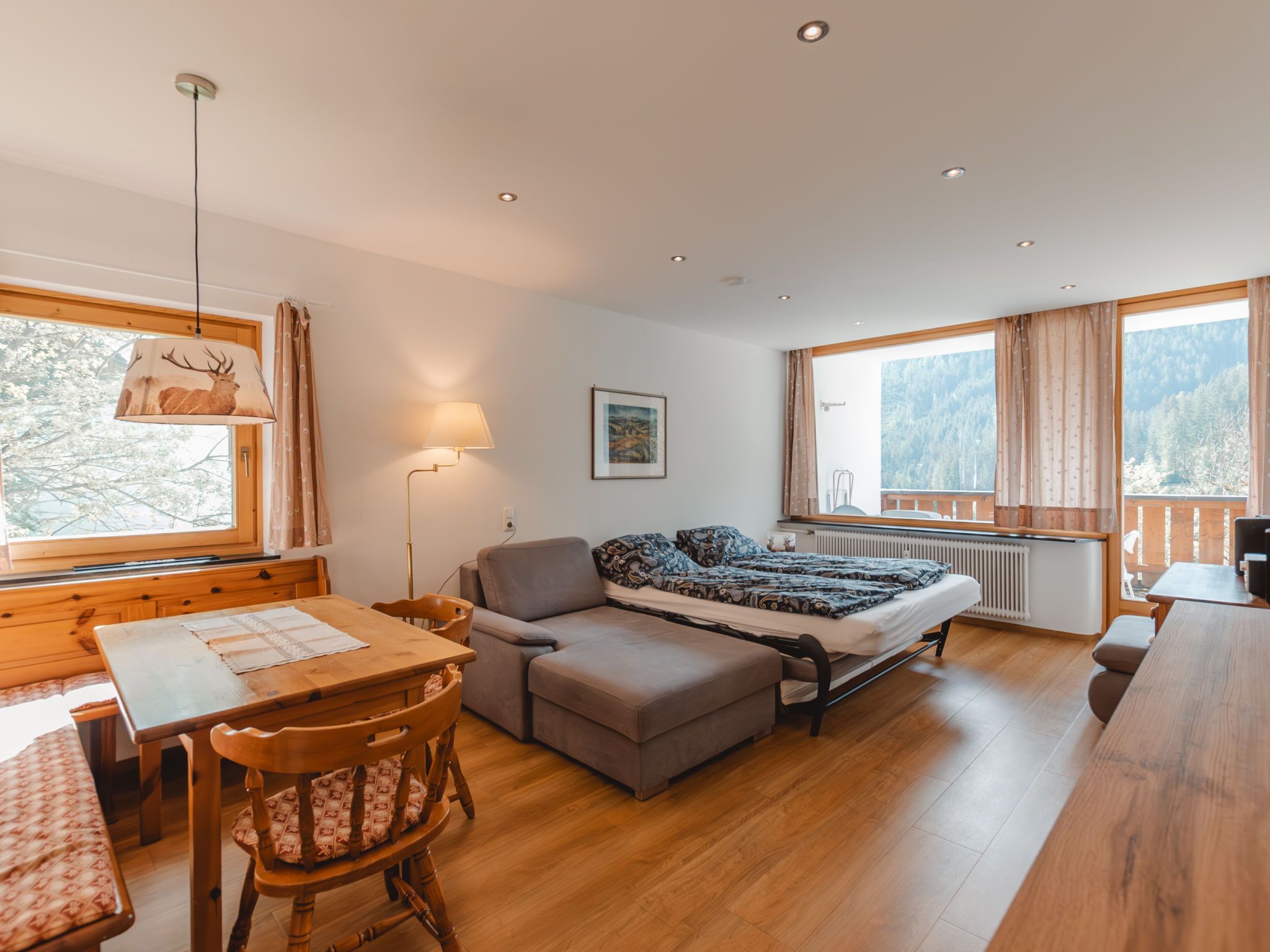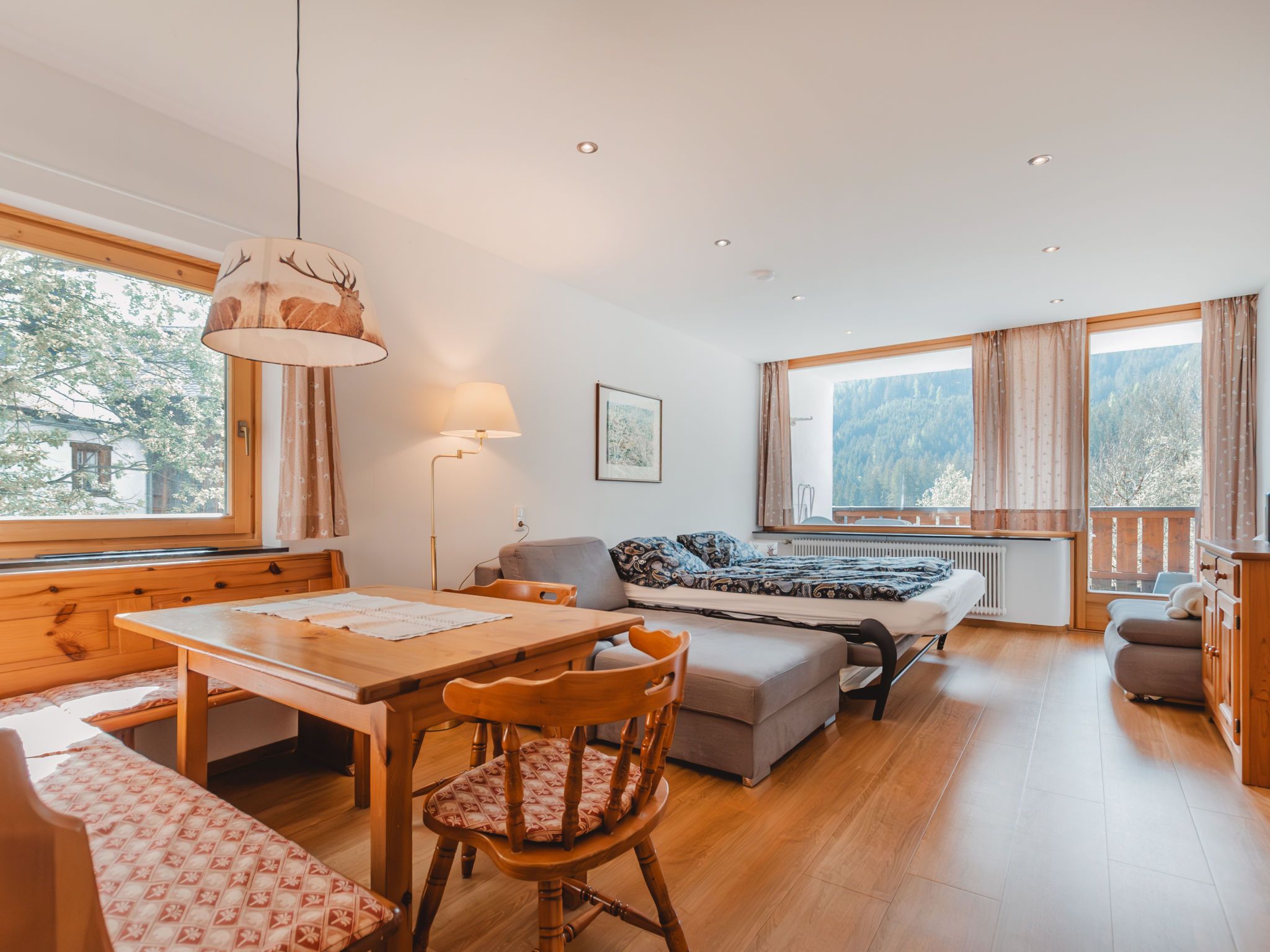 Holger, 1-Zimmer-Wohnung 40 m2 im 1. Stock. Teilweise renoviert im Jahre 2021, gemütlich eingerichtet: Eingang. Wohn-/Schlafzimmer mit 1 Diwanbett und 1 Doppeldiwanbett (168 cm, Länge 195 cm), Sat-TV (Flachbildschirm). Ausgang zum Balkon. Kleine Küche (2 Kochplatten, Backofen, Toaster, Mikrowelle, Grill, elektrische Kaffeemaschine) mit Essecke. Dusche/WC. G-Heizung. Terrasse 10 m2, Südlage. Schöne Panoramasicht auf die Berge, das Tal und die Skipiste. Zur Verfügung: Internet (Wireless LAN, gratis). Parkplatz, Garage beim Haus. Bitte beachten: geeignet für Familien. Nichtraucher-Unterkunft. Rauchmelder, Feuerlöscher. Teilüberdachte Südterrasse. Die Wohnung liegt am Ende des Ganges, daher ruhige Lage. 50628-001136-2020