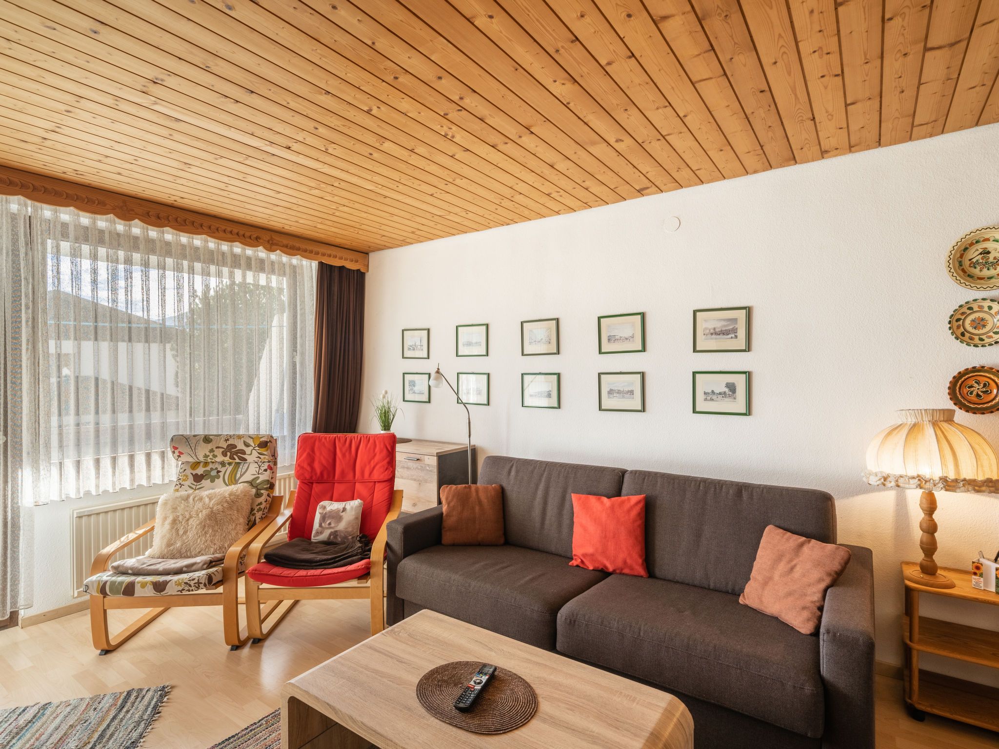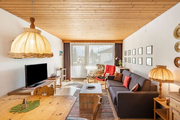 2-Zimmer-Wohnung 45 m2 im 1. Stock. Teilweise renoviert im Jahre 2018, rustikal und gemütlich eingerichtet: Wohn-/Schlafzimmer 20 m2 mit 1 Doppeldiwanbett, Essecke, TV und Radio. Ausgang zum Balkon. 1 Doppelzimmer mit TV. Kochnische (4 Glaskeramikplatten, Toaster, Wasserkocher, elektrische Kaffeemaschine). Bad/WC. E-Heizung. Balkon 6 m2, Südlage. Terrassenmöbel. Schöne Sicht auf die Berge und die Landschaft. Zur Verfügung: Internet (Wireless LAN). Bitte beachten: Nichtraucher-Unterkunft. Die Wohnung befindet sich in Haus Nr. 11. 50611-002940-2020