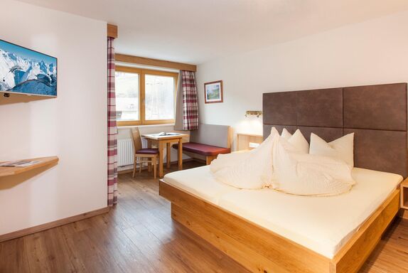 Ihr Komfortzimmer ist sehr großzügig und in Tiroler Naturholz gehalten. Das Zimmer verfügt teilweise über einen Balkon, Flat-TV, Safe und eine gemütliche Sitzecke. Das Badezimmer ist mit Dusche/WC und Haarföhn ausgestattet.