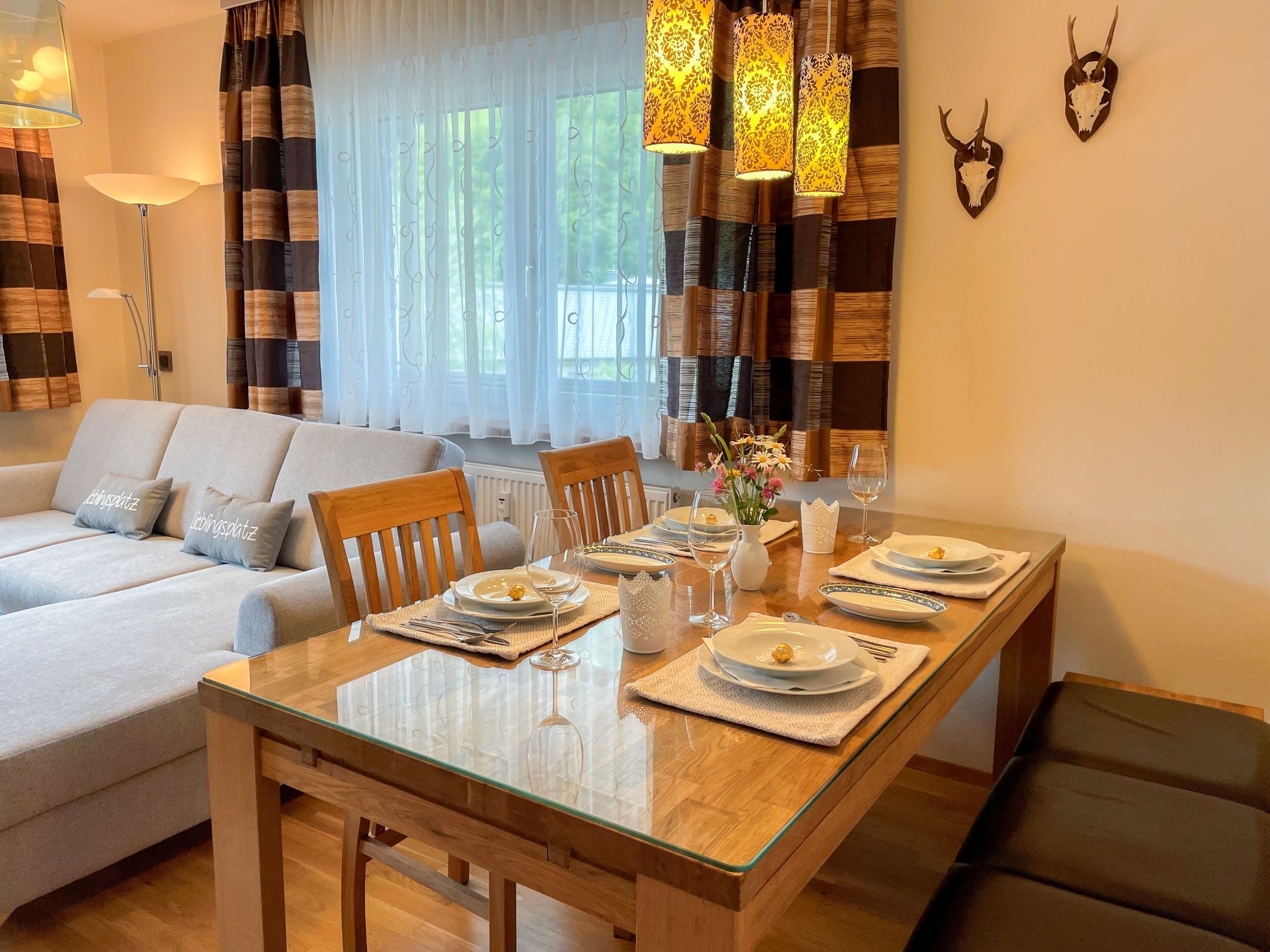 Areitblick, 3-Zimmer-Wohnung 55 m2 im 3. Stock. Geräumig, komfortabel und geschmackvoll eingerichtet: Eingang. Wohn-/Esszimmer mit Esstisch, Kabel-TV, Internationale TV-Sender und Flachbildschirm. Ausgang zum Balkon. 1 Doppelzimmer mit Kabel-TV. 1 Zimmer mit 2 Betten (80 cm, Länge 190 cm), Kabel-TV. Offene Küche (Backofen, Geschirrspüler, 4 Glaskeramikplatten, Toaster, Wasserkocher, Tiefkühler, elektrische Kaffeemaschine, Kapseln für die Kaffeemaschine (Nespresso), Kochinsel). Dusche, sep. WC. Parkettboden. Grosser Balkon. Balkonmöbel. Fernsicht auf die Berge und die Skipiste. Zur Verfügung: Kinderhochstuhl. Internet (Wireless LAN, gratis). Parkplatz beim Haus. 50628-001551-2022