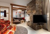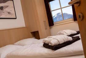 Mountain Resort C15, 4-Zimmer-Wohnung 102 m2 im 1. Stock. Objekt geeignet für 6 Erwachsene + 2 Kinder. Geräumig und hell, komfortabel und geschmackvoll eingerichtet: offenes grosses Wohnzimmer mit Panoramafenster mit offenem Kamin, Kabel-TV, Flachbildschirm und Radio. Ausgang zum Balkon. 1 Doppelzimmer mit Dusche/WC, Kabel-TV und Flachbildschirm. 1 Doppelzimmer mit Dusche/WC, Kabel-TV und Flachbildschirm. 1 Zimmer mit 1 x 2 Etagenbetten (180 cm, Länge 200 cm), Kabel-TV und Flachbildschirm. Grosse, offene Küche (Backofen, Geschirrspüler, 4 Glaskeramikplatten, Toaster, Wasserkocher, elektrische Kaffeemaschine, Kapseln für die Kaffeemaschine (Nespresso 80 Stk) gratis) mit Essecke. Natursteinboden. Balkonmöbel, Liegestühle (2). Zur Verfügung: Internet (Wireless LAN). Bitte beachten: Nichtraucher-Unterkunft. Rauchmelder, Feuerlöscher. Diese Wohnung hat 2 Bäder, entweder separat oder von einem Schlafzimmer aus erreichbar. 50606-007508-2023