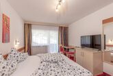 * Wohn-Schlafzimmer mit Essbereich, Schrankbett (160x200 cm), Badezimmer mit DU/WC, Flat-Sat-TV, Balkon