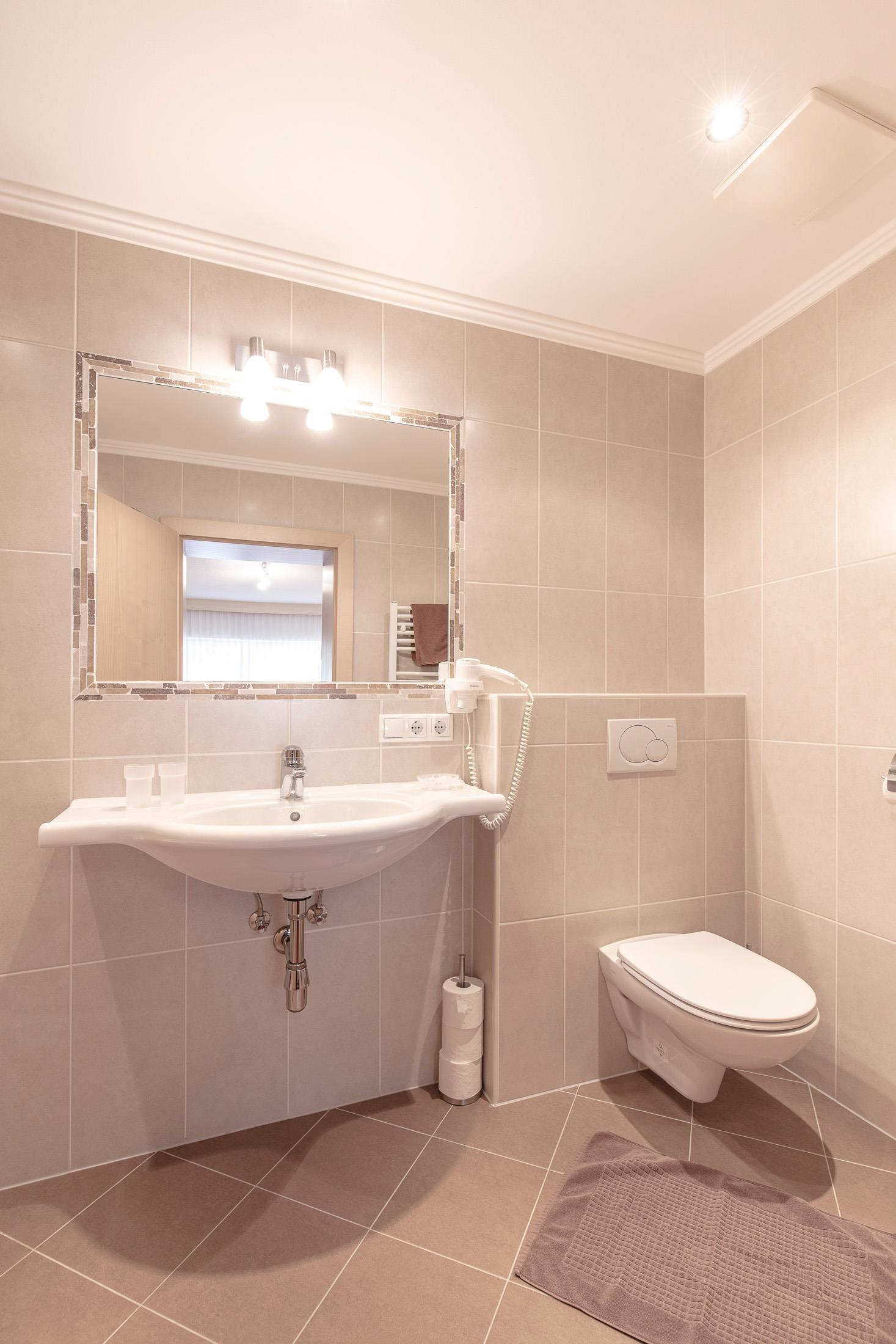 * Schlafzimmer mit Doppelbett (180x200 cm) und Badezimmer mit DU/WC, Haartrockner