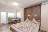* Wohn-Schlafzimmer mit Essbereich, Schrankbett (160x200 cm), Badezimmer mit DU/WC, Flat-Sat-TV, Balkon