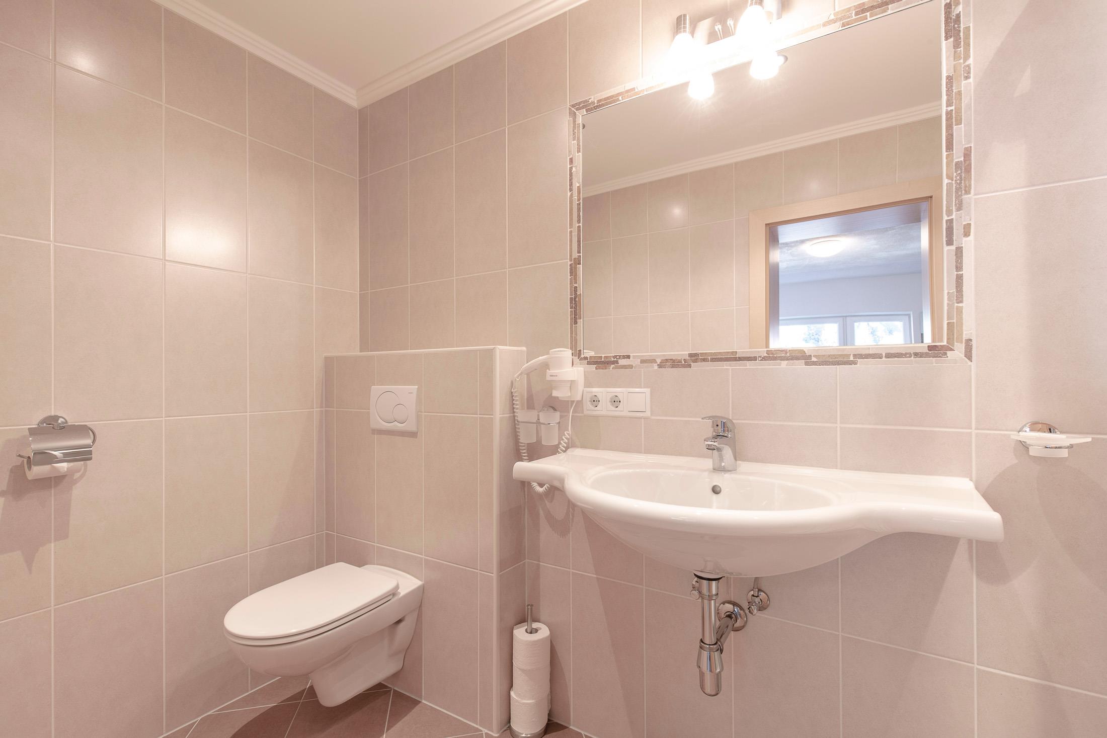 * Schlafzimmer mit Doppelbett (180x200 cm) und Badezimmer mit DU/WC, Haartrockner
