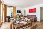 3-Zimmer-Wohnung 62 m2. Hell, geschmackvoll und gemütlich eingerichtet: 2 Doppelzimmer, jedes Zimmer mit Sat-TV und Flachbildschirm. Wohn-/Schlafzimmer mit 1 Doppeldiwanbett, Essecke, Sat-TV und Flachbildschirm. Gepäckraum. Offene Küche (Backofen, Geschirrspüler, 4 Glaskeramikplatten, Toaster, Wasserkocher, Mikrowelle, elektrische Kaffeemaschine, Kapseln für die Kaffeemaschine (Nespresso) extra). Bad/Bidet/WC, Dusche, sep. WC. Fussbodenheizung. Grosser Balkon. Balkonmöbel. Sicht auf die Berge. Zur Verfügung: Haartrockner. Internet (WLAN, gratis). Bitte beachten: Nichtraucher-Unterkunft. Maximal 1 Haustier/Hund erlaubt. Rauchmelder. Beim Mietobjekt handelt es sich um ein Typenhaus bzw. Um eine Typenwohnung. 50616-001123-2020