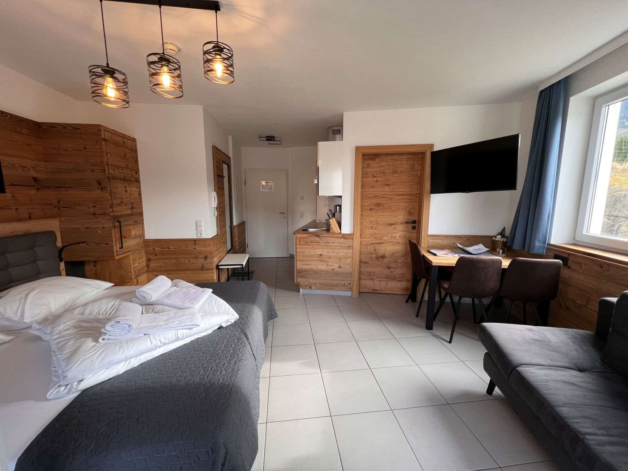 Rehkitz, 1-Zimmer-Studio 28 m2, im Erdgeschoss. Objekt geeignet für 2 Erwachsene + 1 Kind. Modern und geschmackvoll eingerichtet: Studio mit 1 Diwanbett, 1 Doppelbett, Esstisch, Kabel-TV und Flachbildschirm. Ausgang zur Terrasse. Kochnische (Backofen, Geschirrspüler, 4 Glaskeramikplatten, Toaster, Wasserkocher, elektrische Kaffeemaschine). Dusche/WC. Holzdielenboden, Natursteinboden. Terrasse 6 m2. Terrassenmöbel. Zur Verfügung: Internet (WLAN). Parkplatz beim Haus. Bitte beachten: Nichtraucher-Unterkunft. 50606-007660-2025