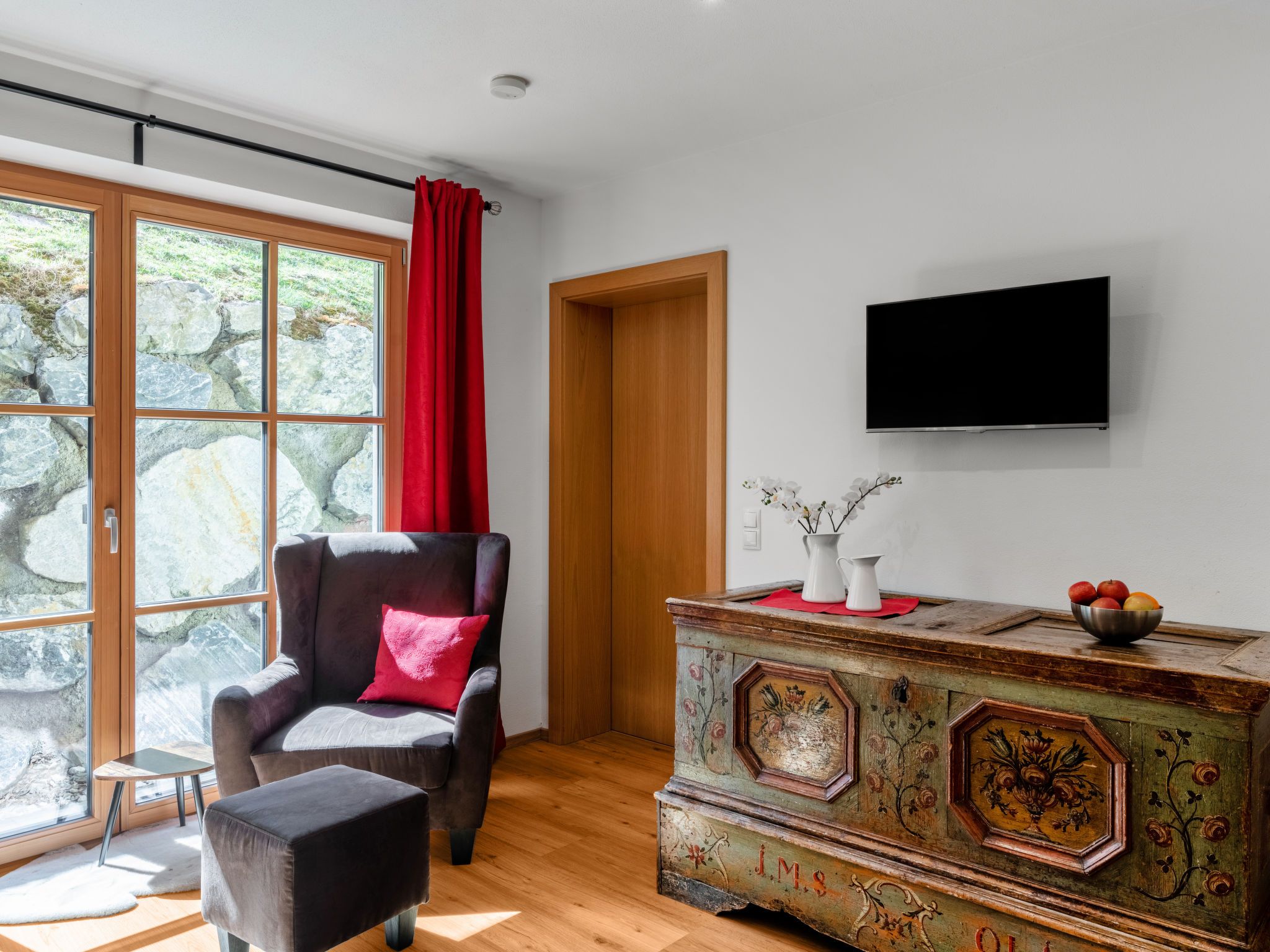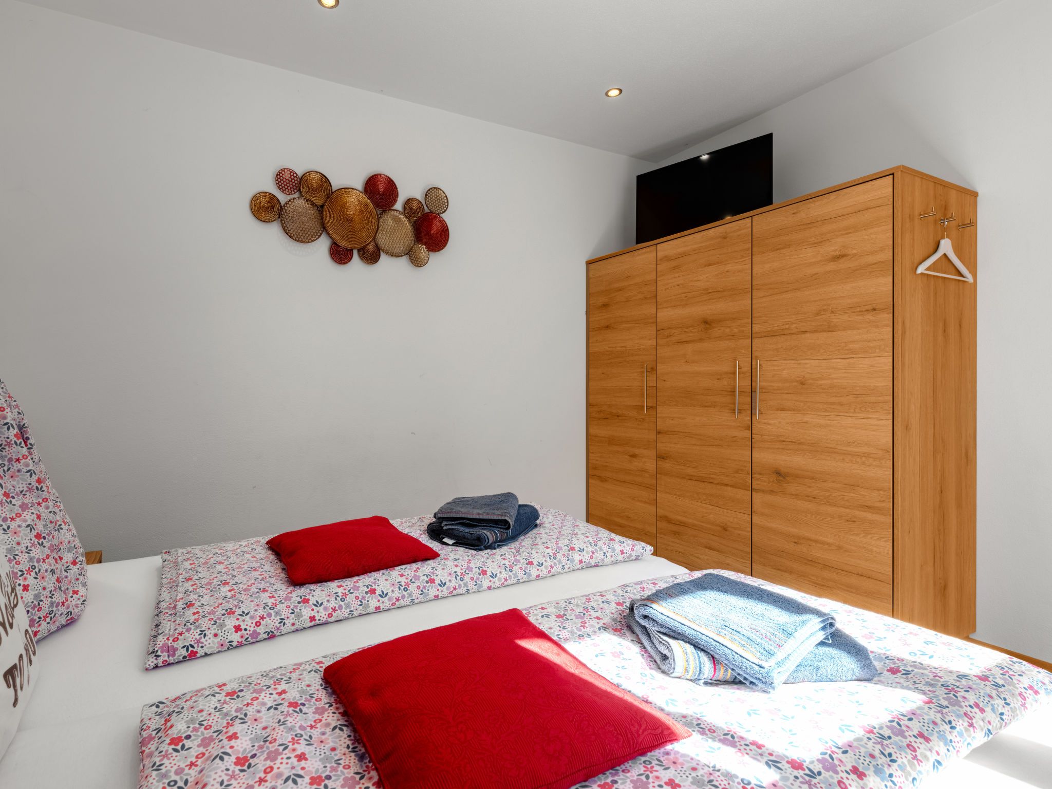 3-Zimmer-Wohnung 50 m2, im Erdgeschoss. Geräumig, geschmackvoll und gemütlich eingerichtet: 2 Doppelzimmer, jedes Zimmer mit Sat-TV (Flachbildschirm). Grosse Wohnküche (Backofen, Geschirrspüler, 2 Glaskeramikplatten, Mikrowelle, elektrische Kaffeemaschine, Kapseln für die Kaffeemaschine (Senseo)) mit Sat-TV (Flachbildschirm). Ausgang zur Terrasse. Dusche/WC, Doppelwaschbecken. Bodenheizung. Holzdielenboden. Terrassenmöbel. Sicht auf die Landschaft. Zur Verfügung: Kinderhochstuhl, Babybett bis 2 Jahre, Haartrockner. Internet (Wireless LAN, gratis). Bitte beachten: Nichtraucher-Unterkunft. Rauchmelder, kein Fahrstuhl. 50616-001214-2020