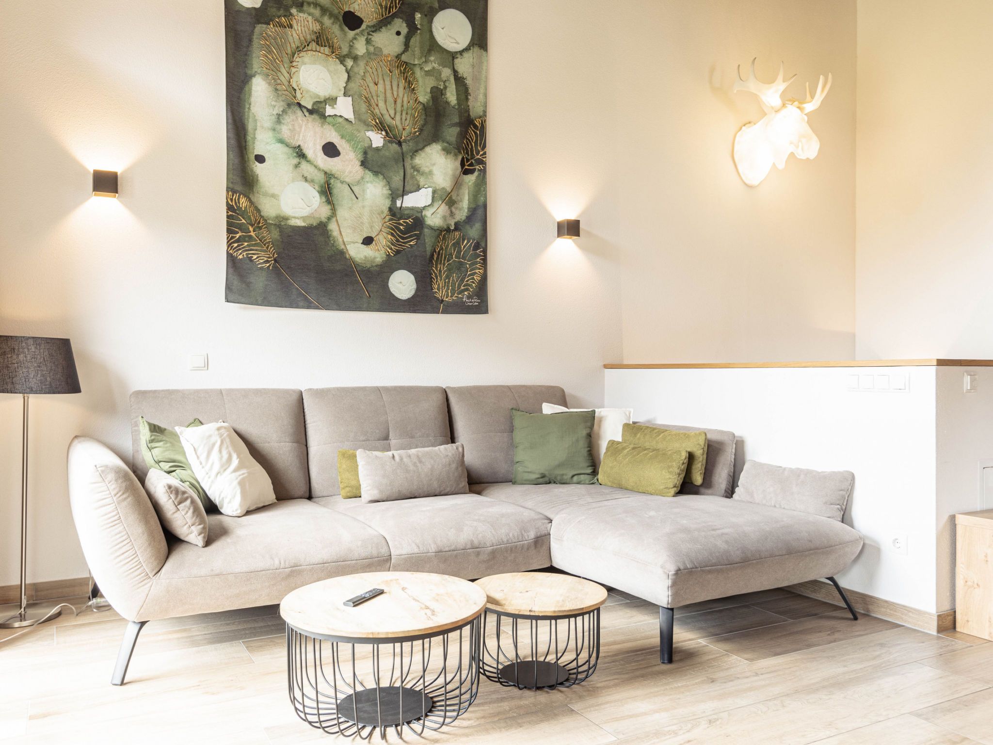 Superior 2B mit Sauna, 5-Zimmer-Wohnung 110 bis 120 m2. Hell, komfortabel und geschmackvoll eingerichtet: 3 Doppelzimmer. Wohn-/Schlafzimmer mit 1 Doppeldiwanbett, Esstisch, Sat-TV und Flachbildschirm. 1 Zimmer mit 2 x 2 Etagenbetten. Offene Küche (Backofen, Geschirrspüler, 4 Glaskeramikplatten, Toaster, Wasserkocher, Mikrowelle, Tiefkühler, elektrische Kaffeemaschine). 3 Duschen/WC. Balkon Terrasse. Terrassenmöbel. Schöne Sicht auf die Berge. Zur Verfügung: Sauna. Internet (Wireless LAN, gratis). Bitte beachten: Nichtraucher-Unterkunft. 50624-000648-2021