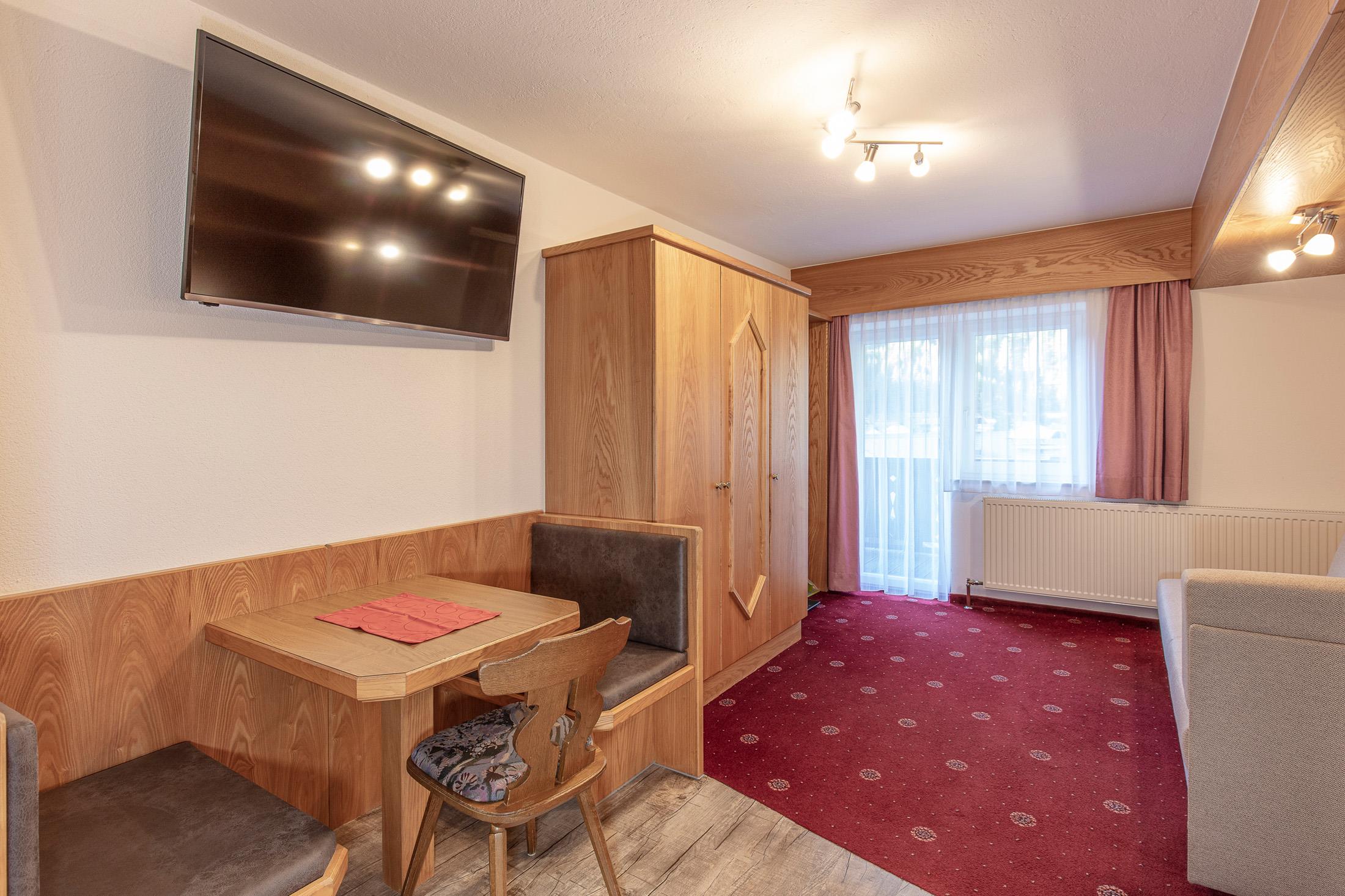 * Wohn-Schlafzimmer mit Doppelbett, gemütlicher Sitzecke, Flat-Sat-TV und Balkon
