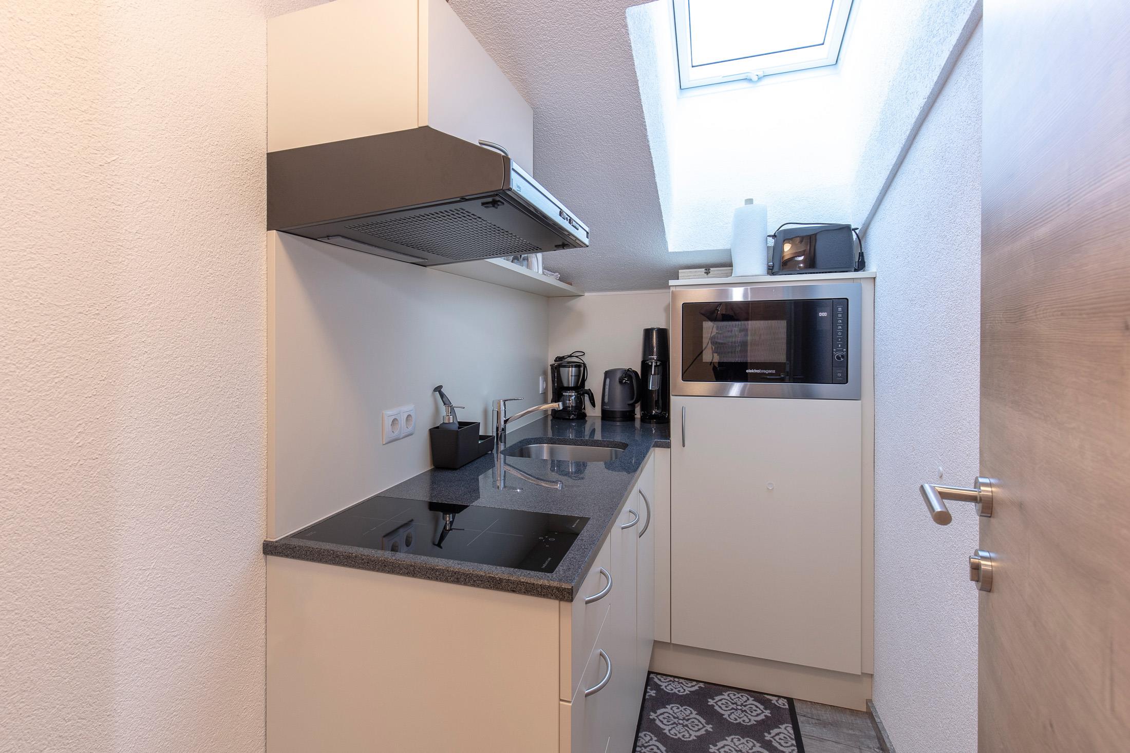 * separate Küche mit Induktionskochfeld, Kühlschrank, Mikrogrill, Geschirrspüler, Wasserkocher, Kaffeemaschine u.v.m.