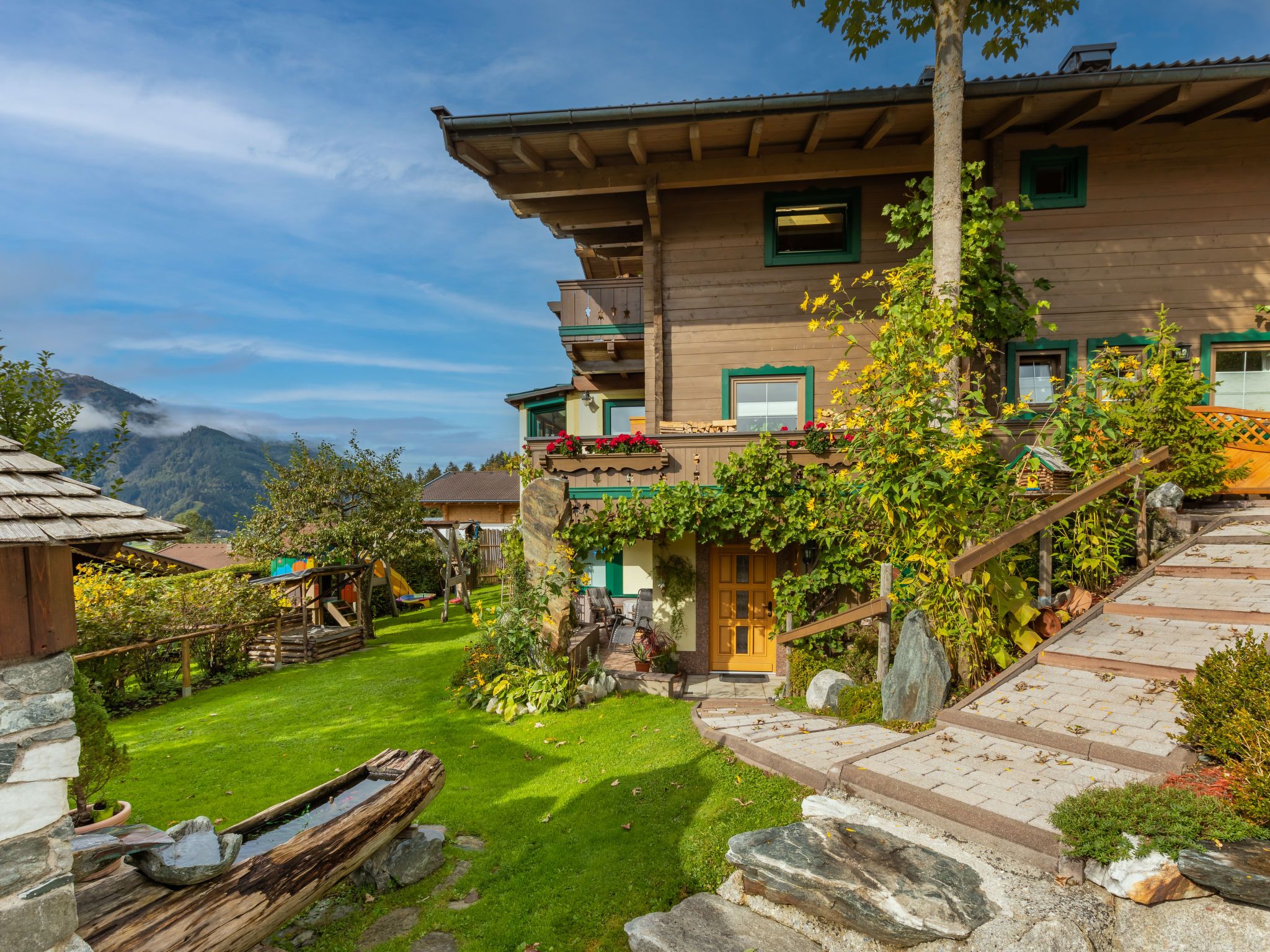 Rettenbach 3 km von Mittersill: Rustikales Einfamilienhaus Wieser, auf 2 Stockwerken, Baujahr 2000. Im Ortsteil Rettenbach, ruhige, sonnige Lage am Hang. Zur Mitbenutzung: grosser, gepflegter Garten (nicht eingezäunt). Terrasse, Kinderspielplatz (Rutschbahn, Schaukel, Sandkasten). Im Hause: Einstellraum für Fahrräder, Skiraum, Zentralheizung. Zufahrt bis zum Haus. Parkplatz beim Haus. Lebensmittelgeschäft 3 km, Restaurant 3.2 km, Café 3.2 km, Bushaltestelle 900 m, Freibad 3 km, Hallenbad 4 km. Golfplatz (18 Loch) 4.5 km, Skisportanlagen 4 km, Langlaufloipe 400 m. Bekannte Skigebiete sind gut erreichbar: Kitzbüheler Alpen, Zell am See - Kaprun, Wildkogel Bramberg. Wandergebiete: Hohe Tauern. Bitte beachten: Fahrzeug empfohlen. Der Besitzer wohnt im selben Haus. Zur Begrüßung gibt es pro Buchung ein Glas hauseigenen Honig.