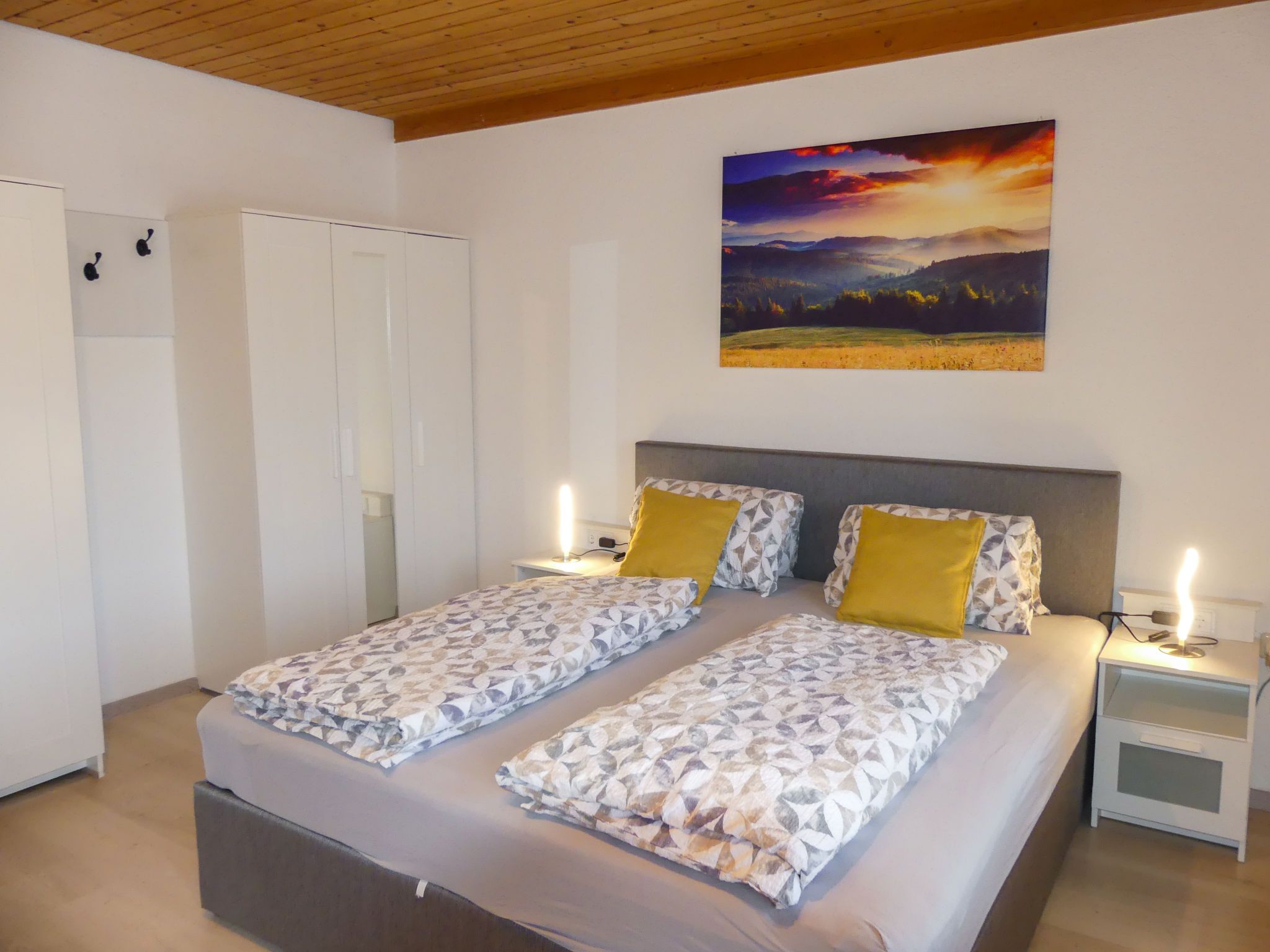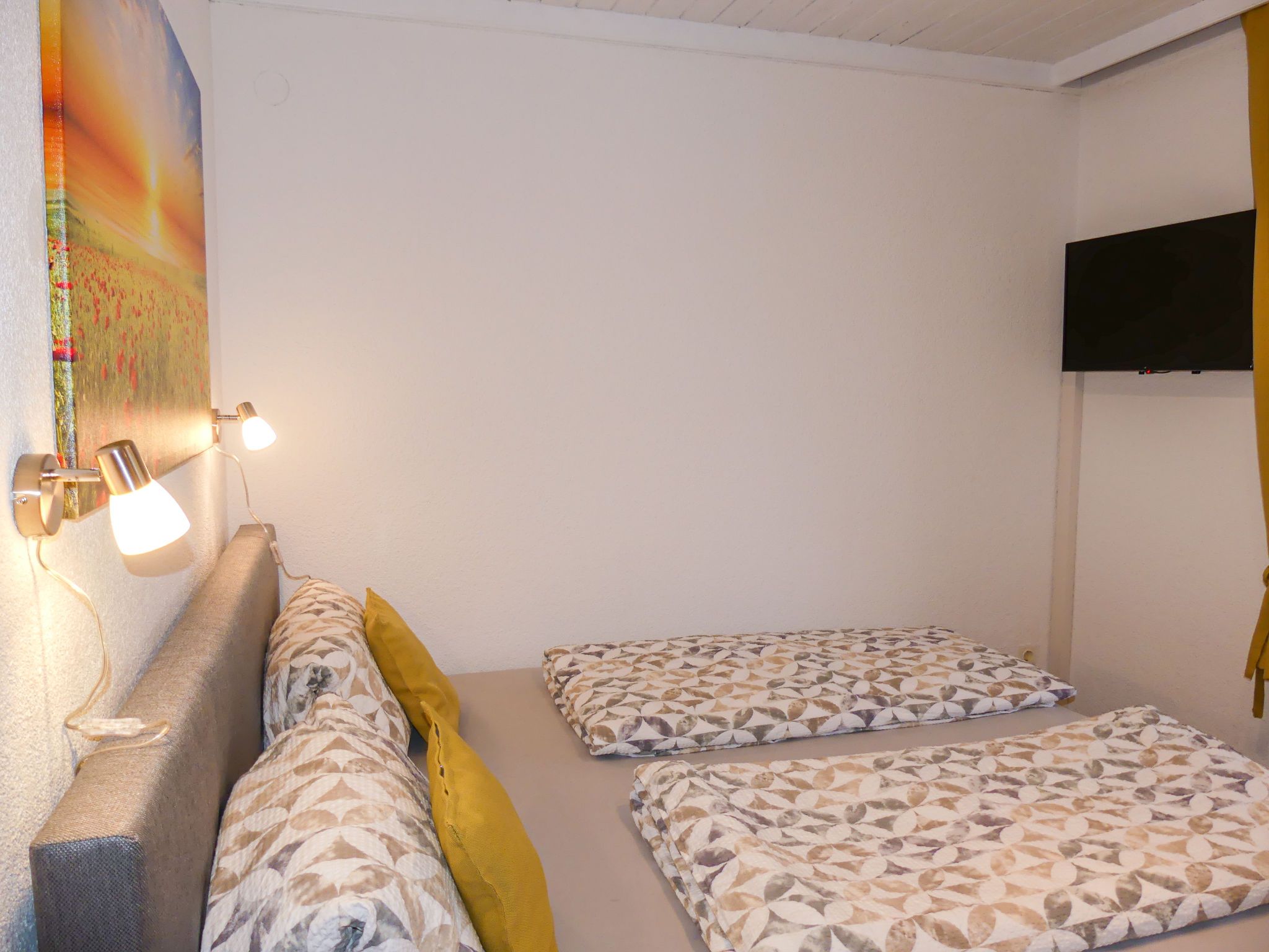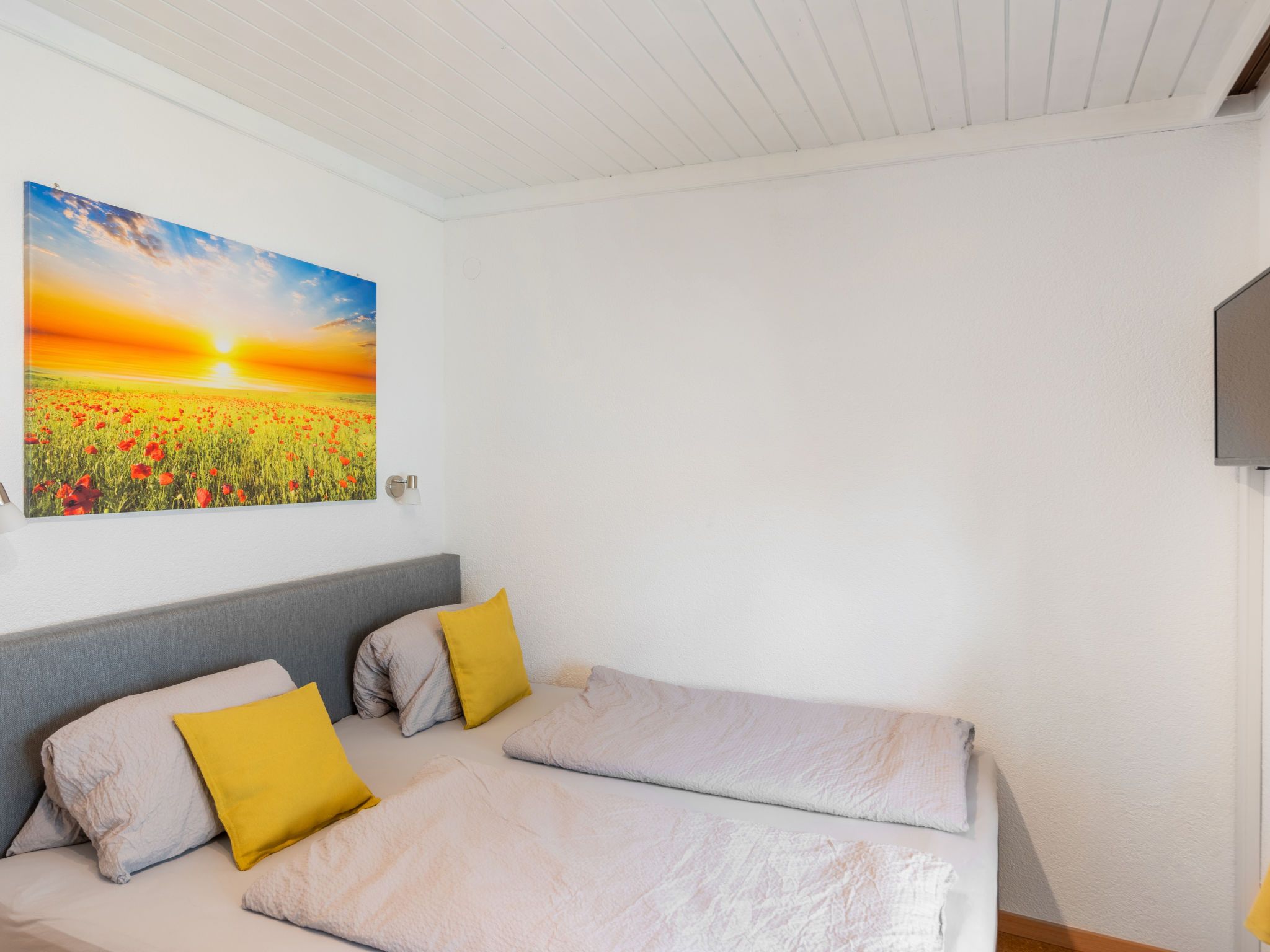 3-Zimmer-Haus 90 m2 auf 2 Stockwerken. Geräumig und hell, gemütlich eingerichtet: Eingang. Wohn-/Schlafzimmer mit 1 Doppeldiwanbett, Kabel-TV und Flachbildschirm. Küche (Backofen, Geschirrspüler, 4 Glaskeramikplatten, Toaster, Wasserkocher, Mikrowelle, Tiefkühler, elektrische Kaffeemaschine) mit Essecke. Bad, Dusche, sep. WC. Obergeschoss: 1 Doppelzimmer mit Sat-TV. 1 Zimmer mit 1 Bett und 1 Doppelbett. Sep. WC. Holzdielenboden. Balkon 4 m2, grosse Terrasse 25 m2. Terrassenmöbel. Schöne Sicht auf die Landschaft. Zur Verfügung: Safe, Babybett bis 2 Jahre, Haartrockner. Internet (WLAN, gratis). Bitte beachten: Nichtraucher-Unterkunft. Maximal 1 Haustier/Hund erlaubt. Rauchmelder, Feuerlöscher. 50619-006039-2021