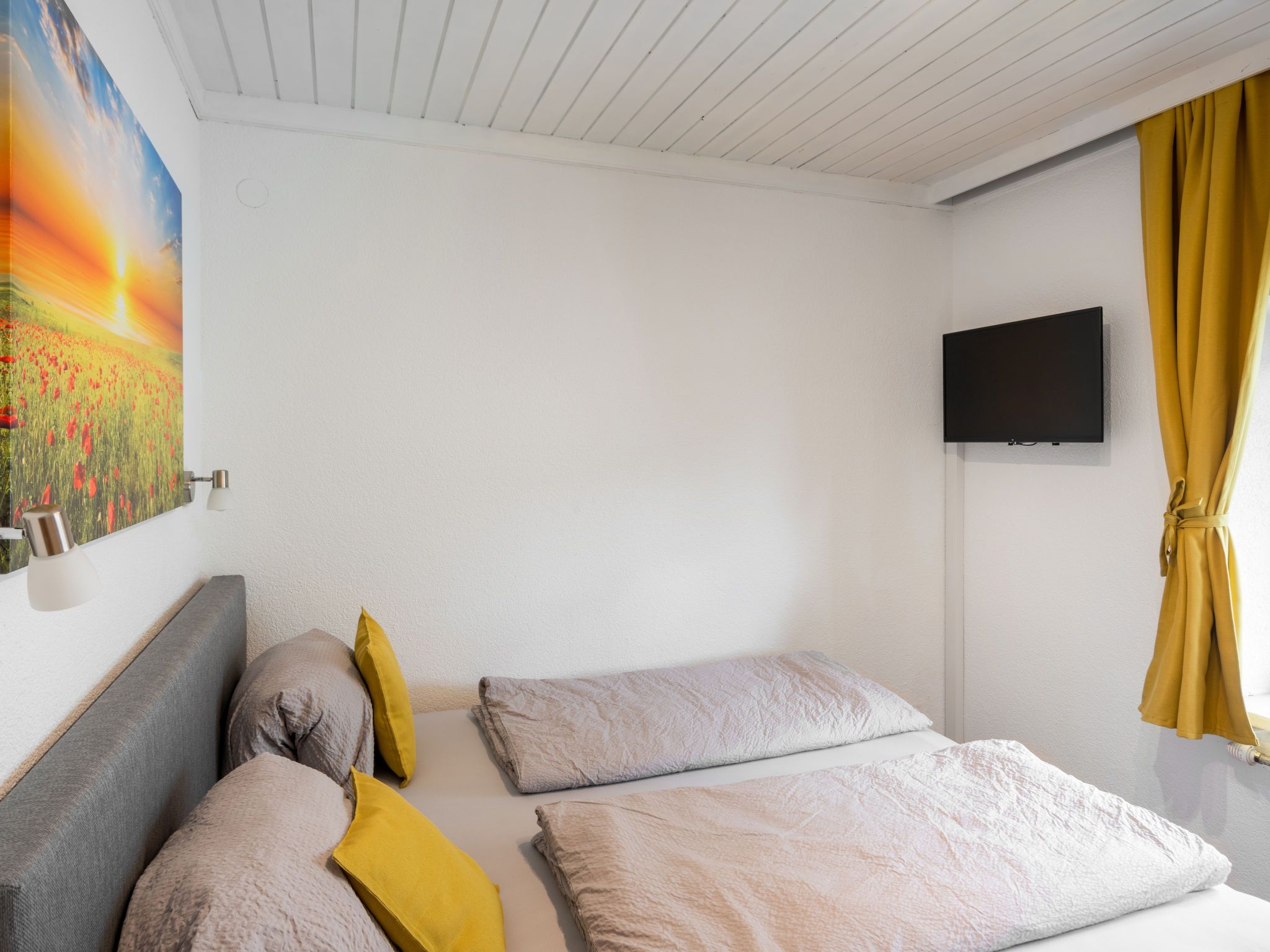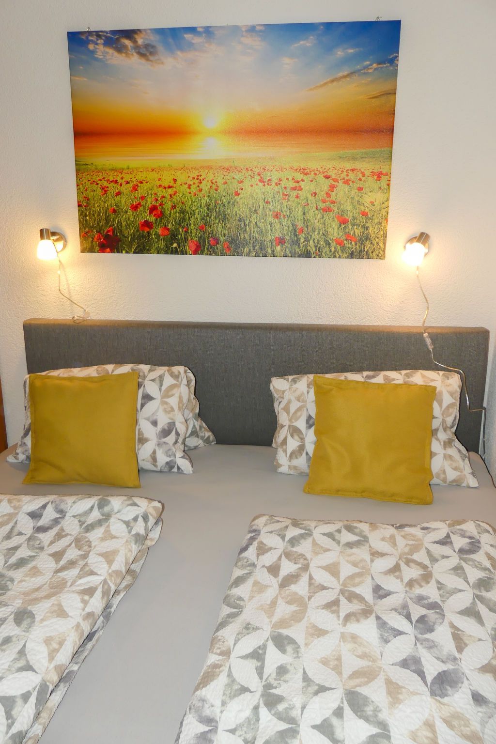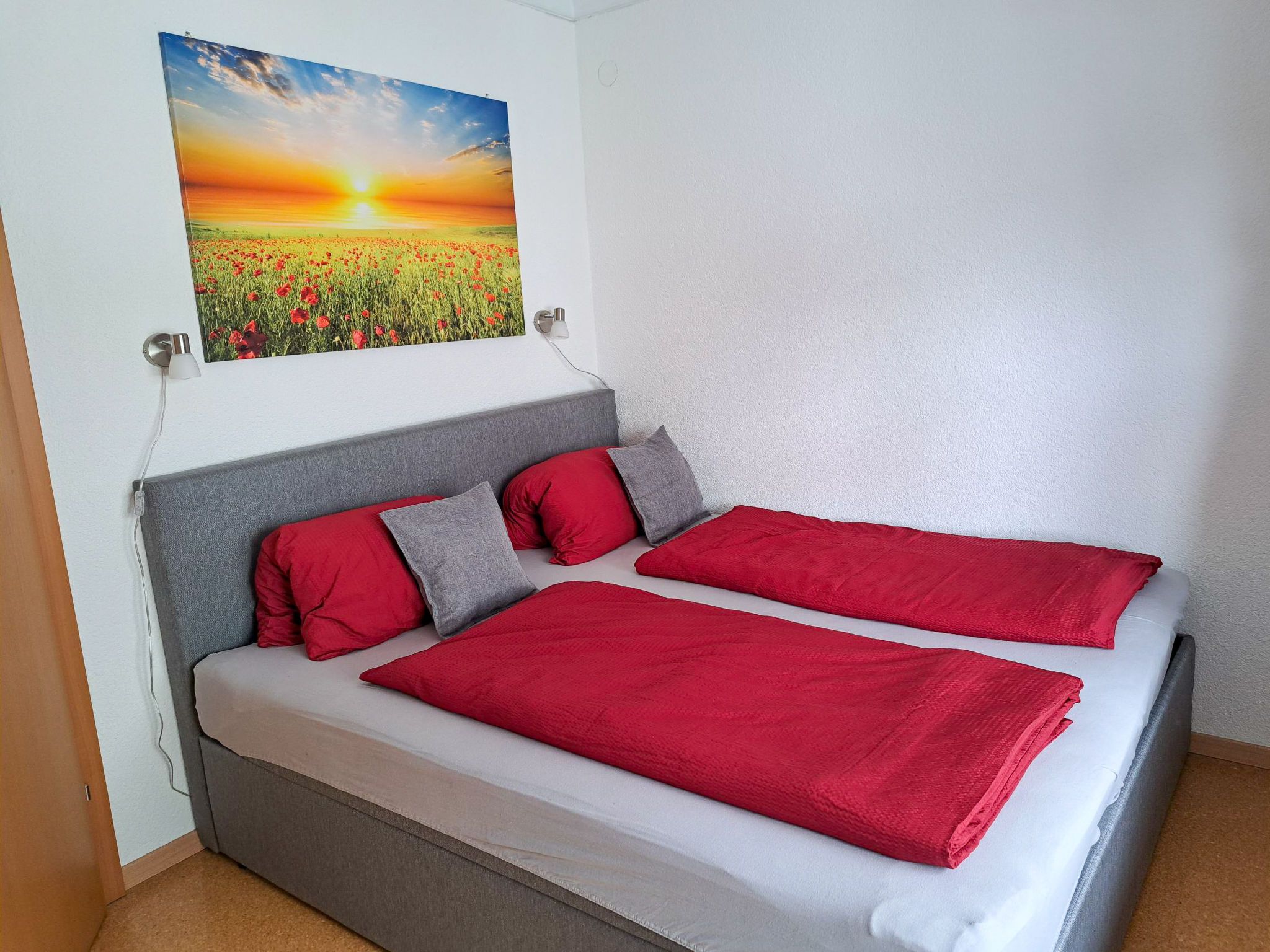 3-Zimmer-Haus 90 m2 auf 2 Stockwerken. Geräumig und hell, gemütlich eingerichtet: Eingang. Wohn-/Schlafzimmer mit 1 Doppeldiwanbett, Kabel-TV und Flachbildschirm. Küche (Backofen, Geschirrspüler, 4 Glaskeramikplatten, Toaster, Wasserkocher, Mikrowelle, Tiefkühler, elektrische Kaffeemaschine) mit Essecke. Bad, Dusche, sep. WC. Obergeschoss: 1 Doppelzimmer mit Sat-TV. 1 Zimmer mit 1 Bett und 1 Doppelbett. Sep. WC. Holzdielenboden. Balkon 4 m2, grosse Terrasse 25 m2. Terrassenmöbel. Schöne Sicht auf die Landschaft. Zur Verfügung: Safe, Babybett bis 2 Jahre, Haartrockner. Internet (WLAN, gratis). Bitte beachten: Nichtraucher-Unterkunft. Maximal 1 Haustier/Hund erlaubt. Rauchmelder, Feuerlöscher. 50619-006039-2021