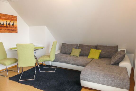 Anneliese, 2-Zimmer-Wohnung 57 m2 im 2. Stock. Hell, teilweise abgeschrägt, einfach und modern eingerichtet: Eingang. Wohn-/Schlafzimmer mit 1 Doppeldiwanbett, Kabel-TV, Internationale TV-Sender und Flachbildschirm. Ausgang zur Terrasse. 1 offenes Doppelzimmer. Offene Küche (Backofen, 4 Glaskeramikplatten, Toaster, Wasserkocher, Mikrowelle, elektrische Kaffeemaschine, Kapseln für die Kaffeemaschine (Tassimo)) mit Esstisch. Dusche/WC. Parkettboden, Natursteinboden. Terrasse 10 m2. Terrassenmöbel. Seitliche Panoramasicht auf die Berge. Zur Verfügung: Internet (WLAN, gratis). Bitte beachten: geeignet für Familien. Nichtraucher-Unterkunft. 50619-006040-2021