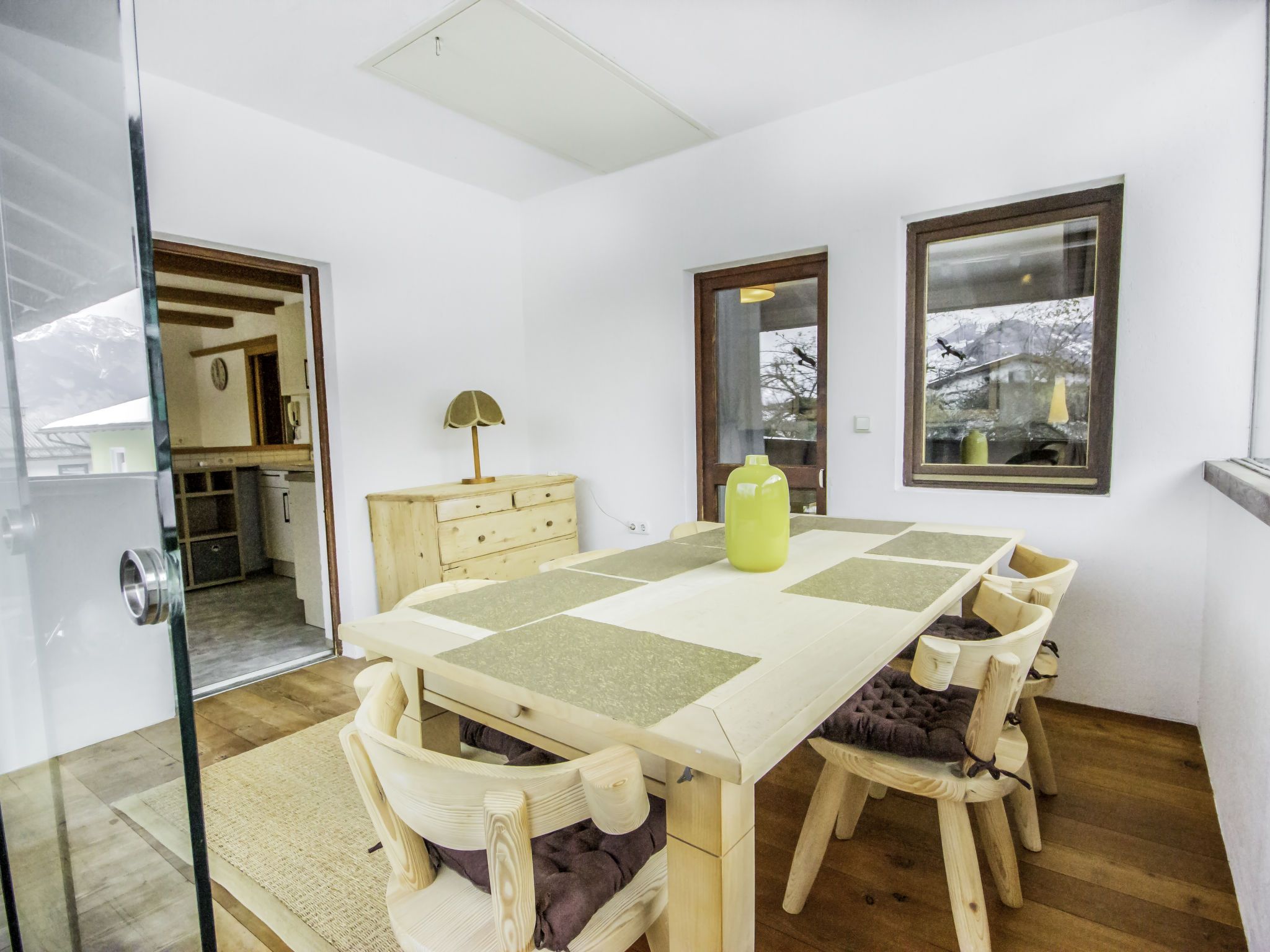 Zirben Appartement Karin, 4-Zimmer-Wohnung 100 m2 im 1. Stock. Objekt geeignet für 7 Erwachsene. Hell, vollständig renoviert im Jahre 2019, geschmackvoll eingerichtet: Eingang. Wohn-/Schlafzimmer mit 2 Diwanbetten und Sat-TV (Flachbildschirm). Ausgang zum Balkon. 2 Doppelzimmer. Abgeschrägtes Durchgangszimmer mit 1 Bett (90 cm, Länge 200 cm). Küche (Backofen, Geschirrspüler, 4 Glaskeramikplatten, Mikrowelle, elektrische Kaffeemaschine). Ausgang zum Balkon. Bad/Dusche, Bidet, sep. WC. Unteres Geschoss: Dusche/WC. Holzdielenboden. Grosser Balkon, Westlage und Südlage, kleiner Balkon und Ostlage. Balkonmöbel. Sicht auf die Berge und die Landschaft. Zur Verfügung: Sauna (extra). Internet (WLAN, gratis). Bitte beachten: geeignet für Familien. Nichtraucher-Unterkunft. Maximal 2 Haustiere/Hunde erlaubt. Rauchmelder, Feuerlöscher, kein Fahrstuhl. Die Möbel sind aus unbehandeltem Zirbenvollholz, die Böden aus Holzdielen. Der große Balkon ist großteils verglast, wird aber im Winter nicht beheizt. Im Erdgeschoß kann ein 22qm Doppelzimmer mit DU/WC und Gartenanteil dazu gebucht werden (AT6094.261.3). Buchungen sind nur zu touristischen Zwecken erlaubt.