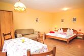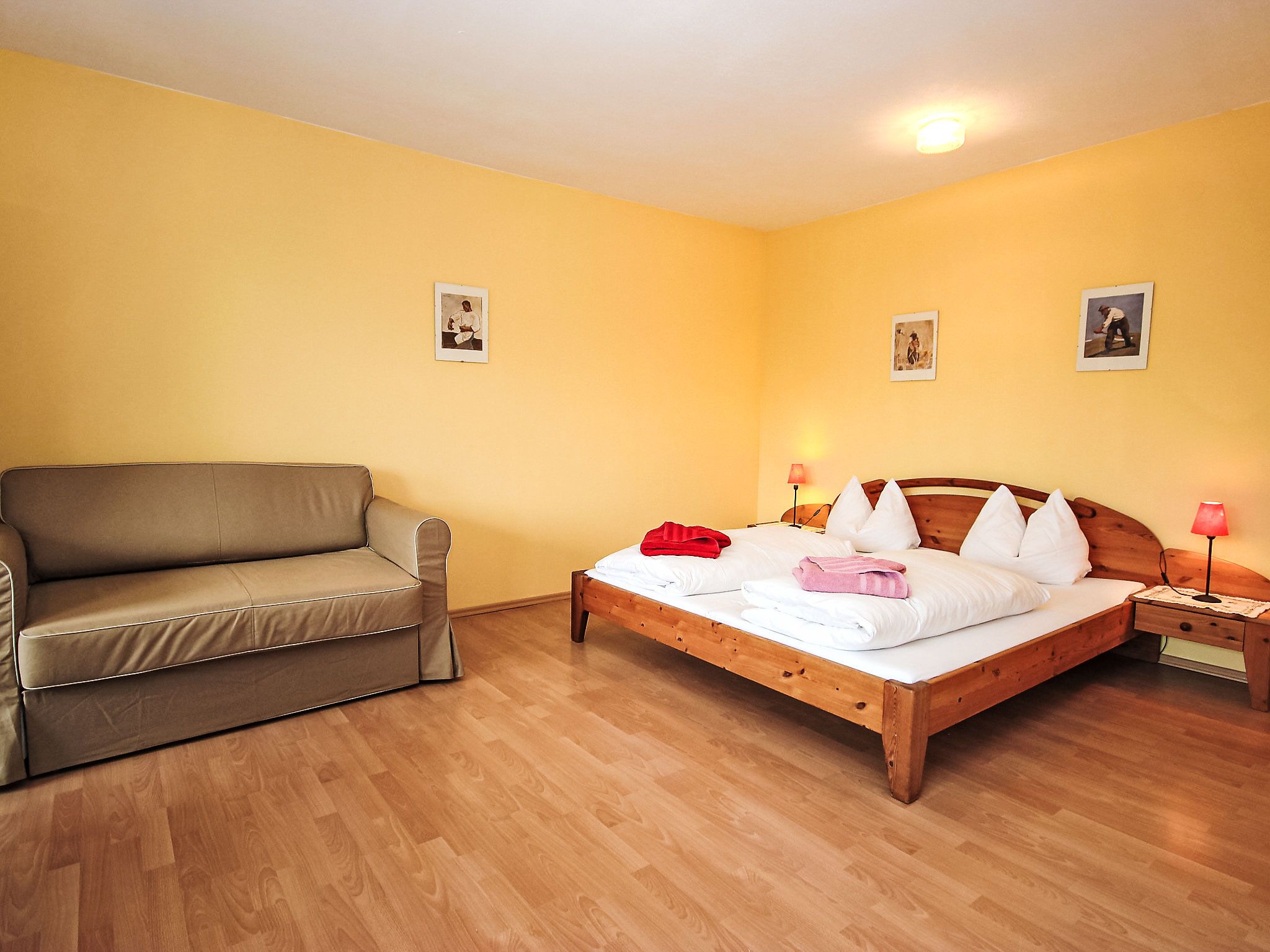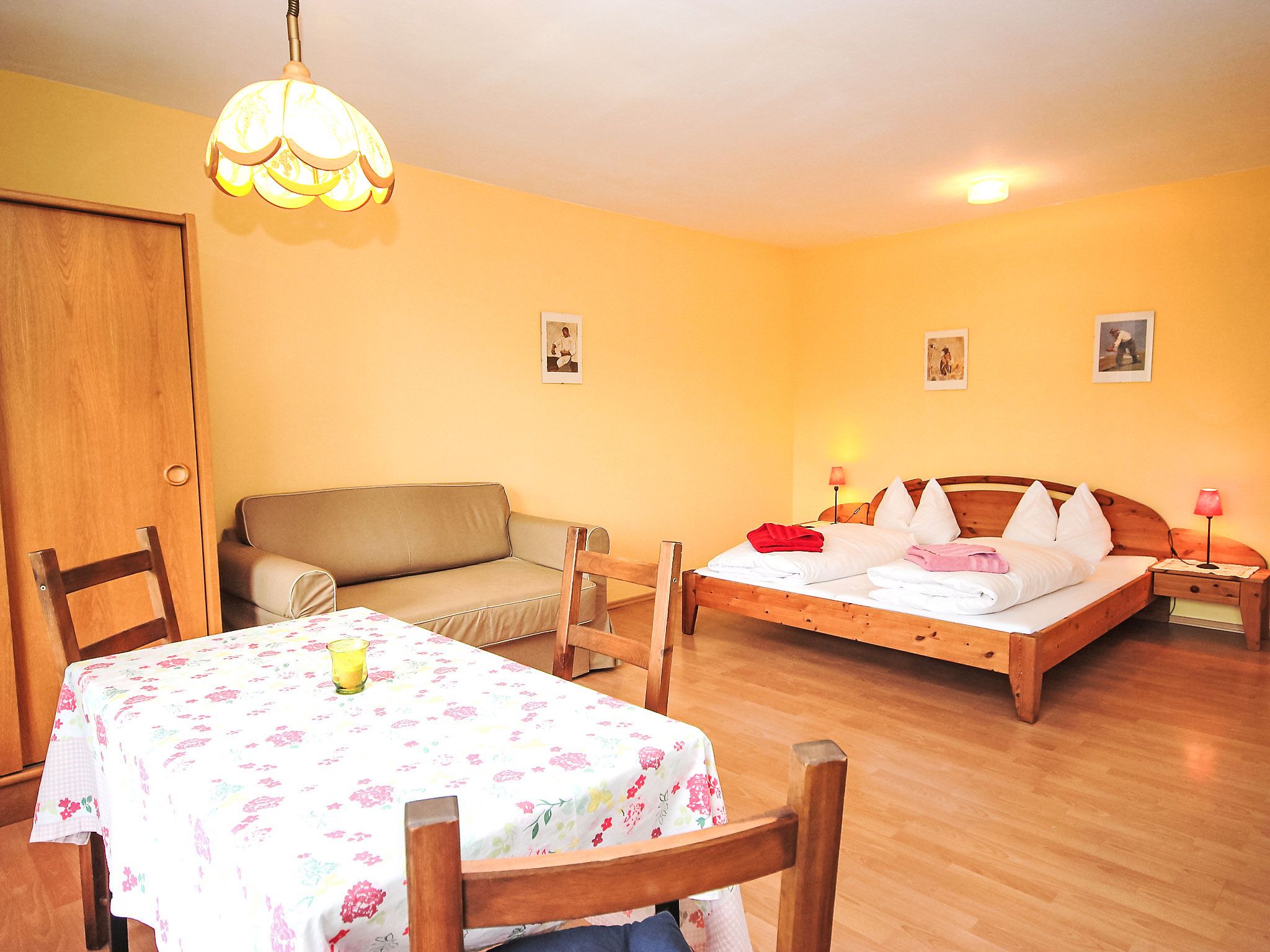 1-Zimmer-Wohnung 37 m2 im 1. Stock. Renoviert im Jahre 2017, schön und gemütlich eingerichtet: Eingang. Grosses Wohn-/Schlafzimmer mit 1 Doppeldiwanbett, 1 Doppelbett, Esstisch und Kabel-TV (Flachbildschirm). Kochnische (Backofen, Geschirrspüler, 4 Glaskeramikplatten, Mikrowelle). Dusche/WC. Grosser Balkon. Balkonmöbel. Zur Verfügung: Babybett, Haartrockner. Internet (Wireless LAN, gratis). Bitte beachten: Nichtraucher-Unterkunft. Maximal 1 Haustier/Hund erlaubt. Maximal 1 Haustier/Hund erlaubt (50 Euro).