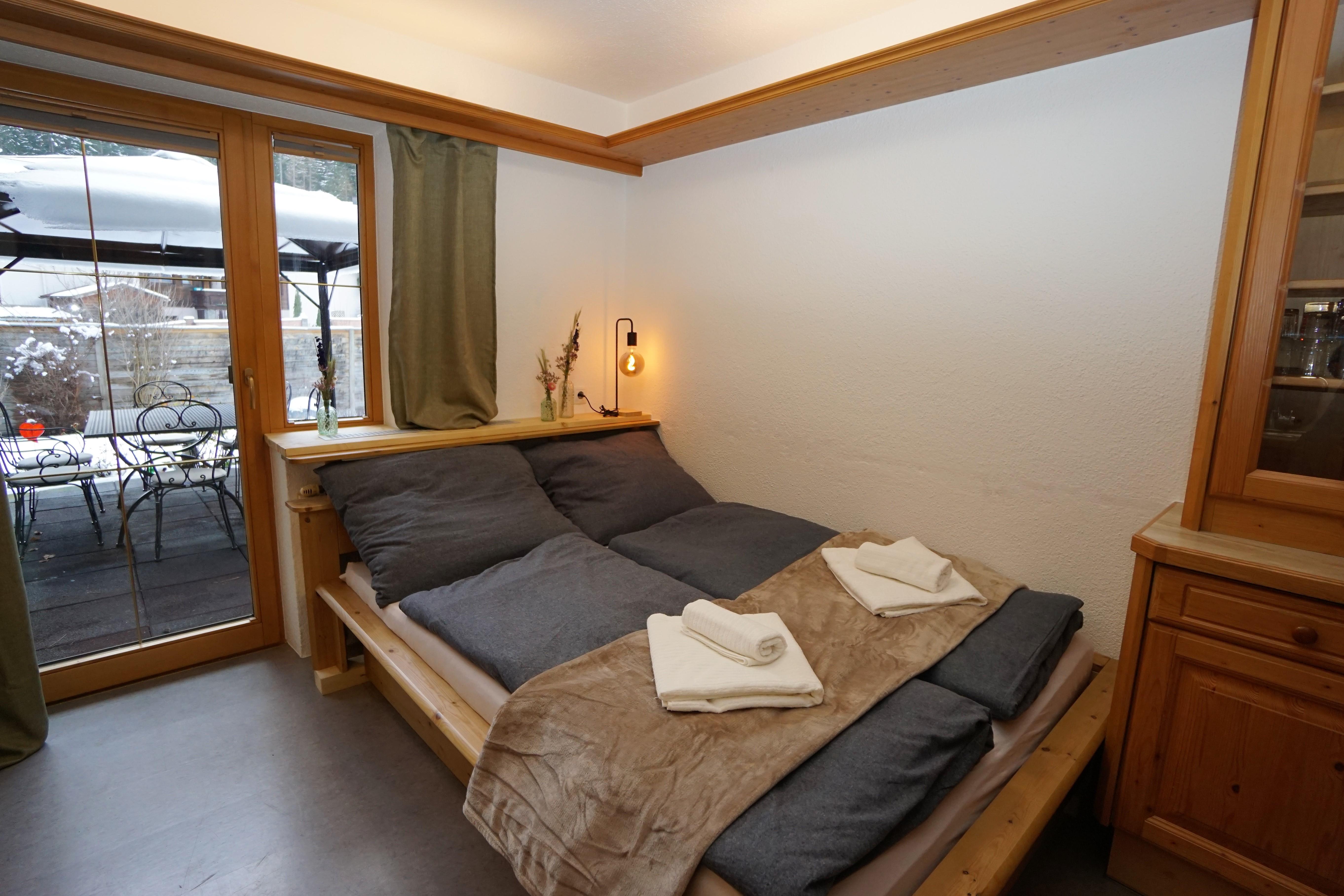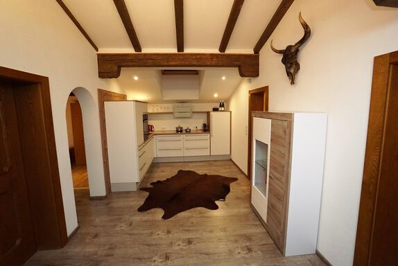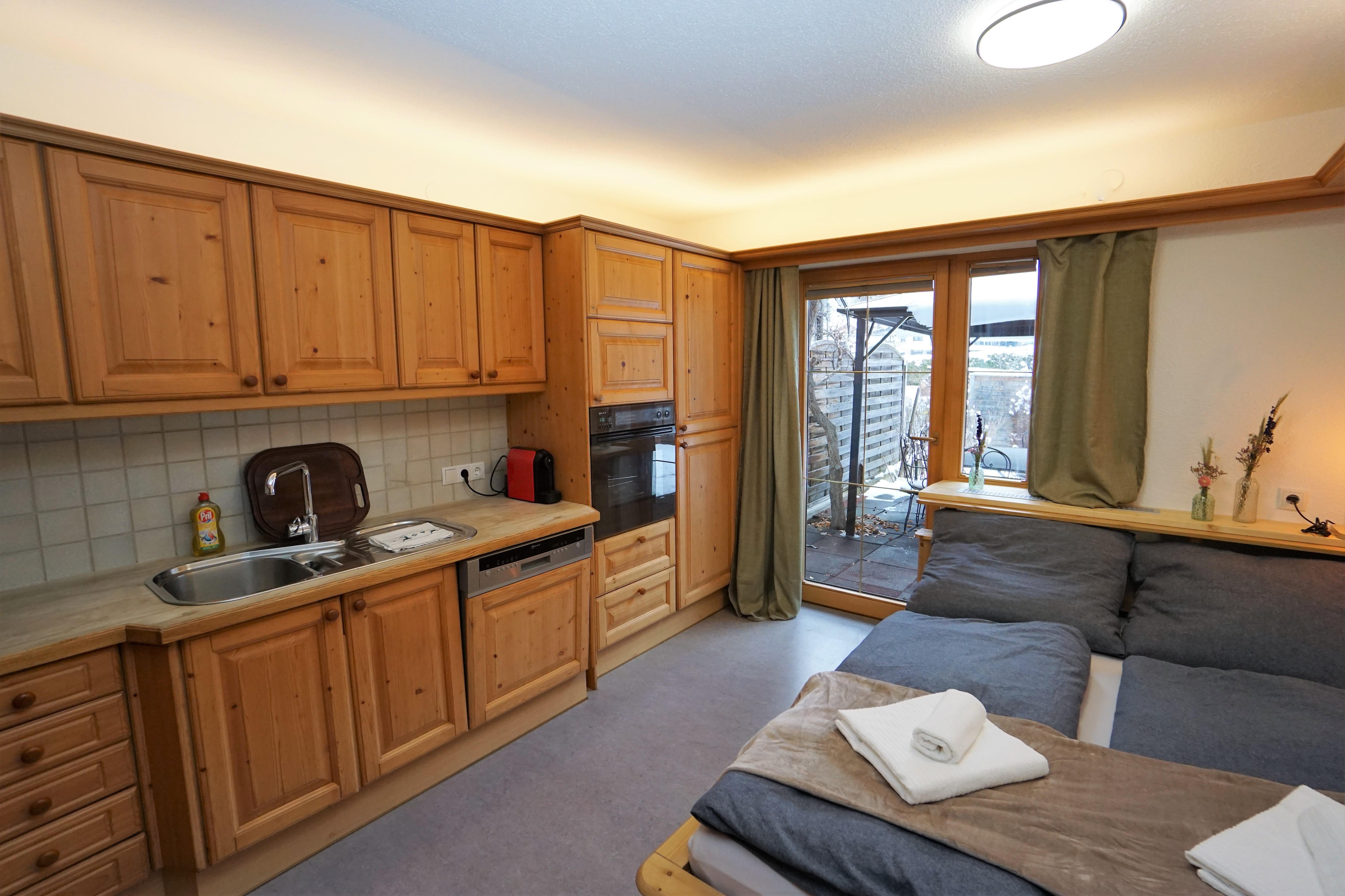 Top Balkon (ca. 75m²) besteht aus 3 Doppelzimmern - Babybett auf Anfrage möglich, einer vollausgestatteten Wohnküche (Cerankochfeld, Backrohr, Kühlschrank, Kaffee Kapselmaschine, Wasserkocher uvm.), einem Badezimmer mit Dusche und Badewanne, einem separatem WC. Genießen Sie das unvergessliche Bergpanorama auf dem möblierten Balkon.