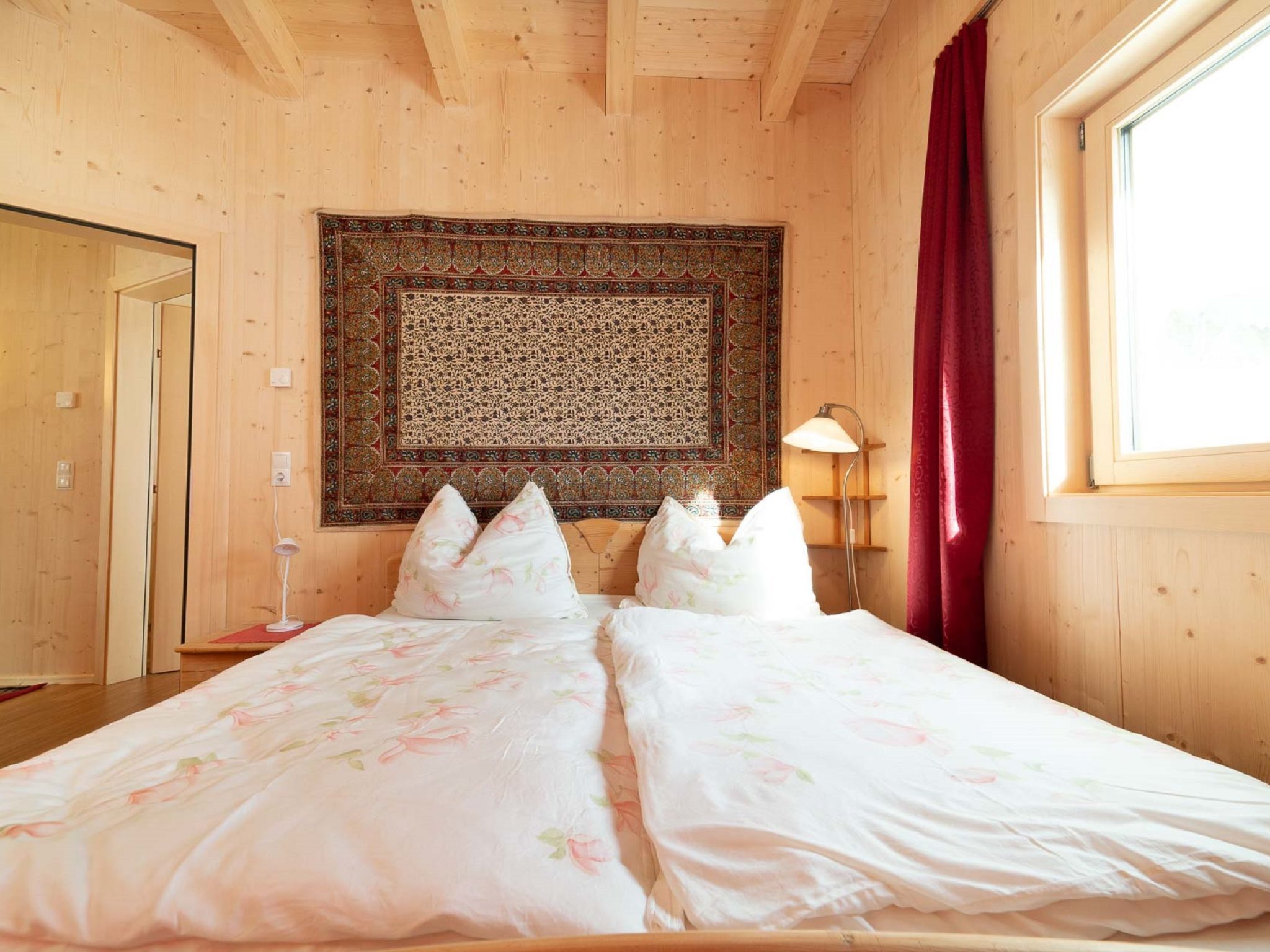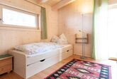 3-Zimmer-Chalet 65 m2, im erhöhten Erdgeschoss. Gemütlich und mit viel Holz eingerichtet: 1 Doppelzimmer. 1 Zimmer mit 2 Betten und 2 Ausziehbetten (Länge 190 cm). Wohnzimmer mit 1 Doppeldiwanbett, Schwedenofen, Esstisch und Flachbildschirm. Ausgang zur Terrasse. Offene Küche (4 Kochplatten, Backofen, Geschirrspüler). Dusche/WC. Grosse Terrasse 20 m2, überdacht, Südlage und Westlage. Terrassenmöbel. Herrliche Sicht auf die Landschaft. Zur Verfügung: Kinderhochstuhl, Babybett, Haartrockner. Internet (Wireless LAN). Bitte beachten: Nichtraucher-Haus. Rauchmelder. Die Infrarotheizung und der Schwedenofen sorgen für gemütliche Wärme. Gasherd in der Küche.