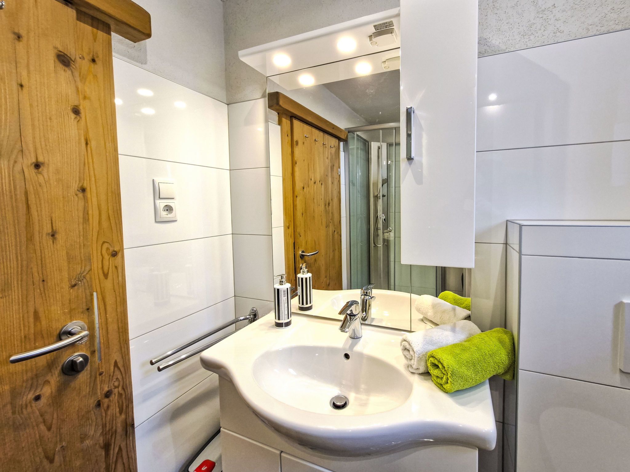 Wiesenhof, 2-Zimmer-Wohnung 45 m2, im Obergeschoss. Komfortabel und gemütlich eingerichtet: Eingang. 1 Doppelzimmer mit begehbarem Kleiderschrank. 1 Zimmer mit 2 Betten. Kleine Küche (Backofen, Geschirrspüler, 2 Glaskeramikplatten, Wasserkocher, Mikrowelle, elektrische Kaffeemaschine) mit Essecke und Sat-TV (Flachbildschirm). Ausgang zum Balkon. Dusche/WC. Heizung. Holzdielenboden. Kleiner Balkon. Balkonmöbel. Schöne Sicht auf die Berge. Zur Verfügung: Waschmaschine. Internet (Wireless LAN, gratis). Bitte beachten: geeignet für Familien. Nichtraucher-Unterkunft.
