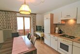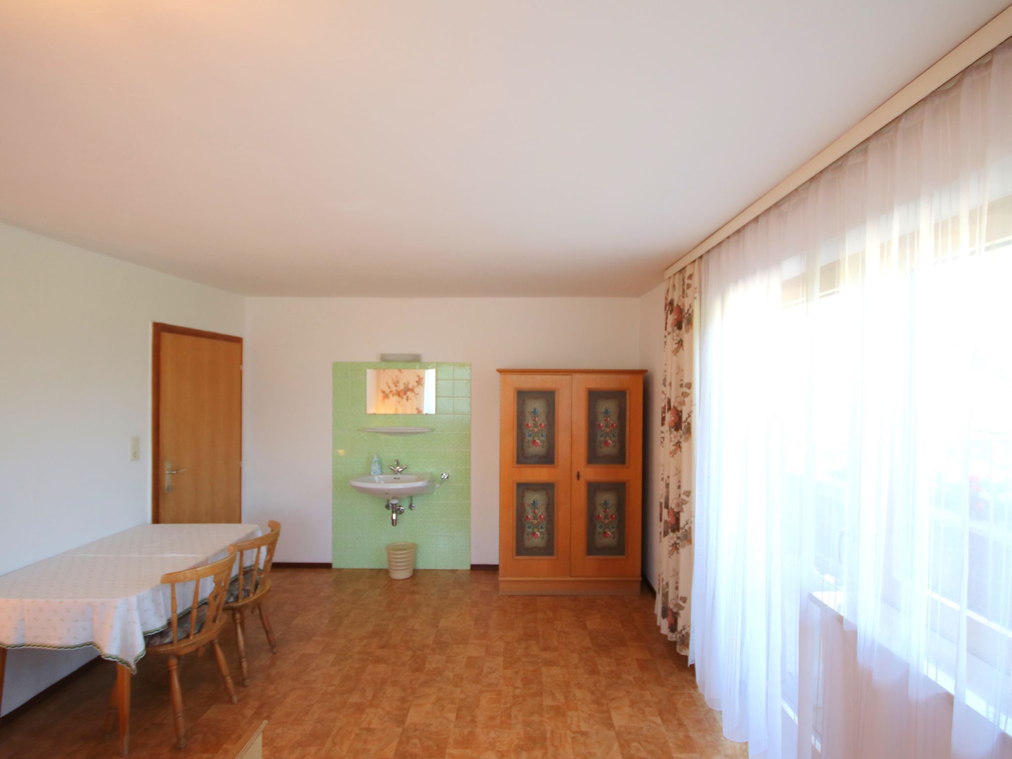 3-Zimmer-Wohnung 80 m2 im 1. Stock. Eingang. 1 Zimmer mit 1 Bett, 1 Doppelbett und Waschbecken. Ausgang zum Balkon. 1 Zimmer mit 1 Diwanbett, 1 Doppelbett und Waschbecken. Ausgang zum Balkon. Wohnküche (4 Kochplatten, Backofen, Toaster, Wasserkocher, elektrische Kaffeemaschine) mit Esstisch, TV. Bad/Dusche, sep. WC. Balkon. Terrassenmöbel. Sehr schöne Sicht auf die Landschaft. Zur Verfügung: Waschmaschine. Internet (Wireless LAN, gratis). Die Eingangstüre zum Appartement ist eine Falttüre, die sich nicht versperren läßt.
