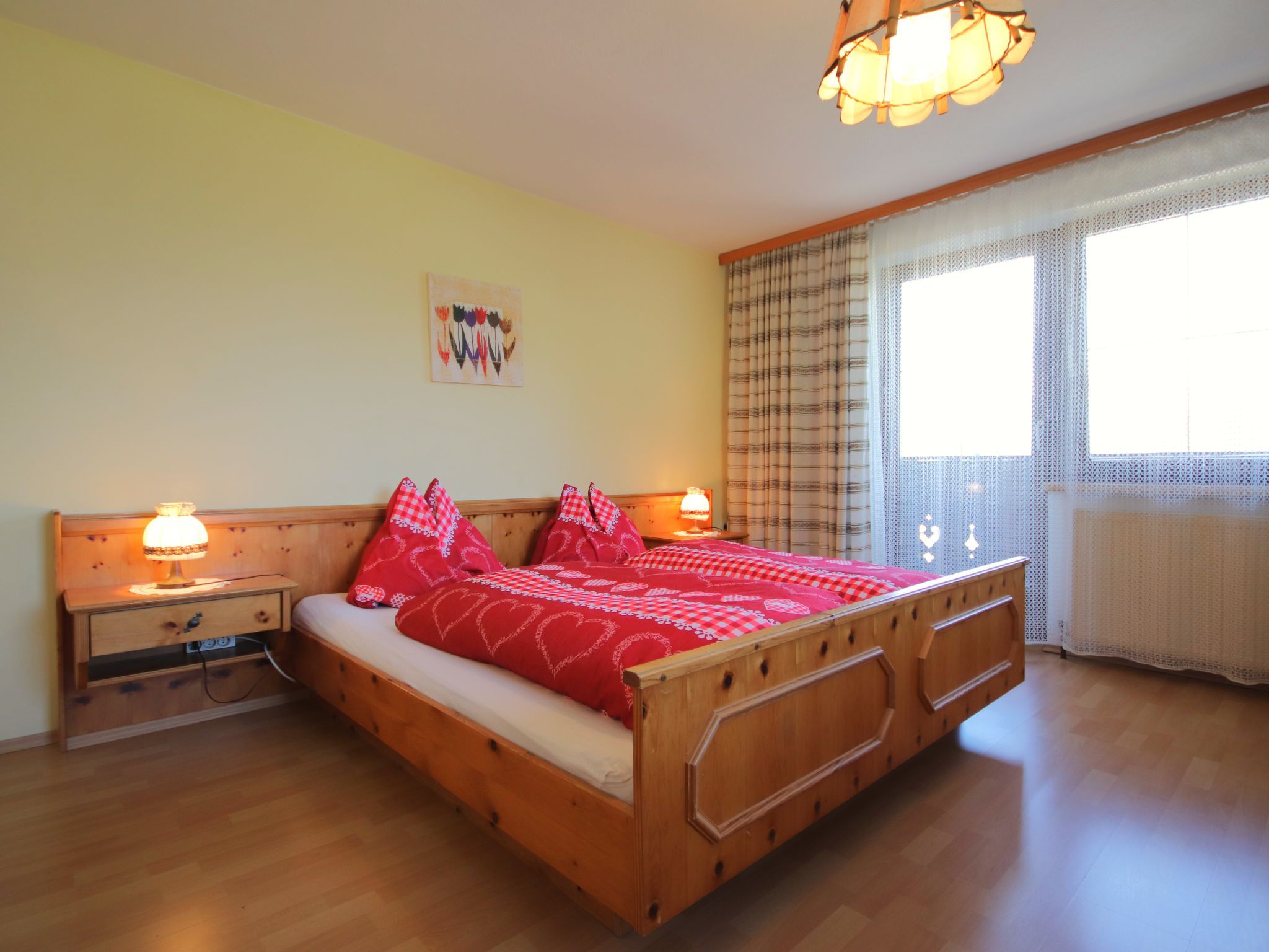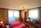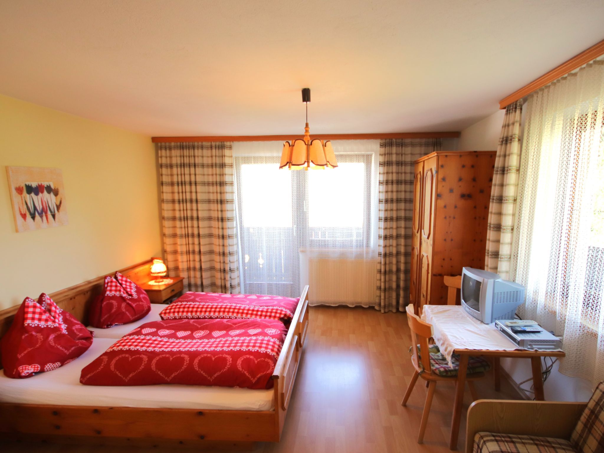 3-Zimmer-Wohnung 80 m2 im 1. Stock. Objekt geeignet für 5 Erwachsene. Geräumig, mit viel Holz eingerichtet: Eingang. 1 Zimmer mit 1 Bett, 1 Doppelbett, Dusche/WC und Sat-TV. Ausgang zum Balkon. 1 Doppelzimmer mit Dusche/WC. Ausgang zum Balkon. Wohnküche (Backofen, Geschirrspüler, 4 Glaskeramikplatten, Mikrowelle, Tiefkühler) mit Esstisch und Sat-TV (Flachbildschirm). Ausgang zum Balkon. Dusche/WC. (unteres Geschoss: Toaster, Wasserkocher, elektrische Kaffeemaschine). Balkon 12 m2. Sehr schöne Panoramasicht auf die Berge und das Tal. Zur Verfügung: Internet (Wireless LAN, gratis). Bitte beachten: geeignet für Familien. Nichtraucher-Unterkunft. Kein Fahrstuhl.