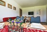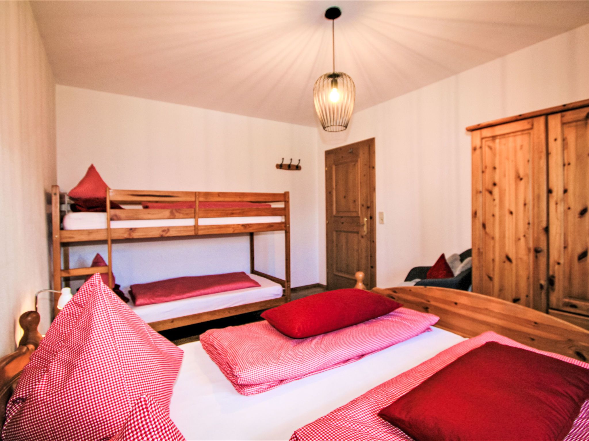 Christine, 3-Zimmer-Wohnung 78 m2 im 1. Stock. Objekt geeignet für 6 Erwachsene. Geräumig und hell: Eingang. 1 Doppelzimmer. Ausgang zum Balkon. 1 Zimmer mit 1 x 2 Etagenbetten (90 cm, Länge 200 cm), 1 Doppelbett. Wohn-/Esszimmer mit Esstisch und Sat-TV (Flachbildschirm). Offene Küche (Backofen, Geschirrspüler, 4 Glaskeramikplatten, Mikrowelle). Dusche/WC. Grosser Balkon 7 m2, Westlage, Gartensitzplatz. Gartengrill. Sehr schöne Panoramasicht auf die Berge und die Landschaft. Zur Verfügung: Kinderhochstuhl, Babybett bis 2 Jahre. Internet (WLAN, gratis). Parkplatz (3 Autos). Bitte beachten: geeignet für Familien. Nichtraucher-Unterkunft. Kein Fahrstuhl.