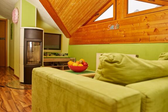 Appartement Olivia, 3-Zimmer-Wohnung 70 m2. Gemütlich eingerichtet: abgeschrägtes Wohnzimmer mit Sat-TV und Flachbildschirm. 2 abgeschrägte Doppelzimmer. Gepäckraum. Küche (Geschirrspüler, 3 Induktionskochplatten, Mikrowelle, Tiefkühler, elektrische Kaffeemaschine) mit Esstisch. Dusche/WC. Gartensitzplatz. Terrassenmöbel. Zur Verfügung: Waschmaschine. Internet (Wireless LAN, gratis). Bitte beachten: Nichtraucher-Haus. Rauchmelder. Die Benutzung des Schwedenofens ist NICHT GESTATTET!! Für Gruppen kann AT6167.410.3 und AT6167.410.1 zusammen gebucht werden!