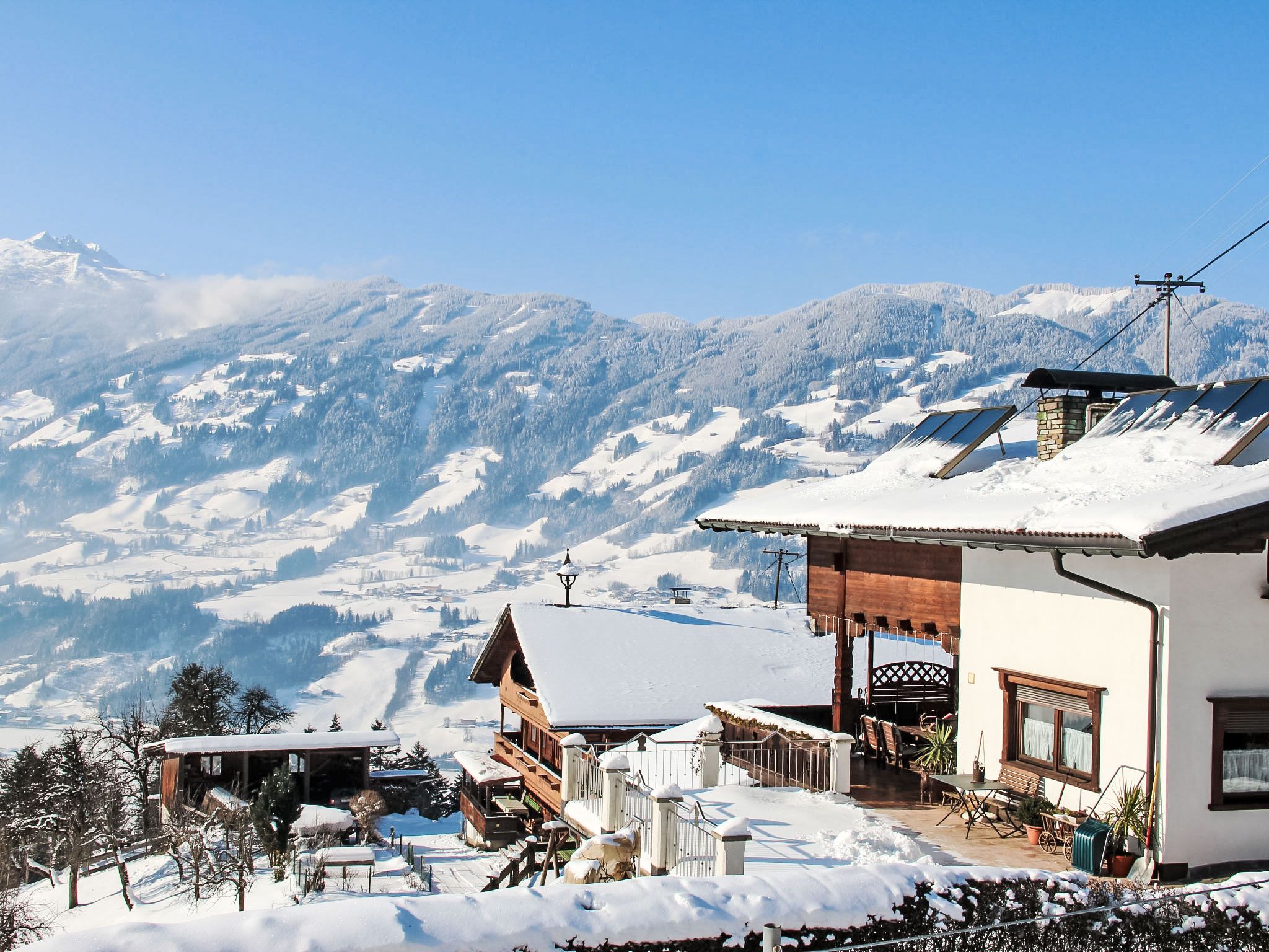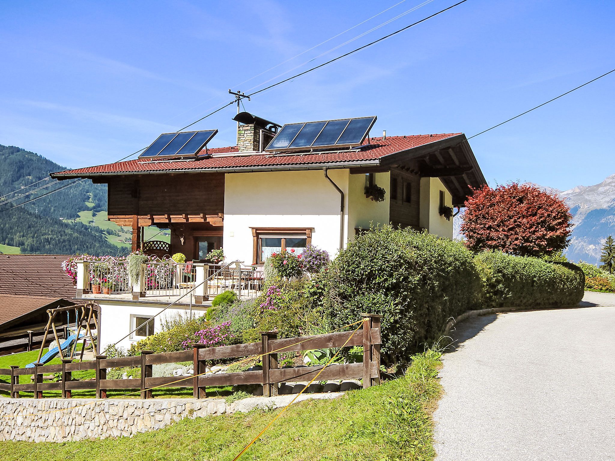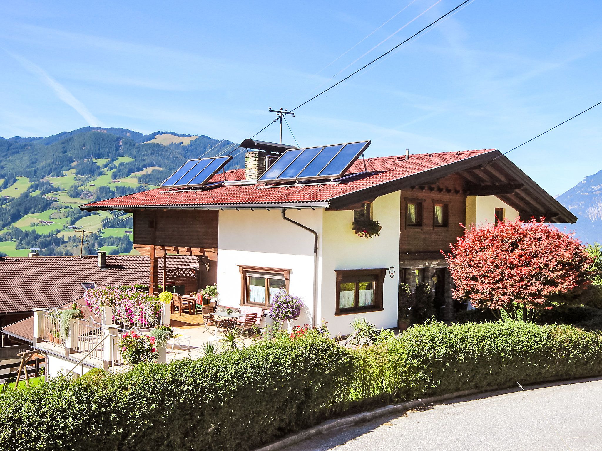 Hart 1 km von Fügen: Gepflegtes, schönes Zweifamilienhaus Michaela. 4 km vom Zentrum von Hart, 5 km vom Zentrum von Fügen, ruhige, sonnige Lage am Hang, 7 km vom See, 5.5 km vom Skigebiet, im Grünen. Zur Mitbenutzung: Liegewiese. Terrasse, Gartenmöbel, Grill. Im Hause: Sonnenterrasse, Zentralheizung, Skischuhtrockner. Zufahrt bis zum Haus. Im Winter bitte Schneeketten mitbringen. Parkplatz beim Haus. Supermarkt 5 km, Restaurant 2 km, Bushaltestelle Bruck a.Z Altes Feuerwehrhaus 3.5 km, Bahnstation Schlitters a.Z Bahnhaltestelle 5.4 km, Thermalbad Erlebnistherme Fügen 6 km, Badesee 7 km. Golfplatz (18 Loch) 8 km, Tennis 5 km, Gondelbahn 5.5 km, Skisportanlagen 5.5 km, Skibushaltestelle 3 km, Schlittelbahn 6 km. Nahe gelegene Sehenswürdigkeiten: Freizeitzentrum 8 km. Bekannte Seen in der Umgebung sind gut erreichbar: Reither See 7 km, Schlitterer See 7 km, Achensee 9 km. Bitte beachten: geeignet für Familien.