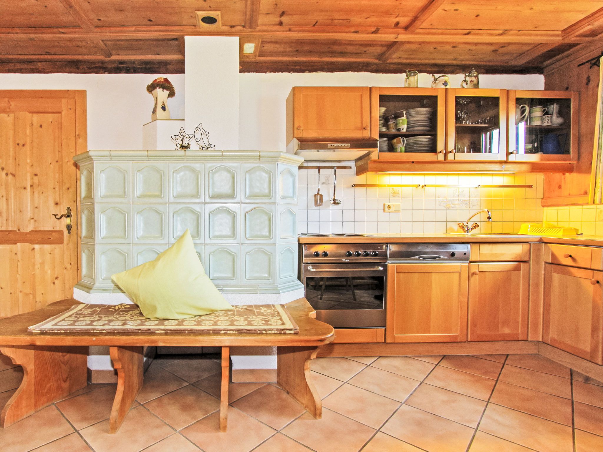 4-Zimmer-Haus 75 m2 auf 2 Stockwerken. Gemütlich und mit viel Holz eingerichtet: Eingang. Wohnküche (Backofen, Geschirrspüler, 4 Glaskeramikplatten, Mikrowelle, Grill, elektrische Kaffeemaschine) mit Essecke, Sat-TV, Radio und Kachelofen. Ausgang zum Garten. Dusche, sep. WC, Doppelwaschbecken. Obergeschoss: 1 Doppelzimmer. 1 Zimmer mit 2 Betten. 1 Zimmer mit 1 x 2 Etagenbetten. Parkettboden. Terrasse. Liegestühle (4). Herrliche Panoramasicht auf die Berge und das Tal. Zur Verfügung: Waschmaschine, Haartrockner. Parkplatz (überdacht, 2 Autos). E-Ladestation Saeco Espressomaschine verfügbar.