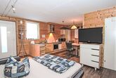 2-Zimmer-Wohnung 55 m2, unteres Geschoss. Gemütlich eingerichtet: 1 grosses Zimmer mit 1 Diwanbett, 1 Doppelbett und Sat-TV (Flachbildschirm). Wohn-/Schlafzimmer mit 1 Doppeldiwanbett und Sat-TV (Flachbildschirm). Grosse, offene Küche (Backofen, Geschirrspüler, 4 Glaskeramikplatten, Mikrowelle, elektrische Kaffeemaschine). Ausgang zur Terrasse. Dusche/WC. Fussbodenheizung. Kleine Terrasse. Terrassenmöbel. Zur Verfügung: Waschmaschine. Internet (Wireless LAN, gratis). Bitte beachten: geeignet für Familien. Eigener Eingang, Rauchmelder.