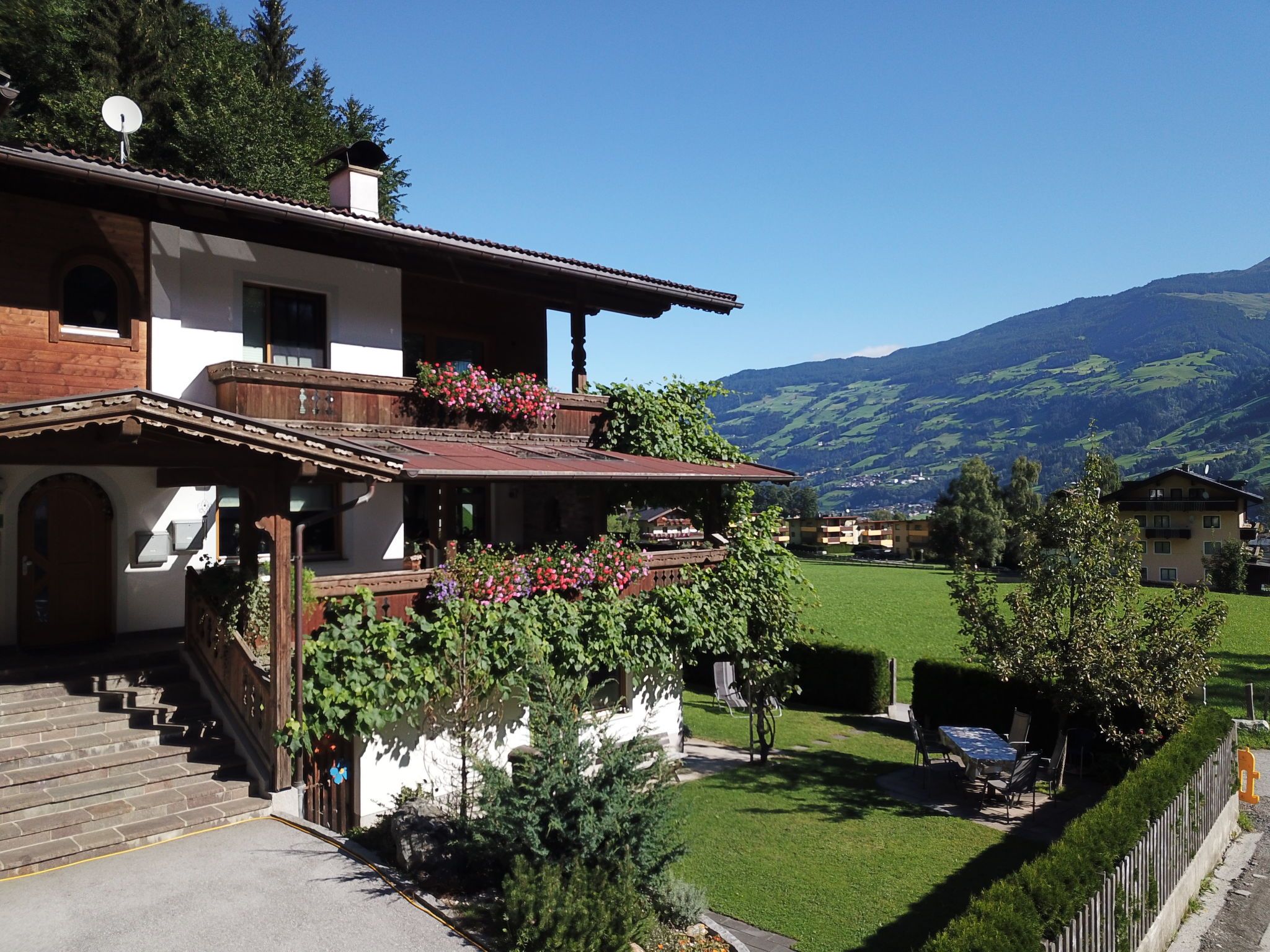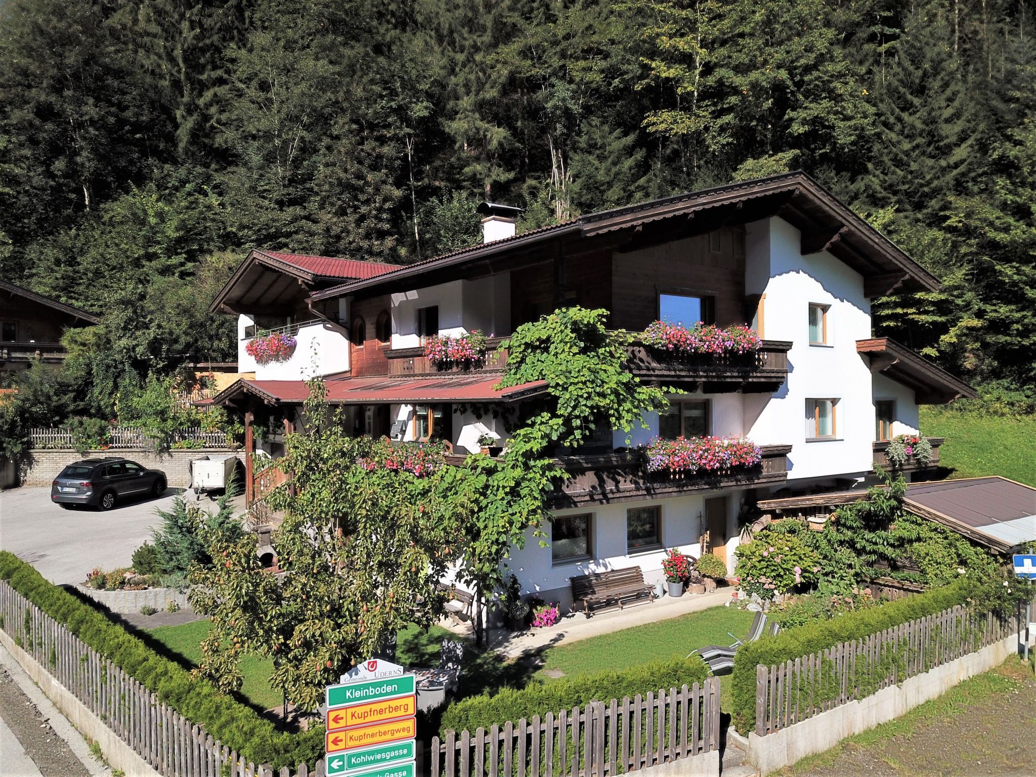 Fügen: Gemütliches Zweifamilienhaus Widner. Im Ortsteil Fügenberg, 3 km vom Zentrum von Fügen, 1.5 km vom Zentrum von Uderns, ruhige, sonnige Lage, direkt am Waldrand, 7.5 km vom See, 2.5 km vom Skigebiet. Zur Alleinbenutzung: grosser, schöner, gepflegter Garten mit Liegewiese. Sitzplatz, Terrasse. Im Hause: Wireless LAN, Skiraum, Zentralheizung, Skischuhtrockner. Brötchenservice. Zufahrt bis zum Haus. Parkplatz beim Haus. Supermarkt 2 km, Restaurant 100 m, Bushaltestelle Kleinboden Feuerwehr 180 m, Bahnstation Uderns Bahnhof 1.7 km, Hallenbad 2.5 km, Thermalbad Erlebnistherme Fügen 2.5 km, Badesee Schlitterer Badesee 7.5 km. Golfplatz (18 Loch) 500 m, Wanderwege ab Haus 50 m, Radweg 2 km, Gondelbahn 2.5 km, Skisportanlagen 2.5 km, Skibushaltestelle 150 m, Kinderspielplatz 200 m. Bekannte Skigebiete sind gut erreichbar: Spieljoch 2.5 km, Hochzillertal-Hochfügen 5 km. Bitte beachten: Gratis Skibus.