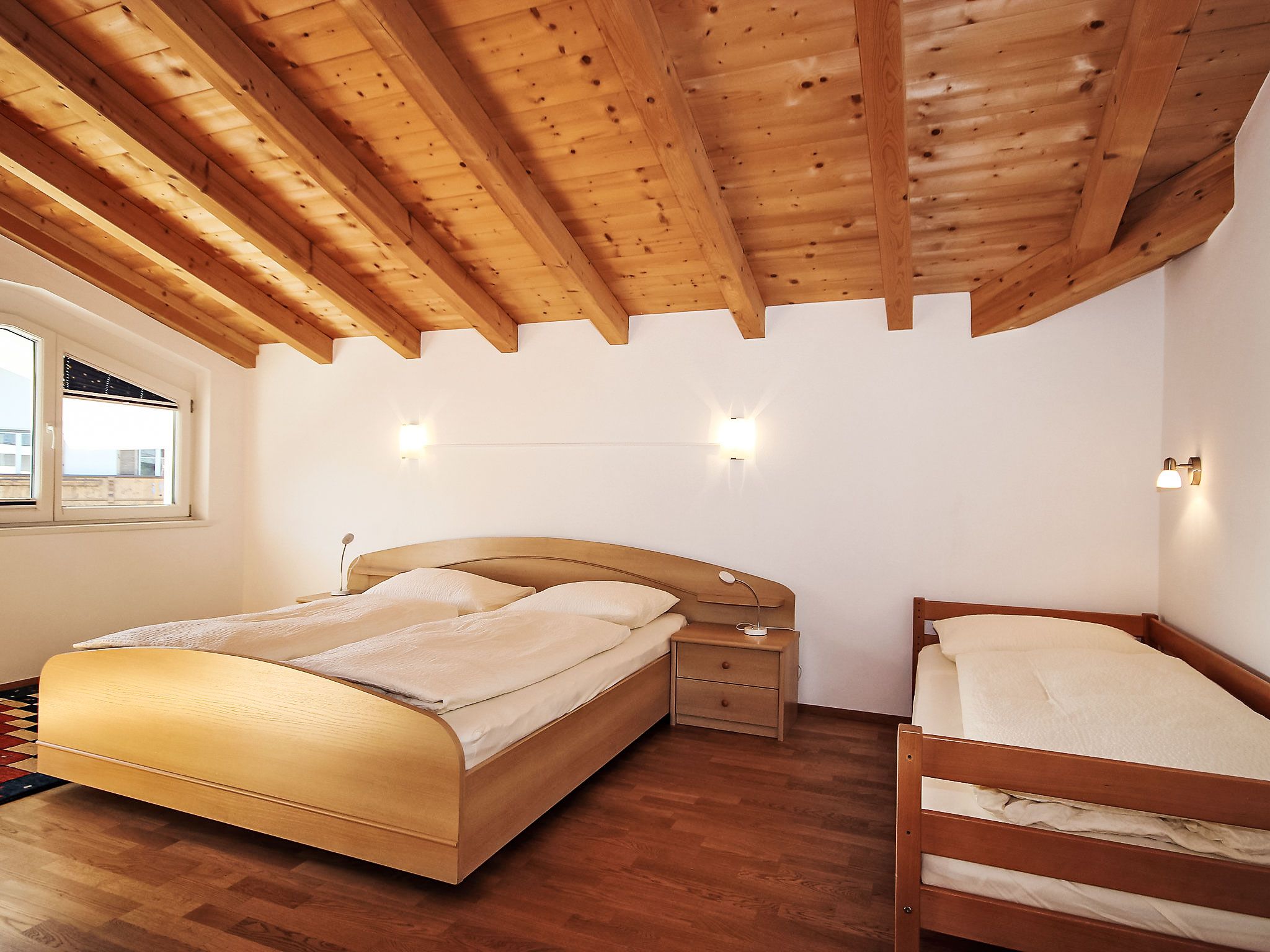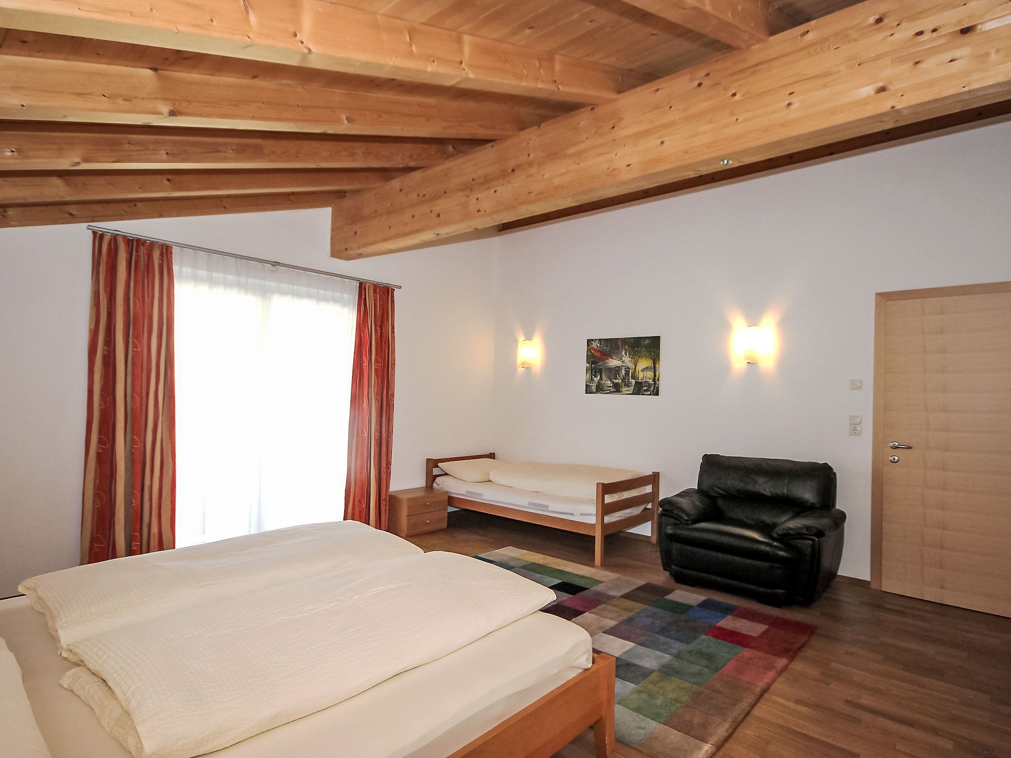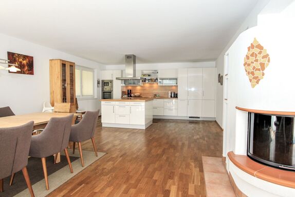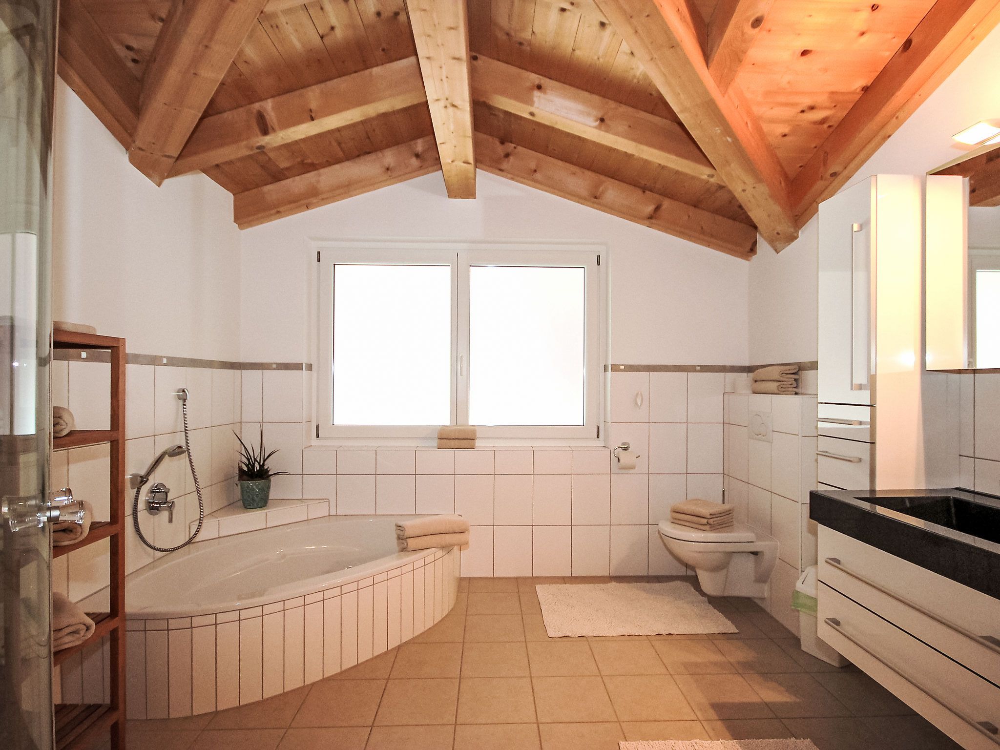 7-Zimmer-Haus 260 m2 auf 3 Stockwerken. Geräumig, sehr komfortabel und modern eingerichtet: Eingang. Grosses Wohnzimmer mit Kabel-TV (Flachbildschirm). Ausgang zur Terrasse. Grosse, offene Küche (Backofen, Geschirrspüler, 4 Glaskeramikplatten, Mikrowelle, Tiefkühler, elektrische Kaffeemaschine) mit Esstisch. Sep. WC. Unteres Geschoss: 1 Doppelzimmer. Durchgangszimmer mit Sat-TV (Flachbildschirm). Dusche, Dusche/WC, Sauna. Obergeschoss: Galerie. 1 Zimmer mit 1 Bett und 1 Doppelbett. 1 Doppelzimmer. 1 grosses Zimmer mit begehbarem Kleiderschrank mit 1 Bett, 1 Doppelbett und Bad/Dusche/WC. Bad/WC. 3 Balkone, grosse Terrasse. Liegestühle, Abstellkammer. Schöne Sicht auf die Berge. Zur Verfügung: Kinderhochstuhl, Babybett bis 2 Jahre. Internet (Wireless LAN, gratis). Garage (2 Autos). Geeignet für Familien. Bei Aufenthalten länger als 10 Nächte wird eine zusätzliche Reinigung von EURO 90.- durchgeführt.